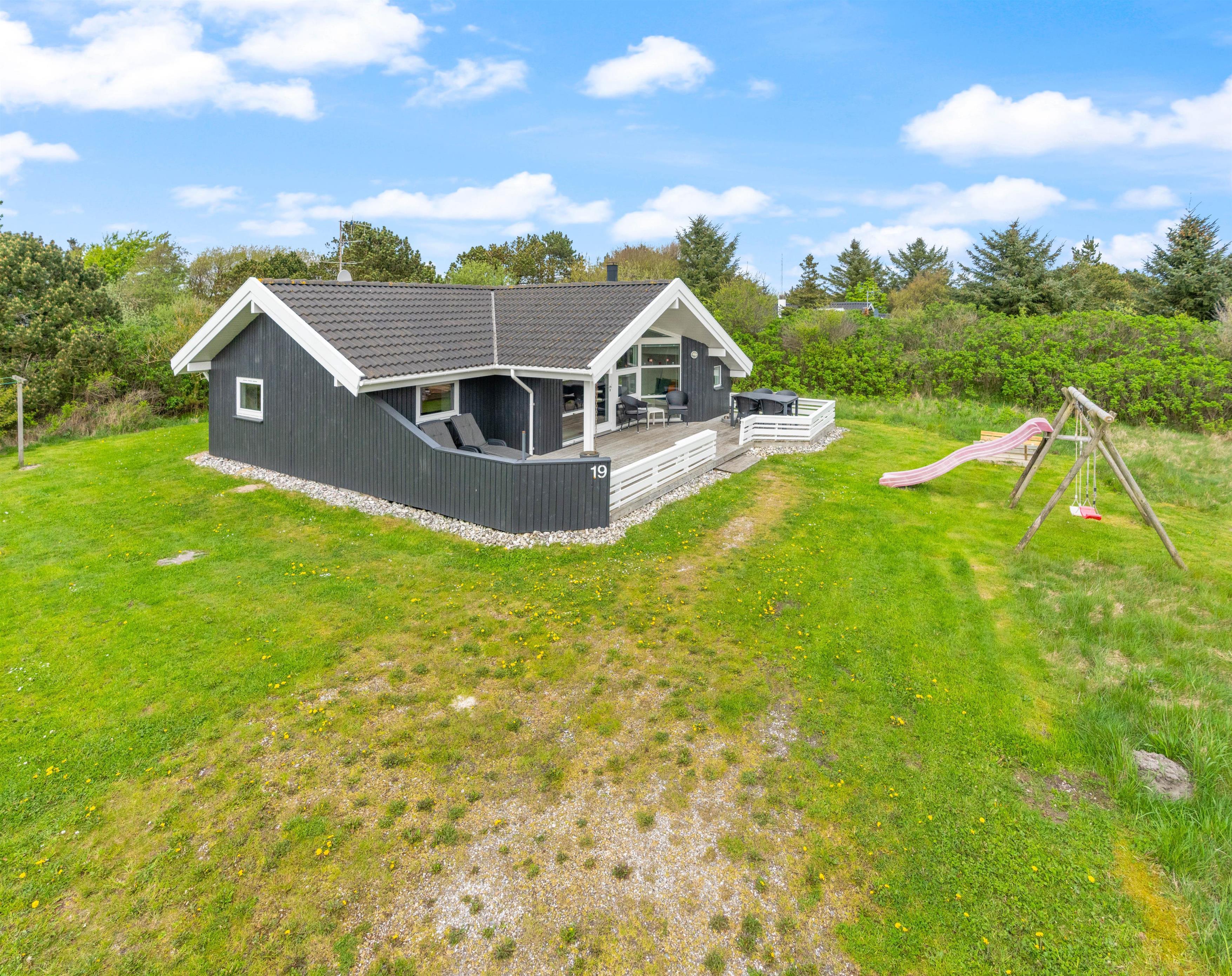 The 1,200-square-metre natural plot offers plenty of space for both active play and quiet moments. The sheltered terrace features comfortable garden furniture, perfect for relaxing in the fresh sea air. Read your favourite book with a cool drink in hand and leave everyday stress behind. Children can enjoy the swing or play in the sandpit.