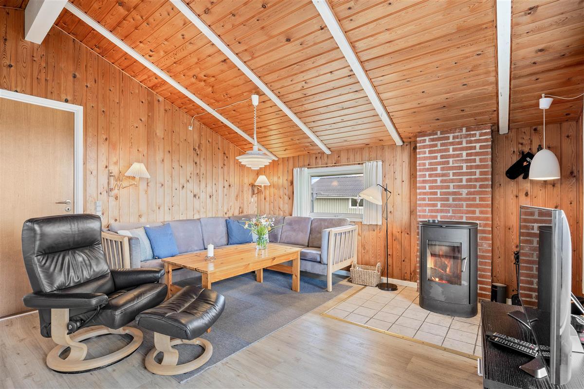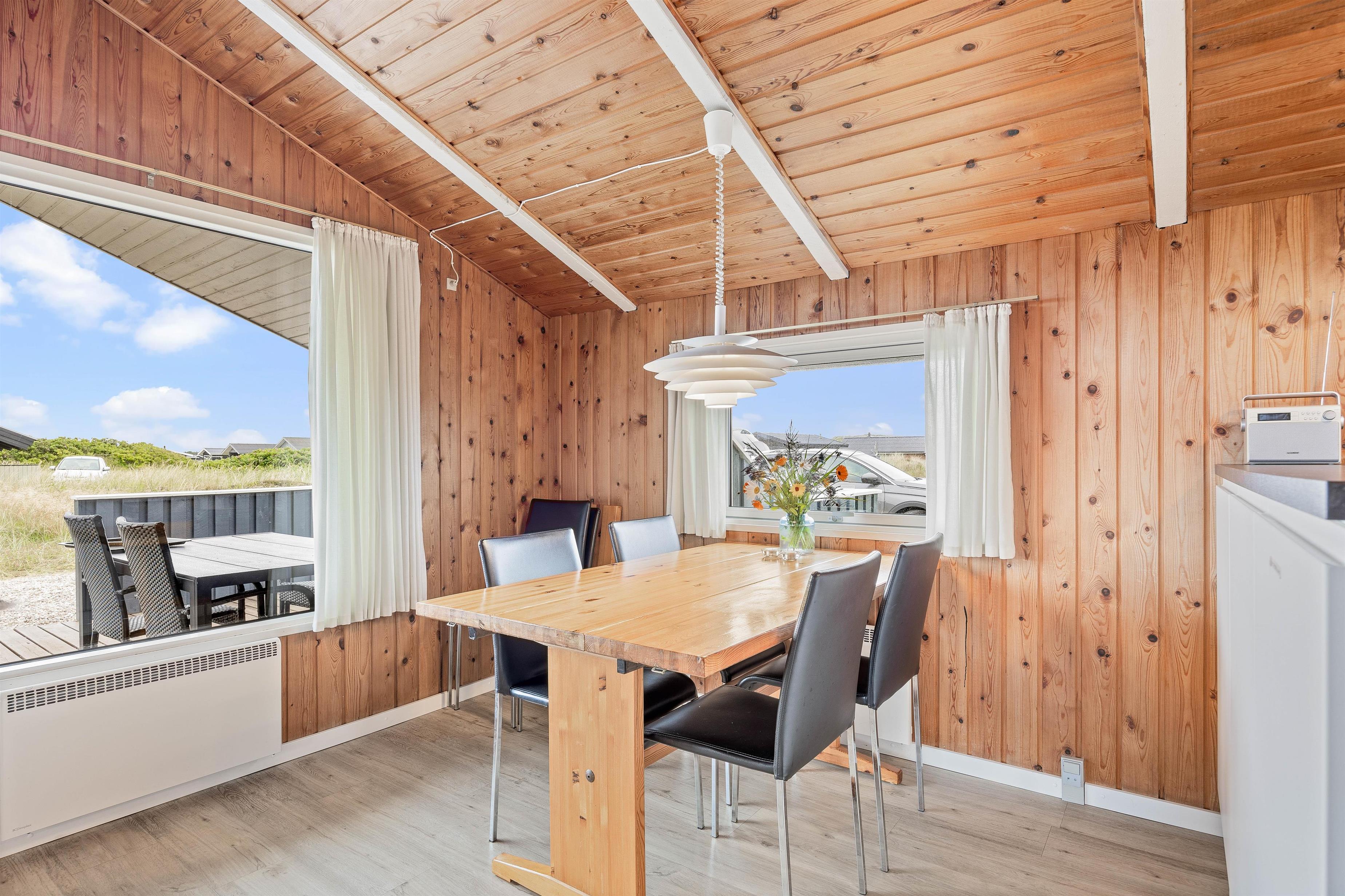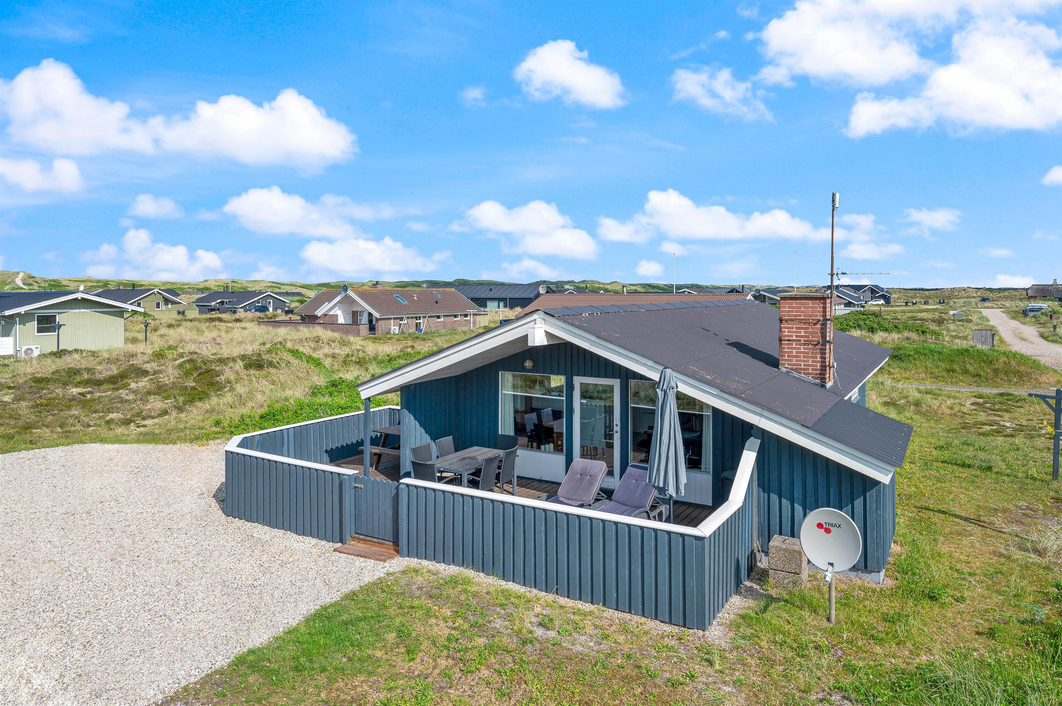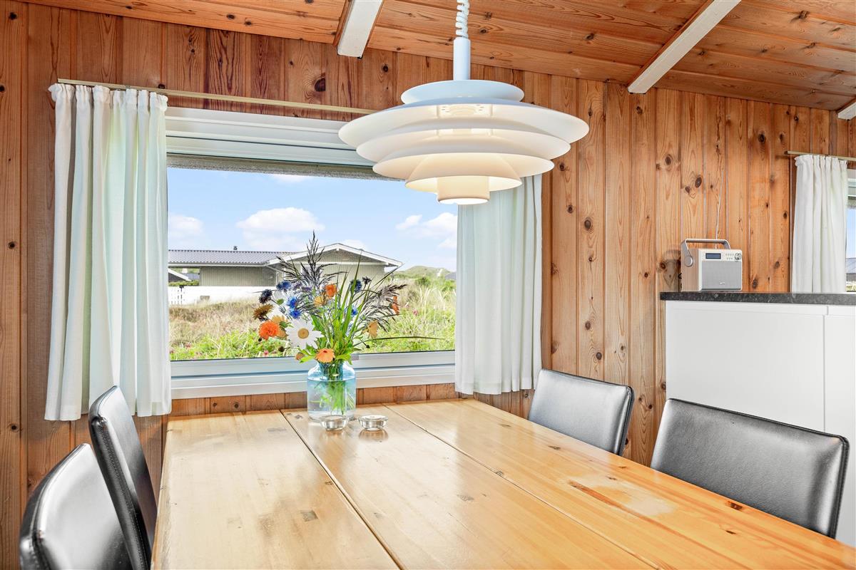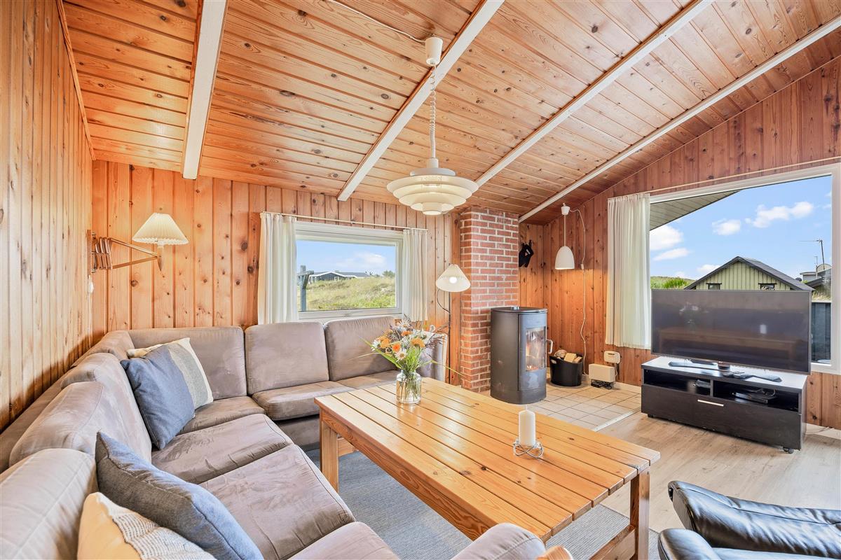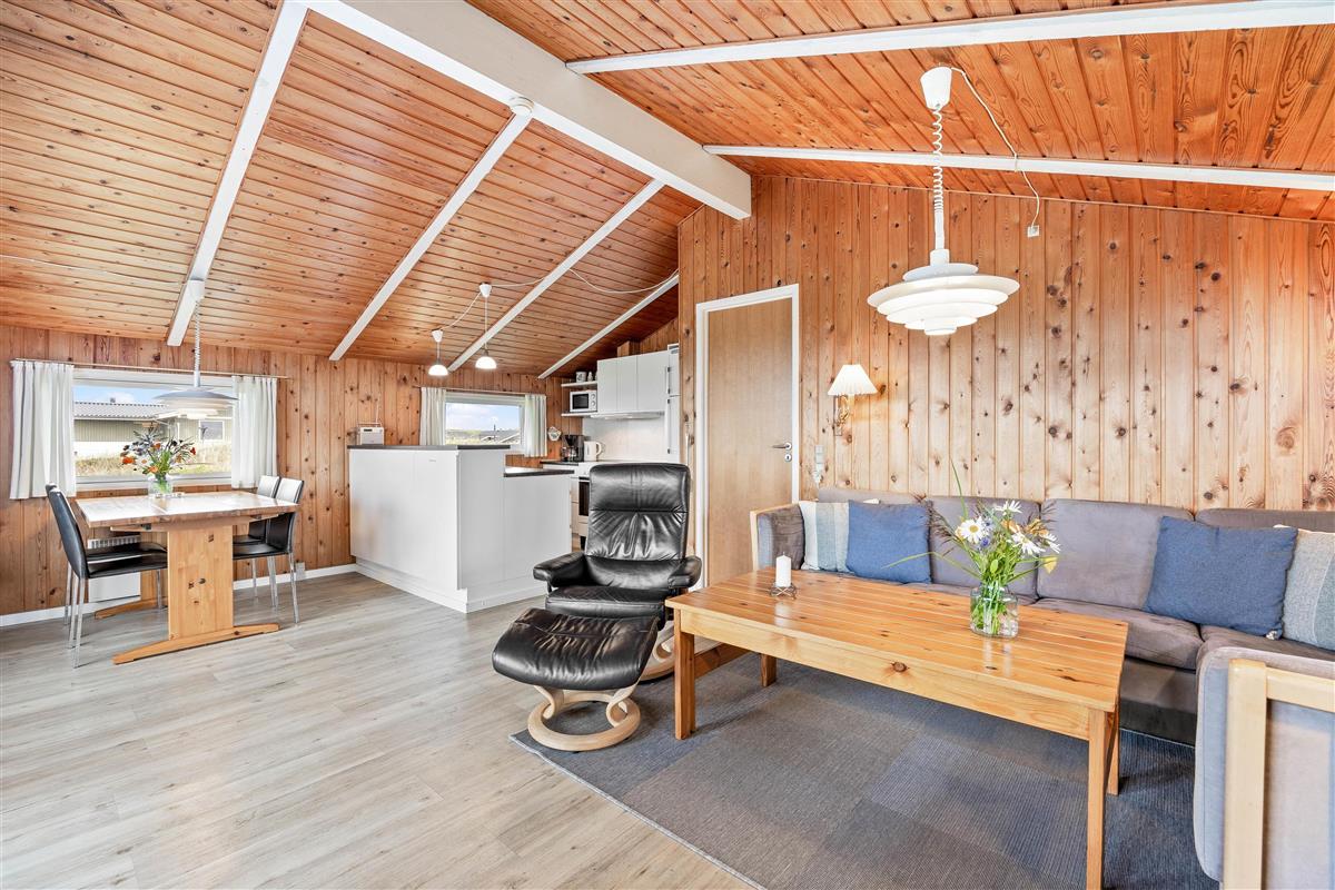The delightful south-facing terrace of your holiday home is sheltered and partially covered. From here, you can hear the sound of the Danish West Coast sea, just 450 metres away, while enjoying the summer sunshine.