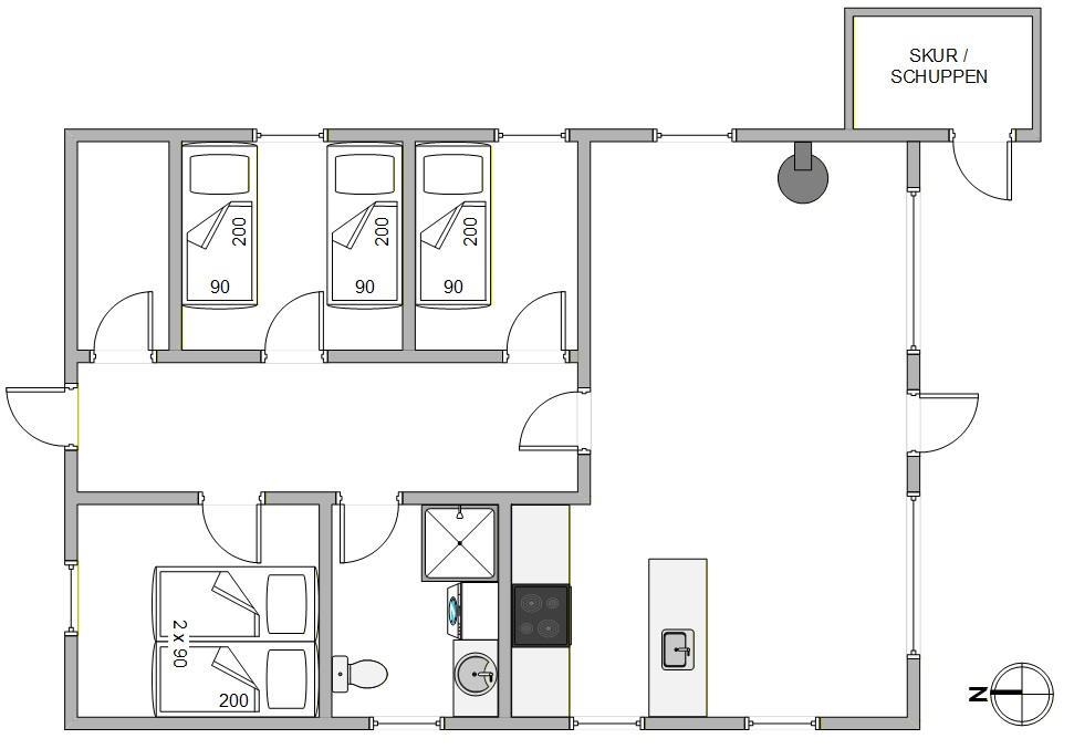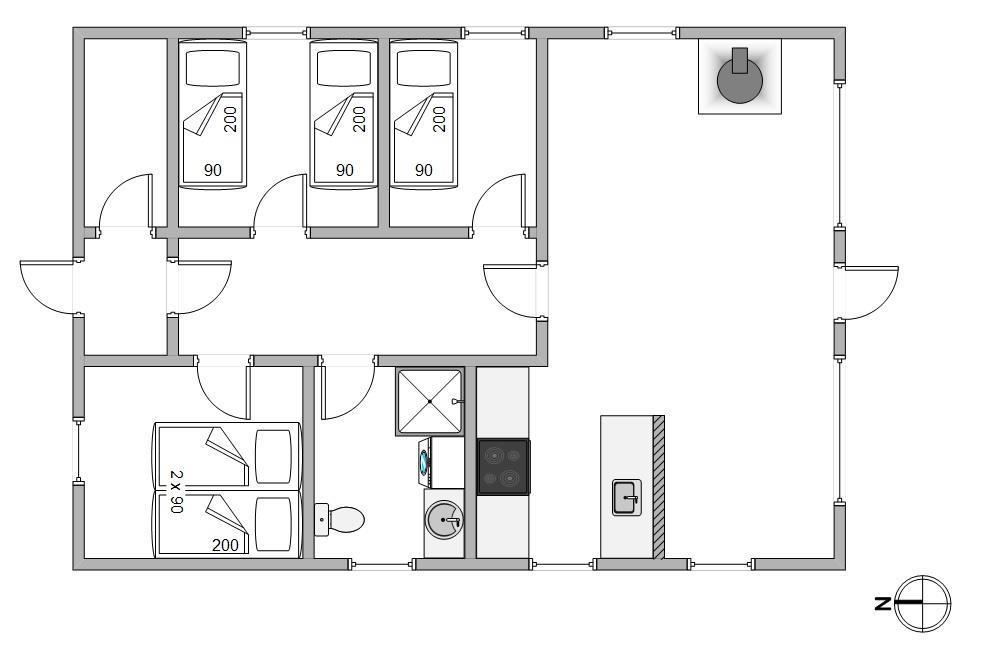 The heart of the house is undoubtedly the living room with its wood-burning stove and adjoining open-plan kitchen. Whether you want to browse the complimentary internet or watch a film, you'll certainly spend many pleasant hours together by the crackling stove. The living room provides direct access to the south-facing terrace.