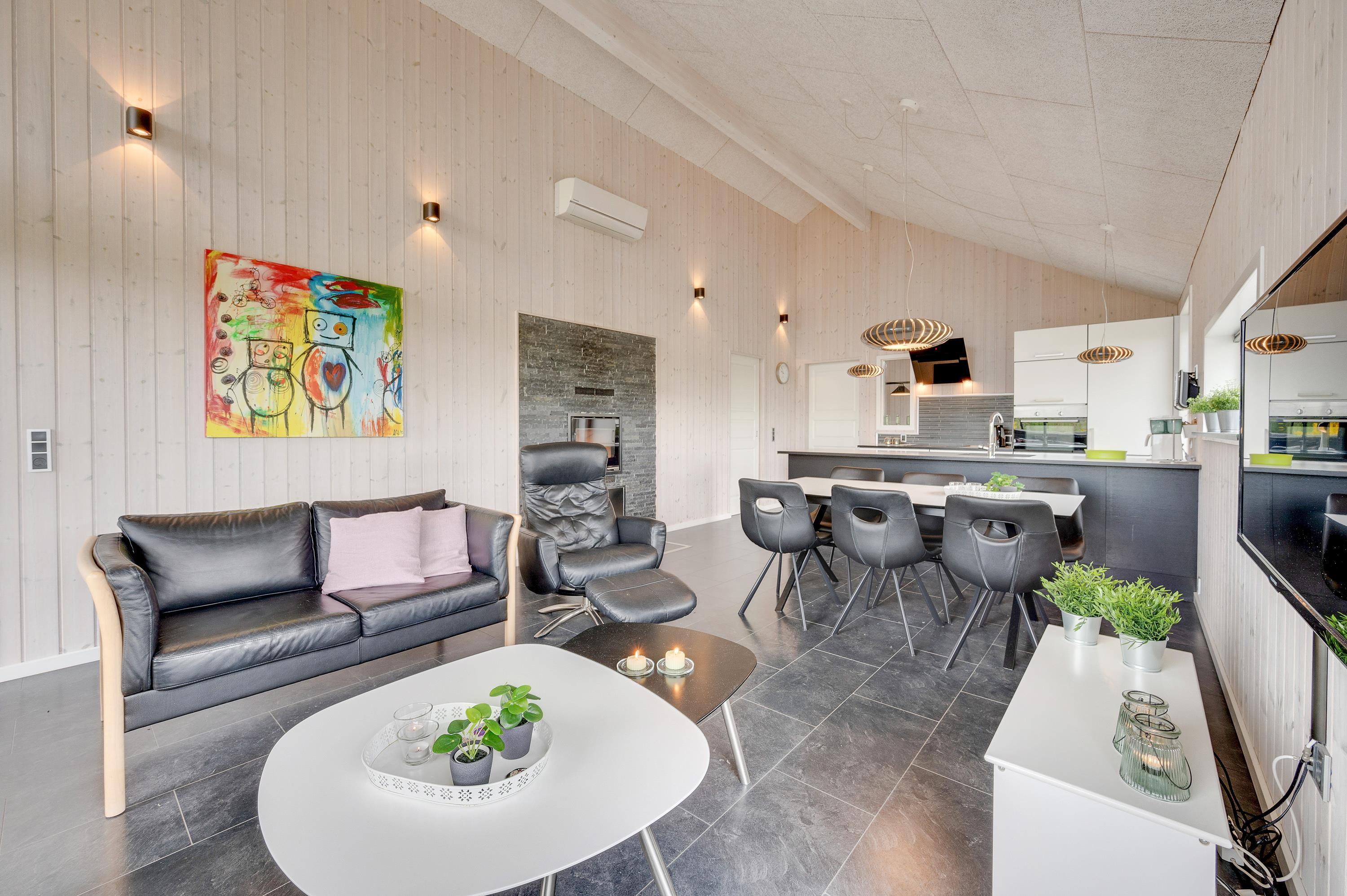 The floors feature easy-clean surfaces, while Troldtekt acoustic ceiling panels ensure excellent sound quality throughout. The furnishings are tastefully chosen and comfortable, making this the perfect space for quality family time.