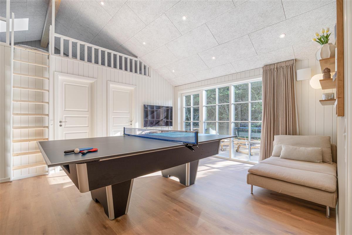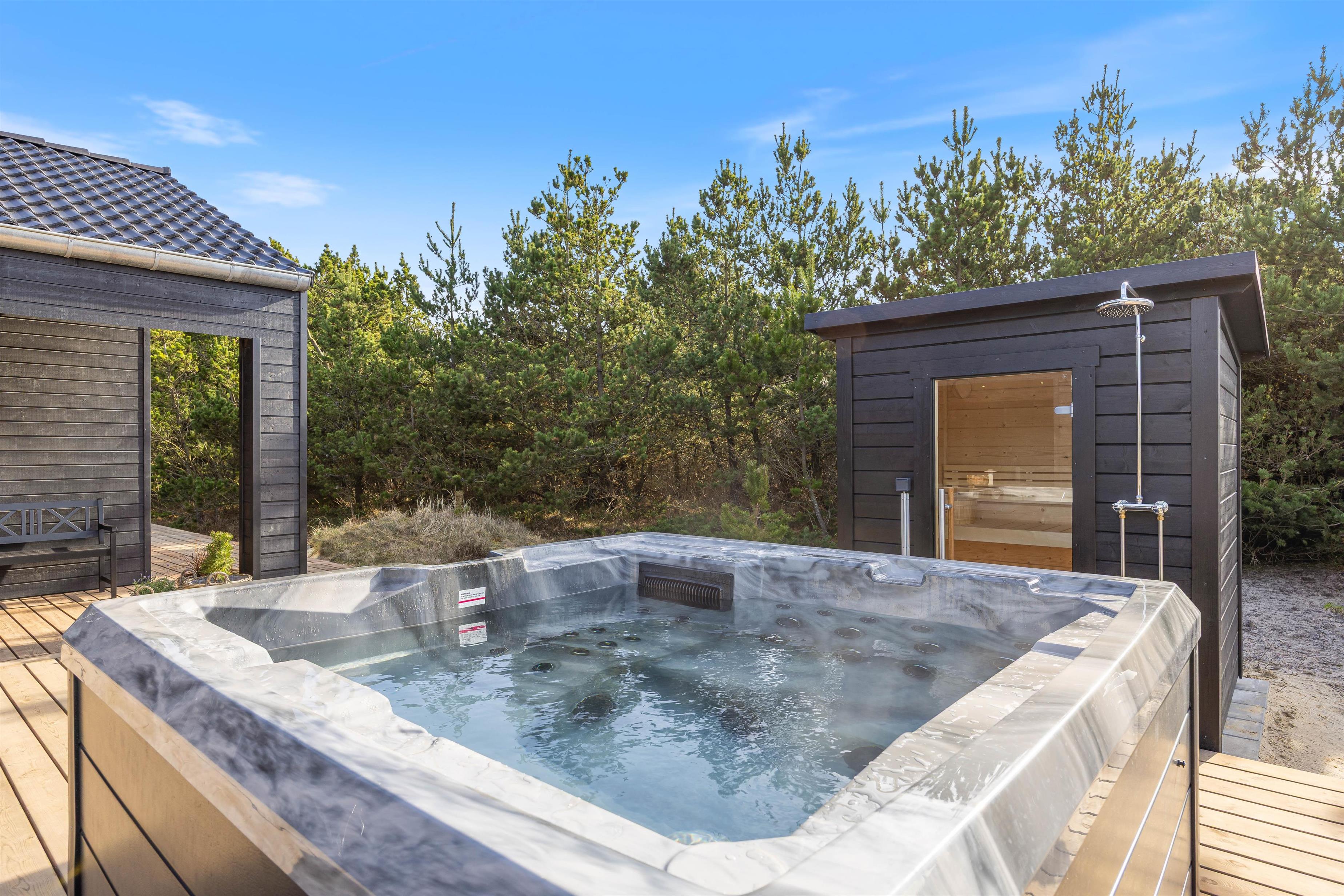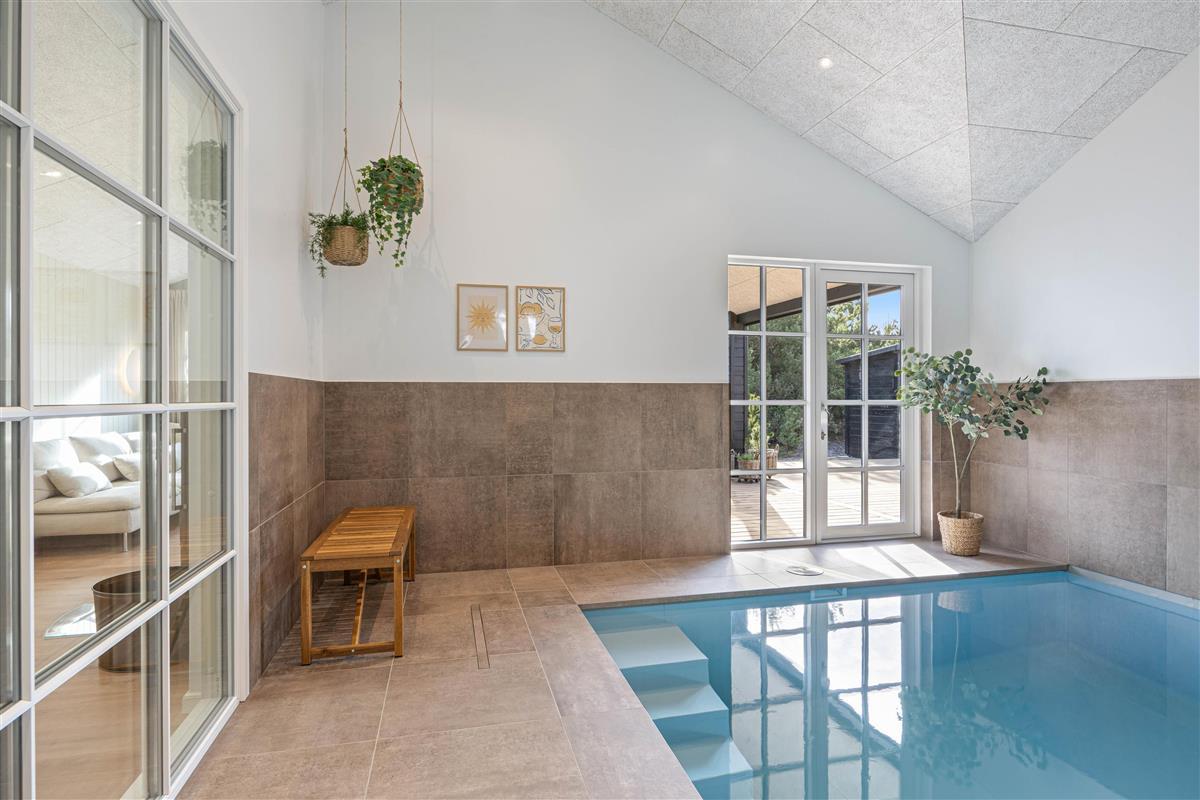 Welcome to this unique holiday home at Bjerregårdsvej 189, just 500 meters from the North Sea. Built in 2025, this luxurious property accommodates up to 10 guests and 2 pets and offers everything you could dream of for an unforgettable holiday. With its 16 m² indoor swimming pool, activity room, and beautiful terrace area featuring an outdoor sauna and spa, this home combines comfort, wellness, and entertainment in one exceptional setting.