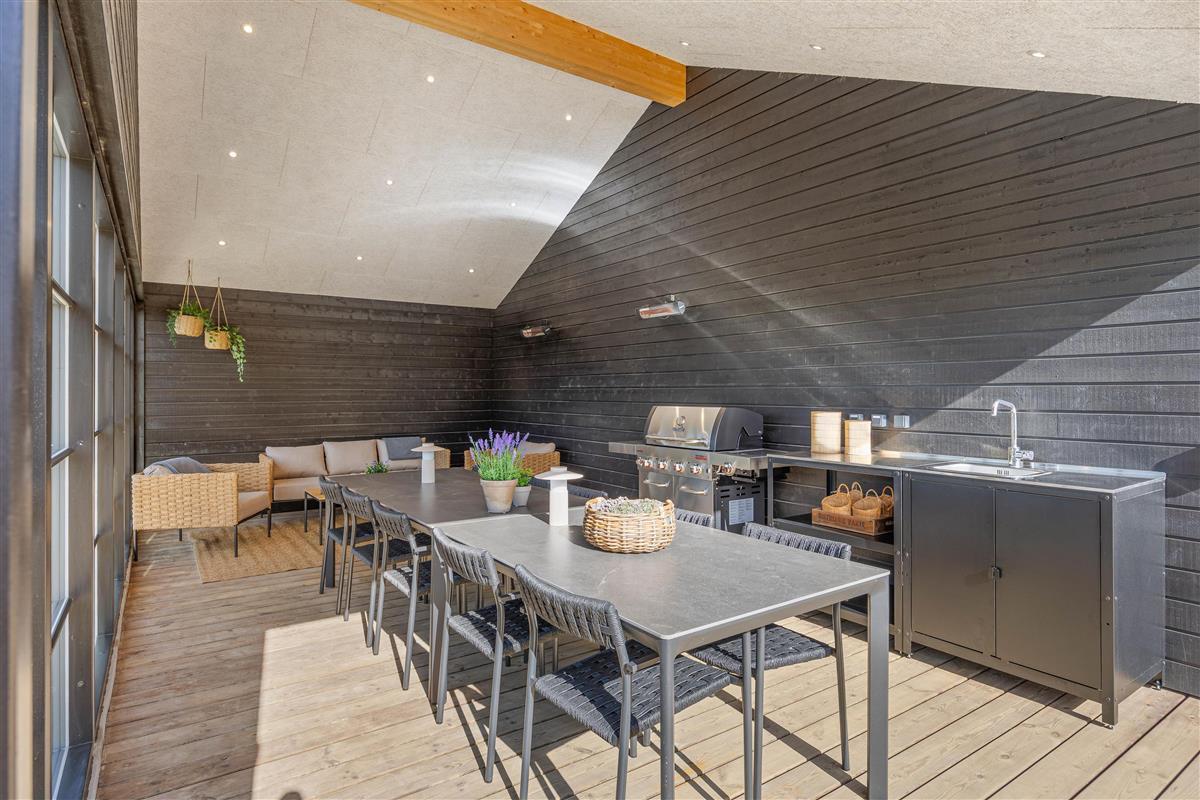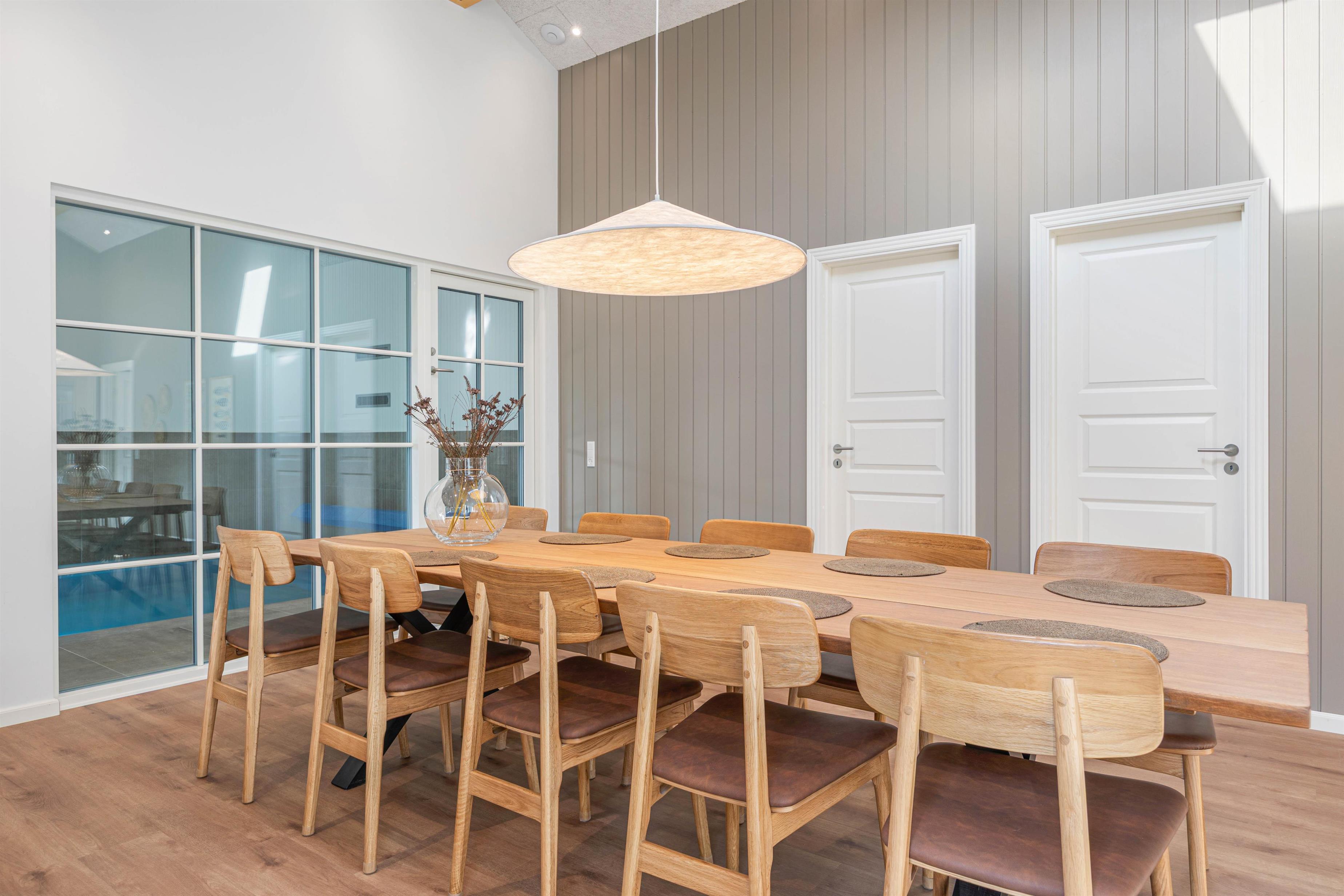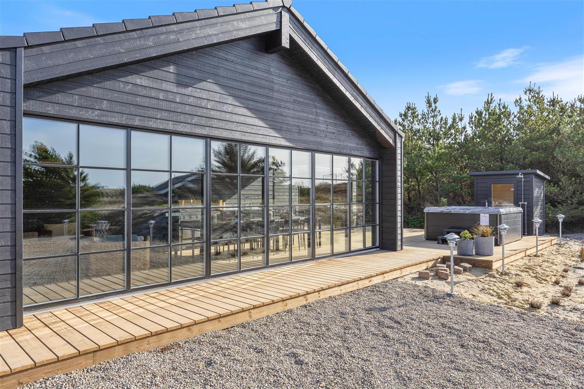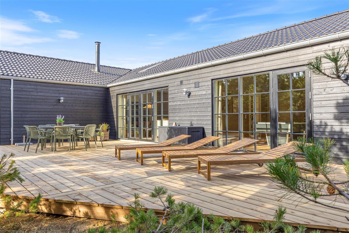 Welcome to this unique holiday home at Bjerregårdsvej 189, just 500 meters from the North Sea. Built in 2025, this luxurious property accommodates up to 10 guests and 2 pets and offers everything you could dream of for an unforgettable holiday. With its 16 m² indoor swimming pool, activity room, and beautiful terrace area featuring an outdoor sauna and spa, this home combines comfort, wellness, and entertainment in one exceptional setting.