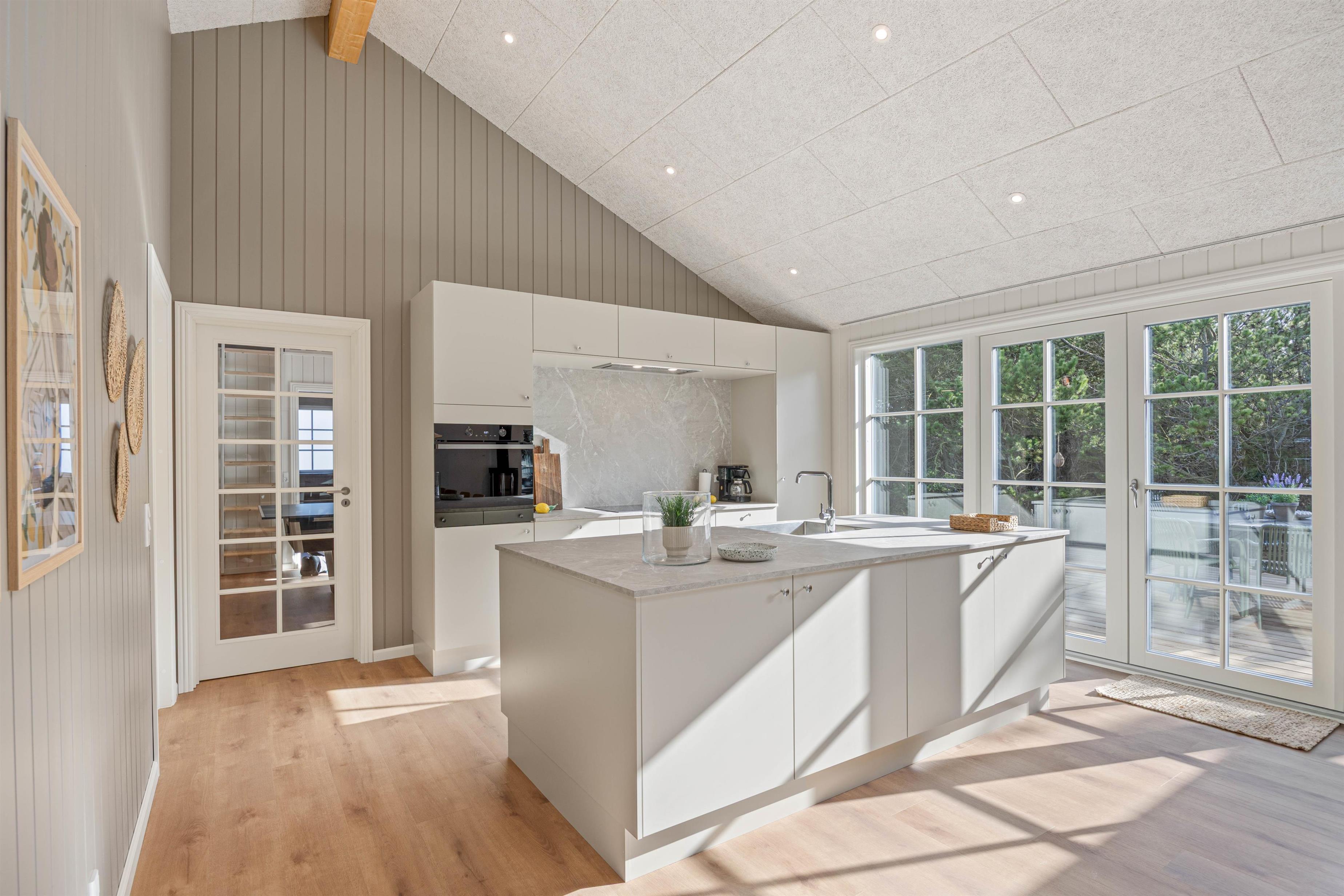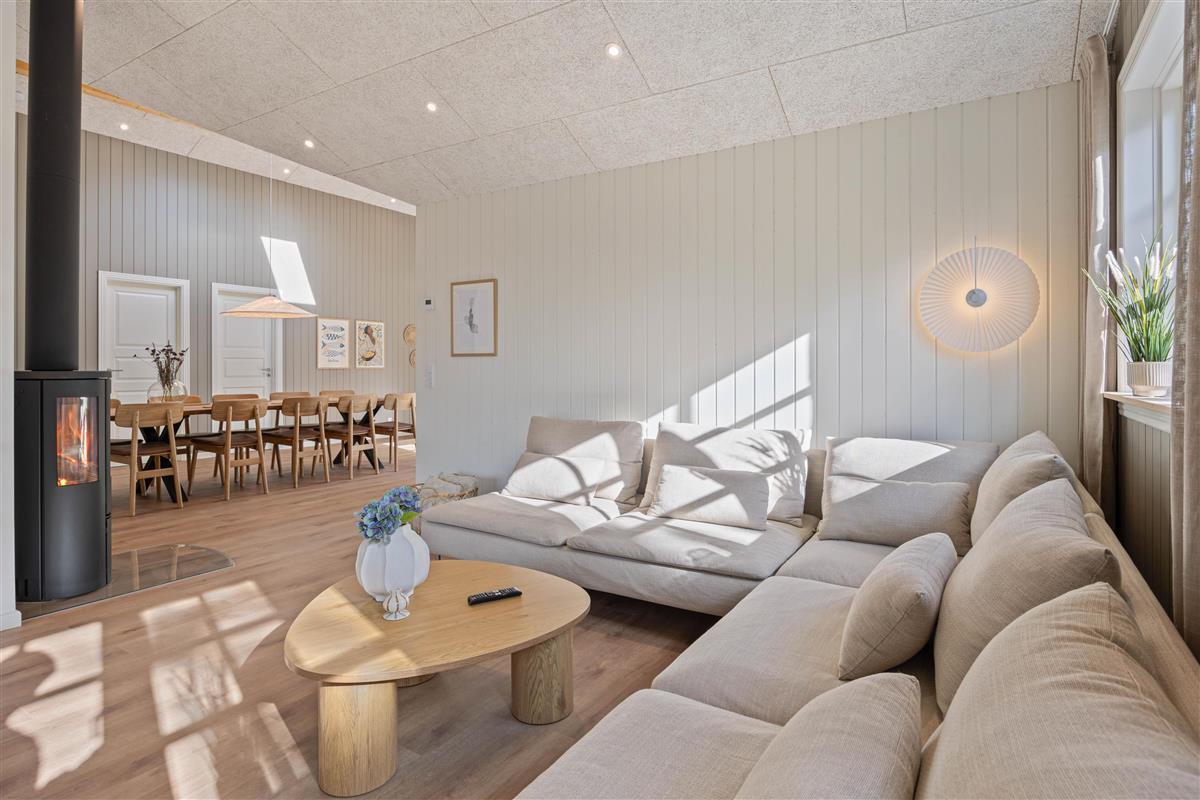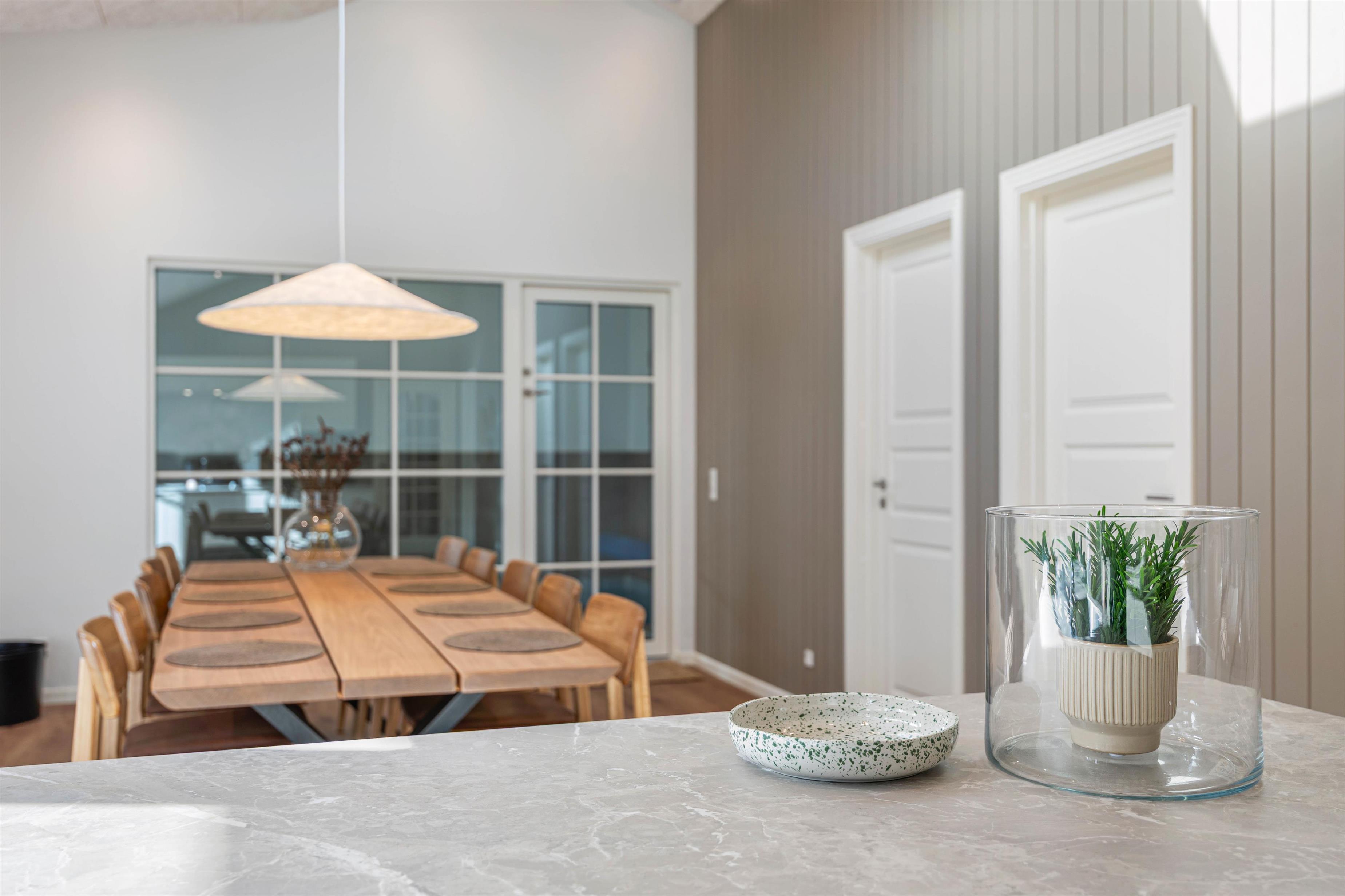 With 180 m² of living space, the house offers plenty of room for everyone. The interior is modern and designed in calm, light tones, creating a relaxing and welcoming atmosphere. The heart of the home is the spacious open-plan kitchen, dining, and living area. The kitchen is fully equipped with 2 refrigerators and 2 dishwashers, making it ideal for larger groups. The cosy wood-burning stove adds warmth and atmosphere, perfect for relaxed evenings together. A Chromecast is available, so you can stream your favourite shows whenever it suits you.