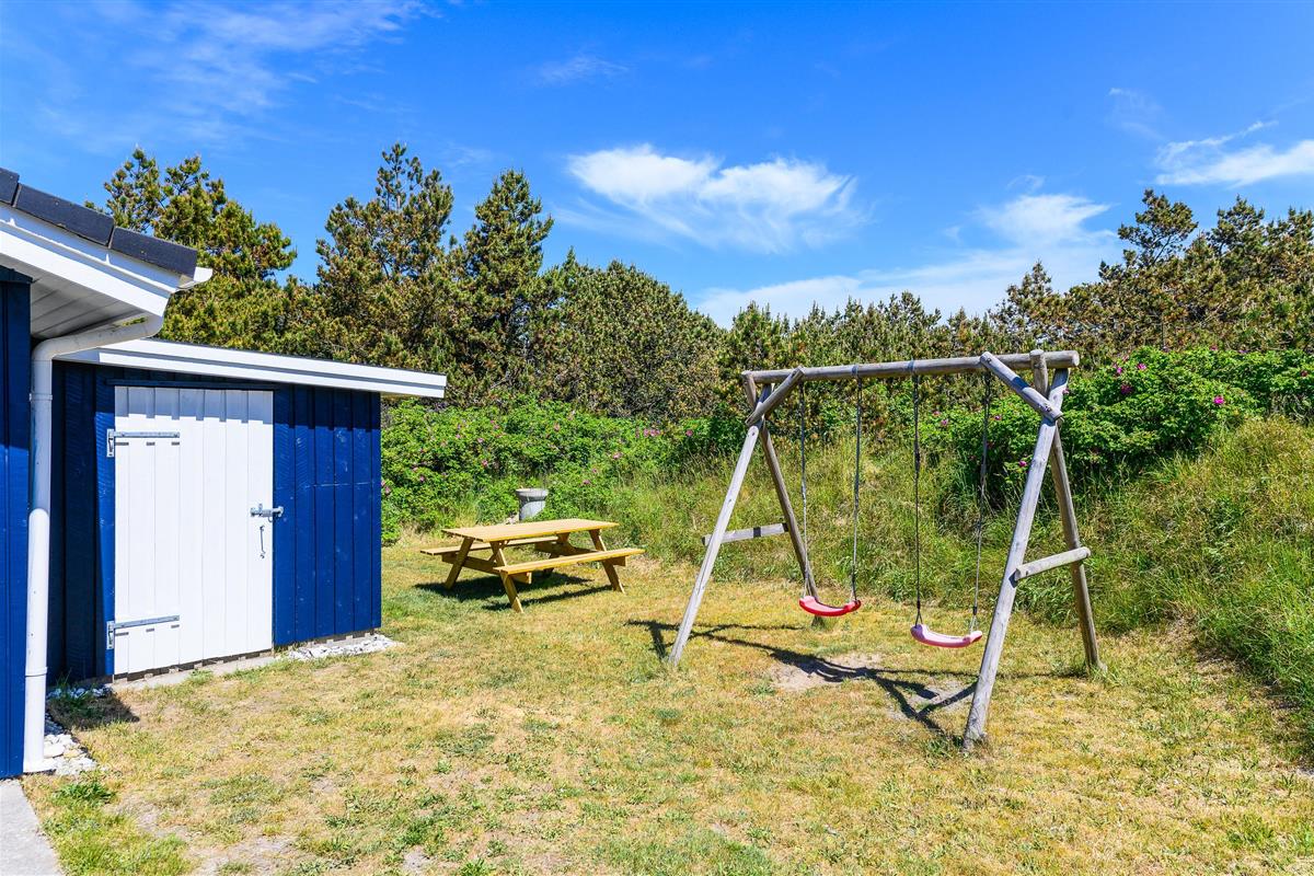 The local supermarket is just a short 5-minute walk away (500 metres), where you'll find all daily essentials. While shopping, children can enjoy the adjacent playground. The wide North Sea beach is within a 10-minute walk (750 metres), perfect for long beach walks, flying kites or taking a refreshing dip in the blue-green waves of the North Sea. The bustling harbour town of Hvide Sande is a 15-minute drive away, offering numerous shops and restaurants, as well as excellent facilities for water sports enthusiasts and anglers.
