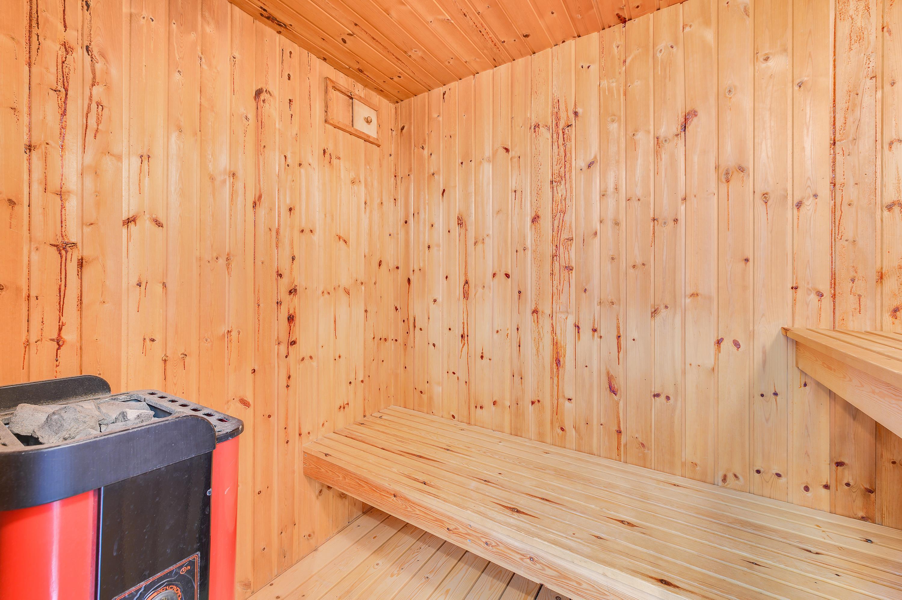 The shower room includes all sanitary facilities and a sauna - perfect for warming up after a beach walk. The holiday home's heat pump maintains a comfortable temperature throughout, while the washing machine is a practical addition particularly appreciated by families with children.