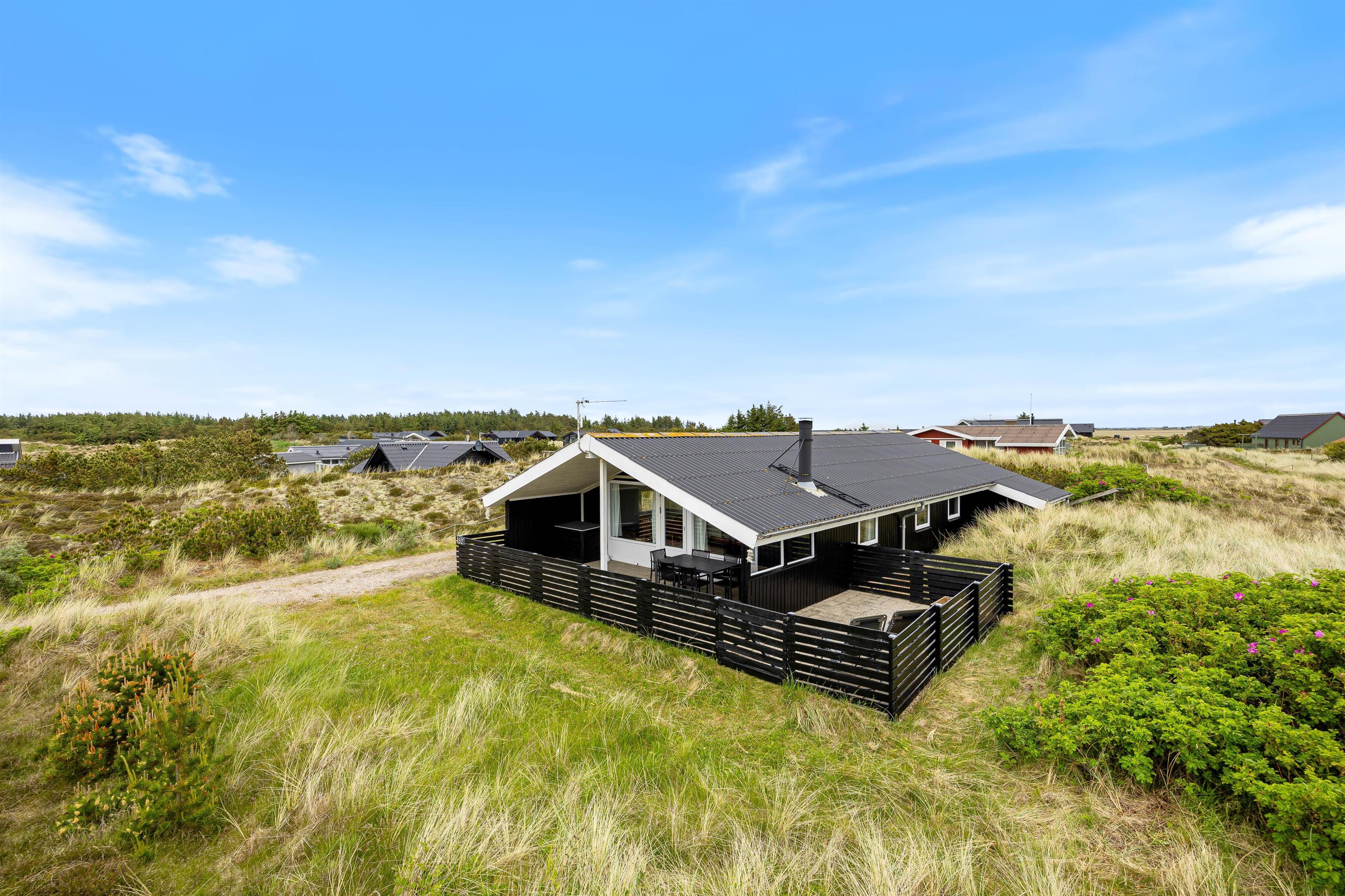 Willkommen in eurem Ferienhaus an der dänischen Westküste, gelegen in der Arvidvej 152, südlich von Bjerregård. Dieses 2023 renovierte Ferienhaus bietet auf 96 qm Platz für bis zu 6 Personen und auch euer Vierbeiner ist willkommen. Genießt die Vorzüge einer gepflegten Ausstattung mit Sauna und Kaminofen und lasst es euch auf den 2 einladenden Terrassen gut gehen.