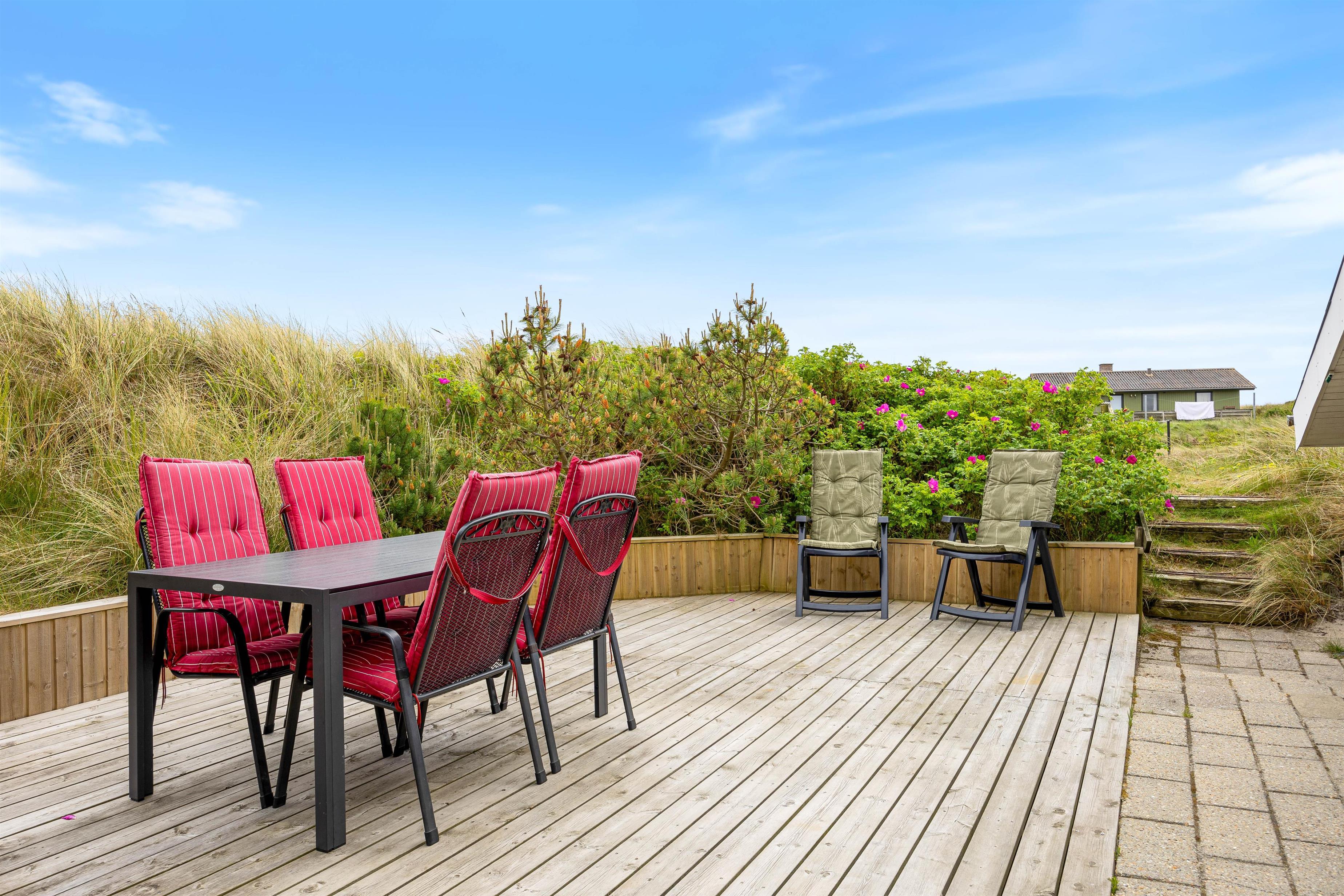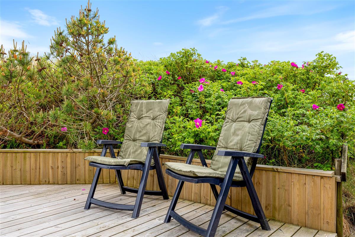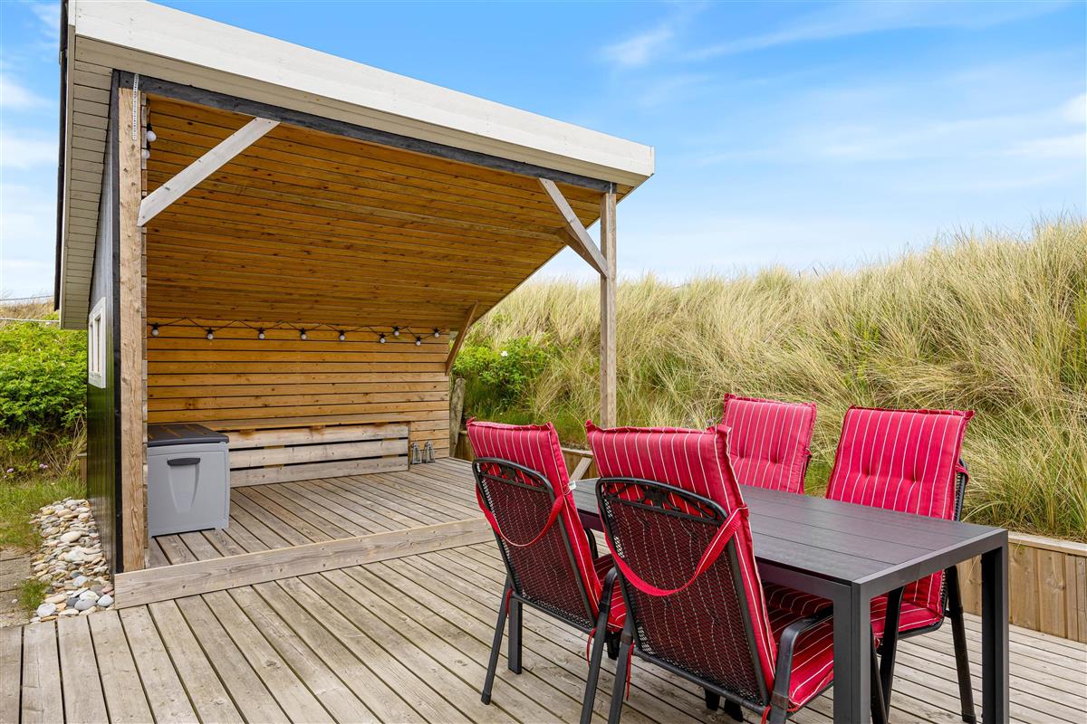 Auf einem 1300 qm großen Naturgrundstück gelegen, bieten die 2 Terrassen zahlreiche Möglichkeiten zur Erholung. Euer Ferienhaus verfügt über einen Elektrogrill und gute Gartenmöbel, die sich ideal für Mahlzeiten im Freien eignen. Sonnenliegen laden zum Entspannen ein, während eine geschlossene Terrasse und eine von Dünengras abgeschirmte Terrasse Ruhe und Privatsphäre bieten.