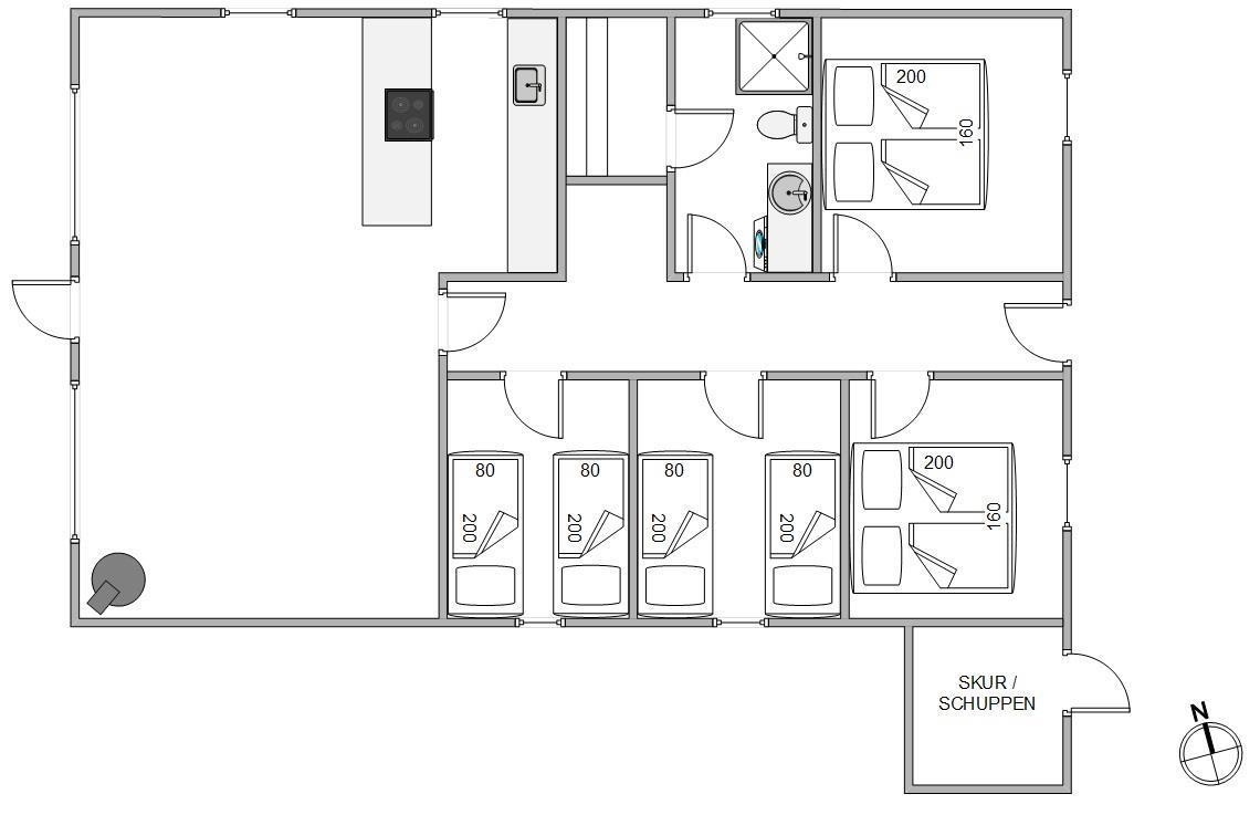 Ein kleines Badezimmer mit Fußbodenheizung und Sauna sorgt für Entspannung nach einem langen Spaziergang am Strand. Zudem stehen euch eine Waschmaschine und ein Trockner zur Verfügung. 4 schöne Schlafzimmer, 2 davon mit Doppelbetten und 2 mit je 2 Einzelbetten, sorgen dafür, dass ihr euch gut aufteilen könnt.