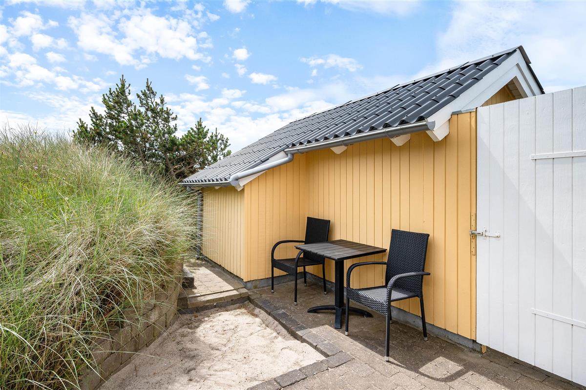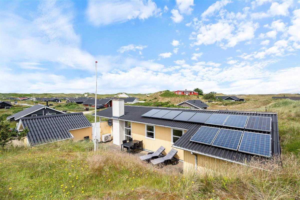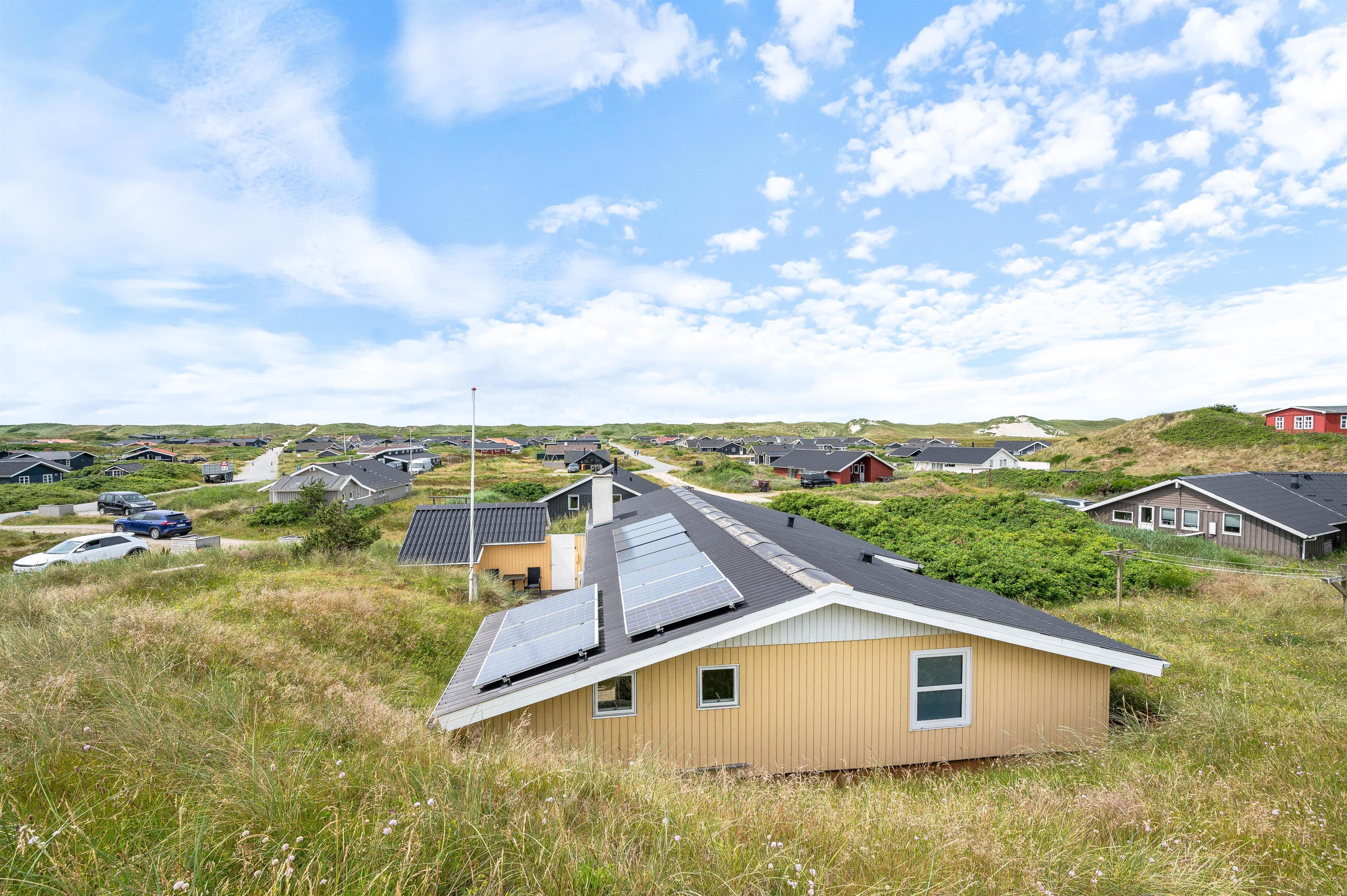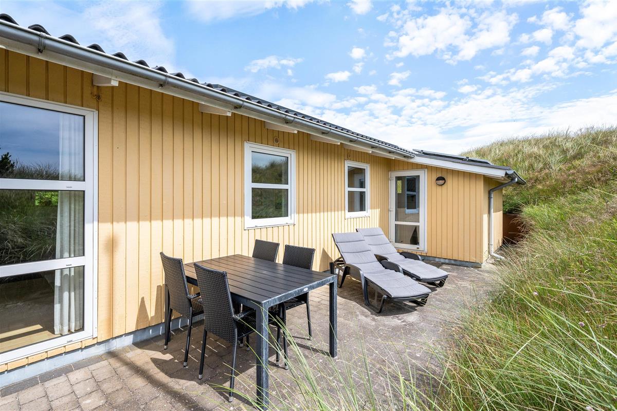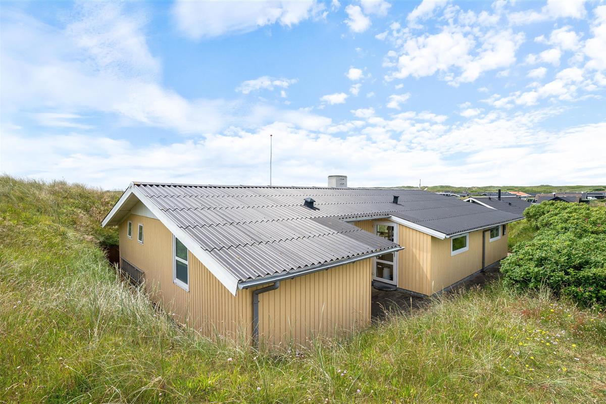 This holiday home is situated on a natural elevated plot in Bjerregård. The area is known for its stunning dune landscape and proximity to the North Sea.