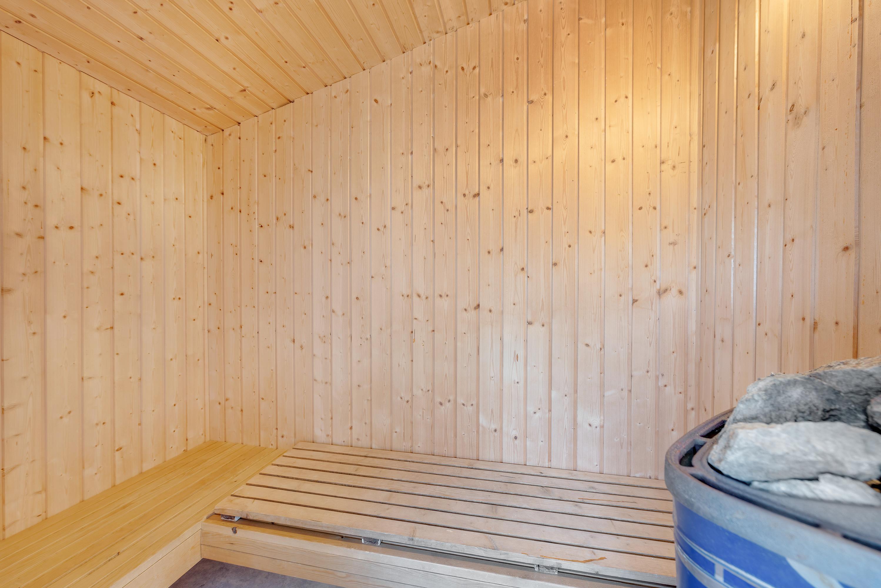 The spacious bathroom features both a sauna and a whirlpool, perfect for relaxing after a long walk in nature. Light some candles, open a bottle of wine, make yourself comfortable and forget about everyday stress.