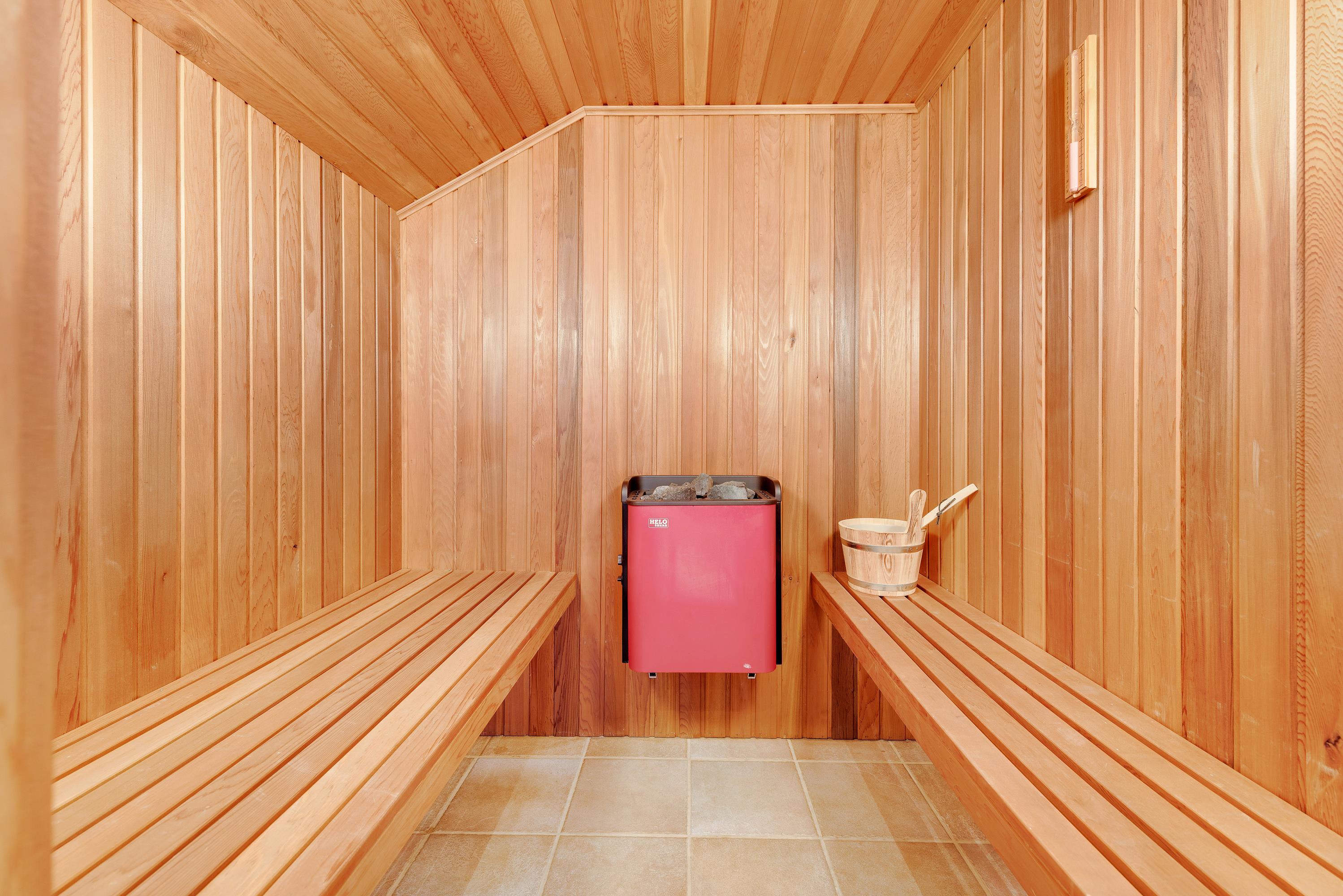 With two bathrooms, both featuring underfloor heating, there's no morning queue. A sauna provides an excellent wellness experience during your stay.