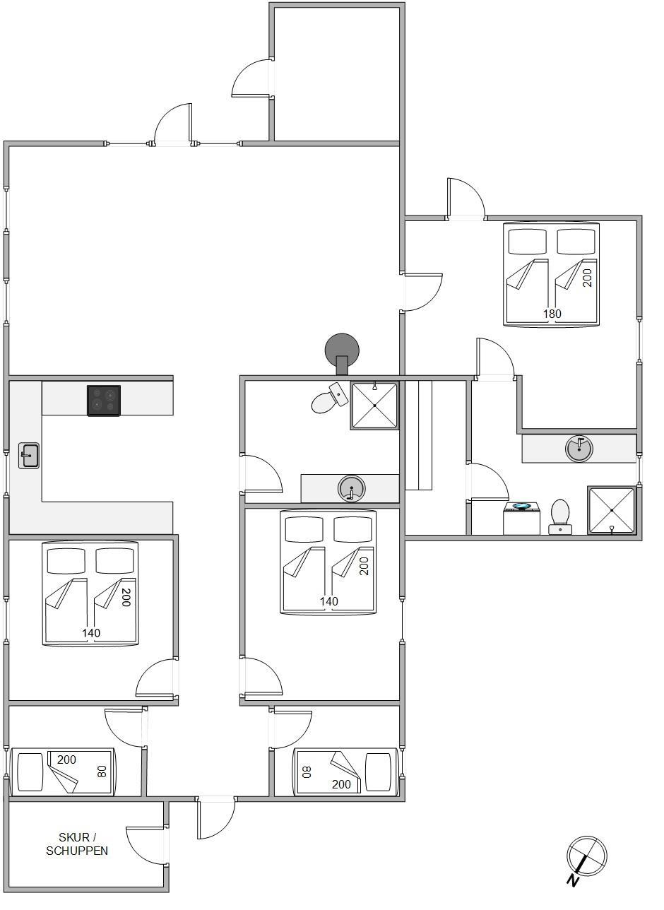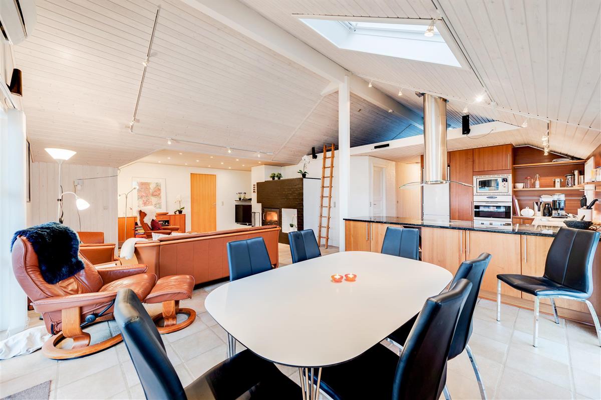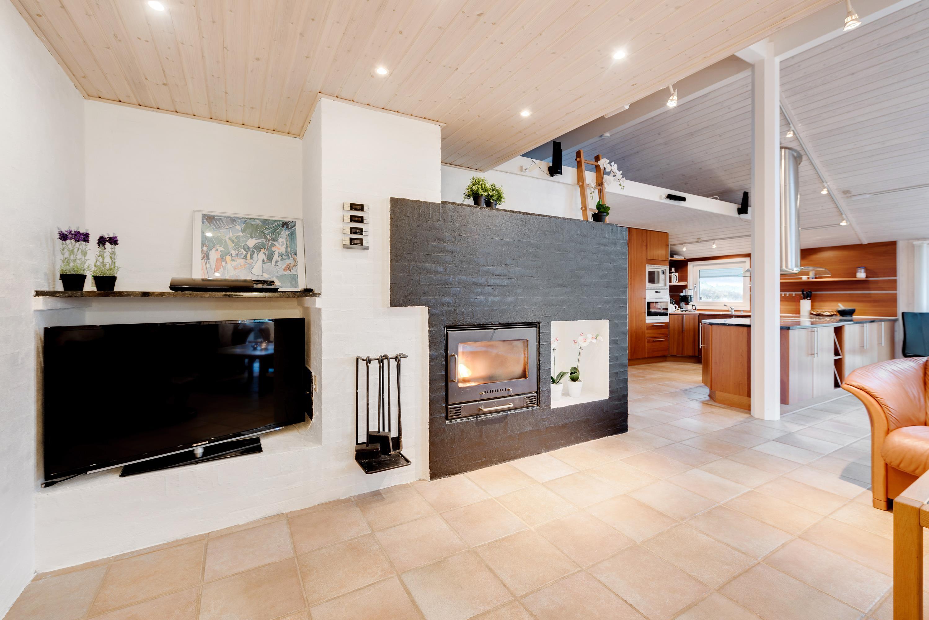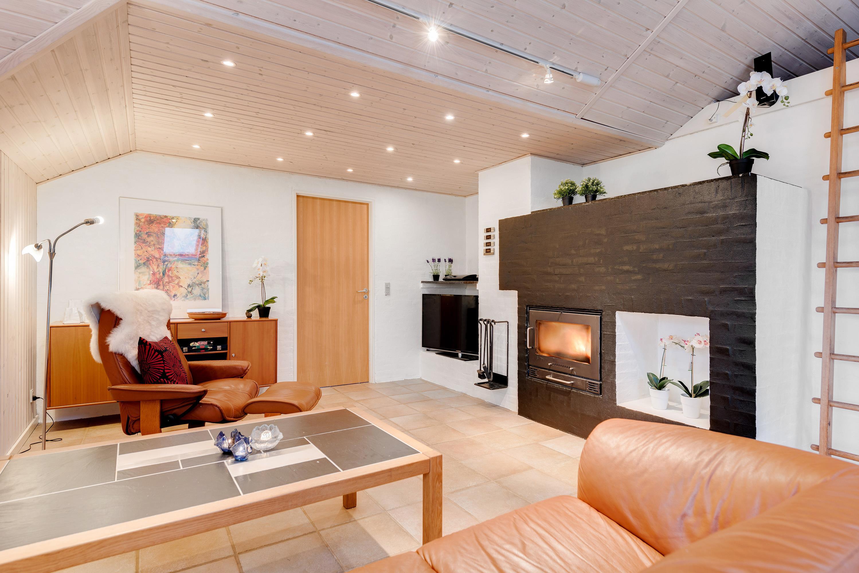 Built in 1992 and subsequently renovated, this holiday home offers a welcoming living area where you can relax by the warming, crackling fire of the wood-burning stove. Along with the stove and practical underfloor heating, an energy-efficient heat pump ensures a comfortable temperature throughout. This heating combination is particularly beneficial during colder months, ensuring consistently warm floors throughout the holiday home.