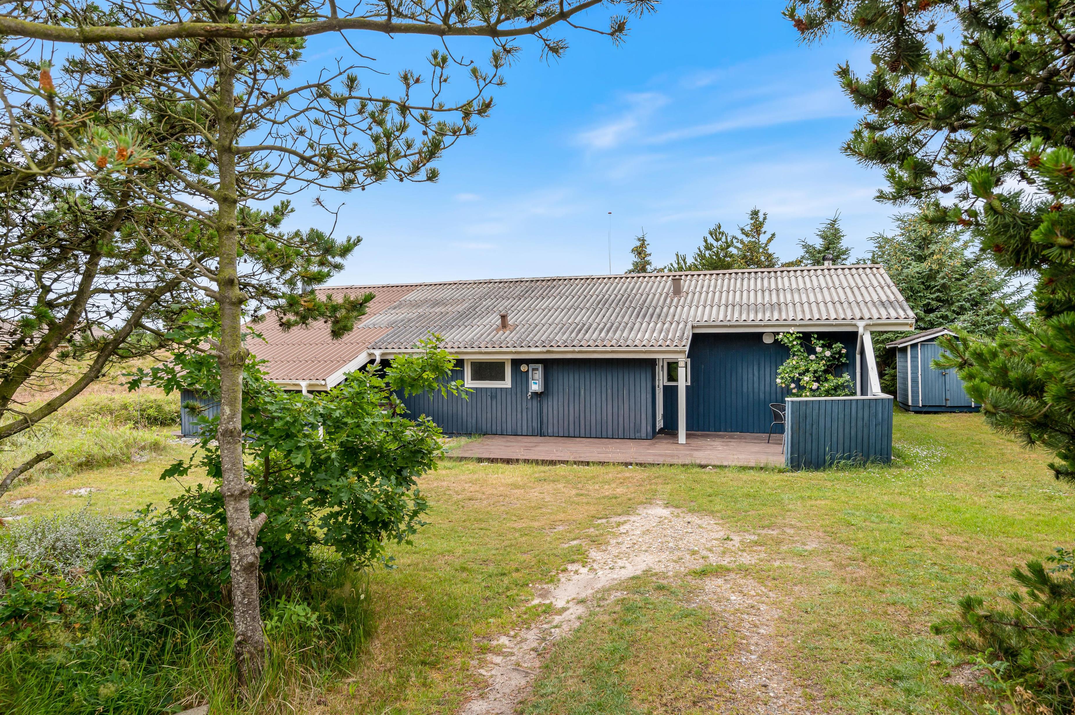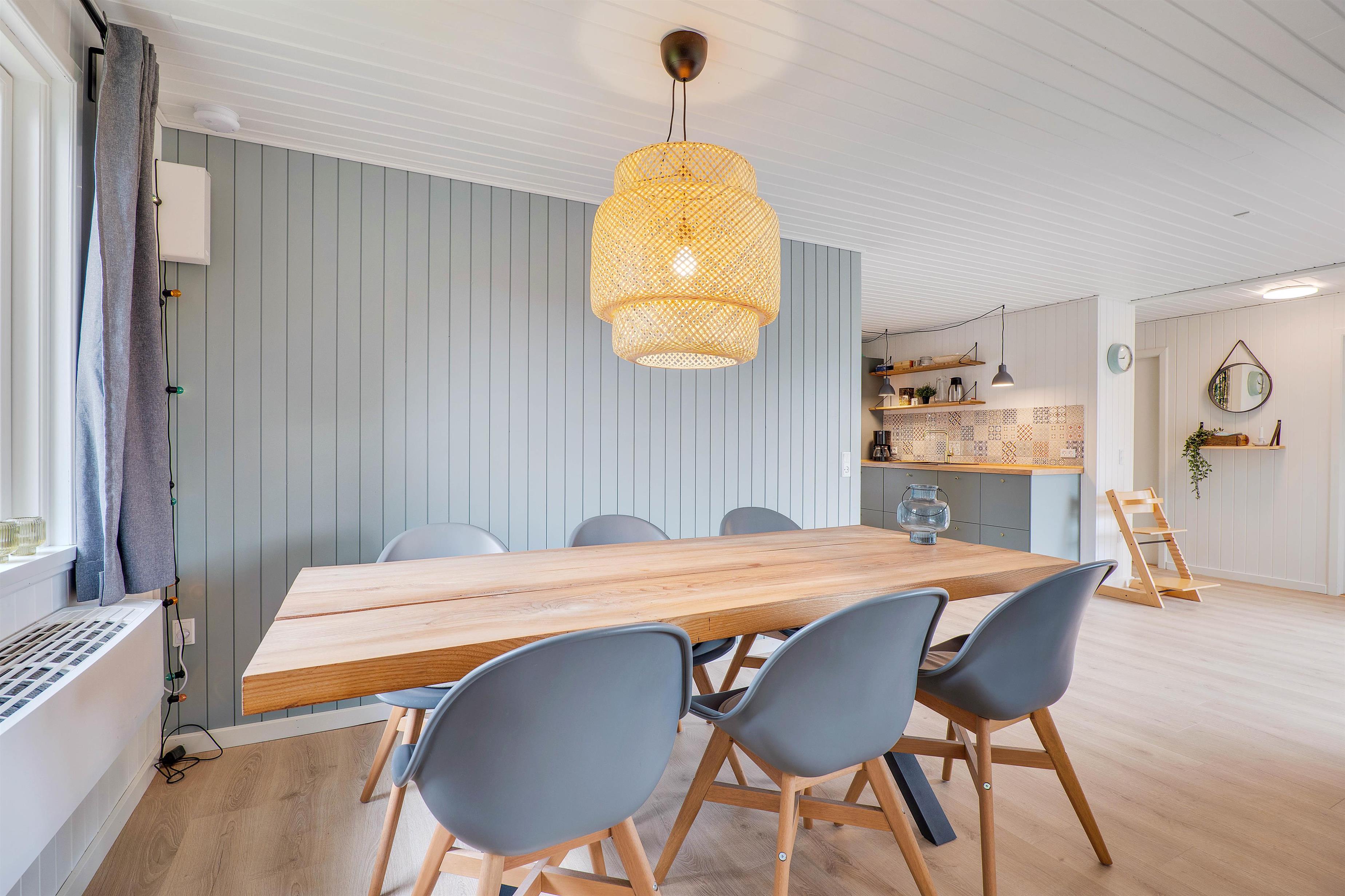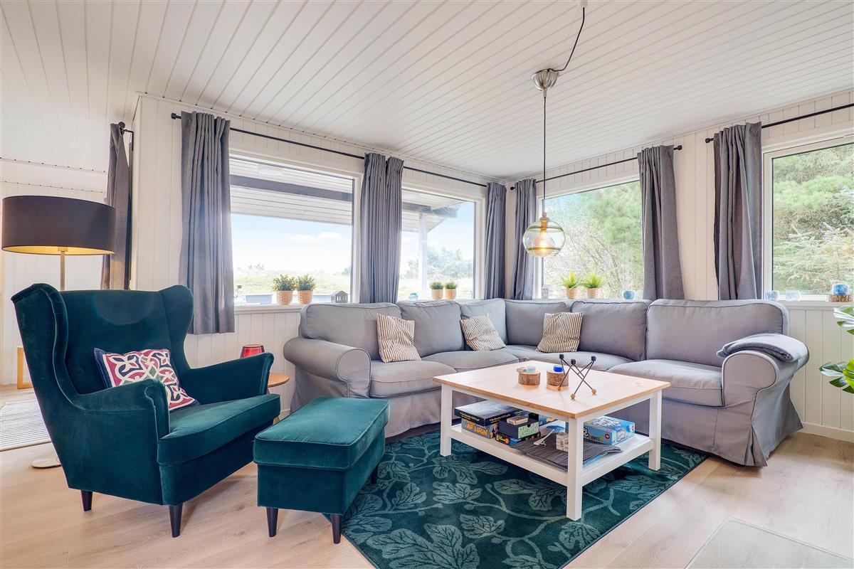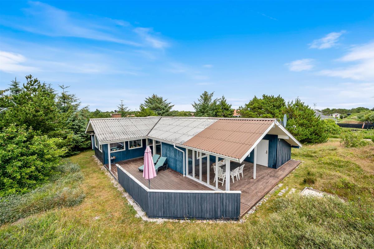 Your holiday home, renovated in 2021, can be described as a simple yet cosy holiday home in Bjerregård. It sits on a tranquil plot, sheltered by trees, protecting you from the wind and offering privacy whilst enjoying the terraces surrounding the house.