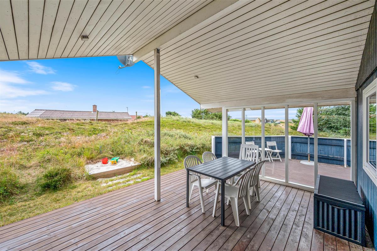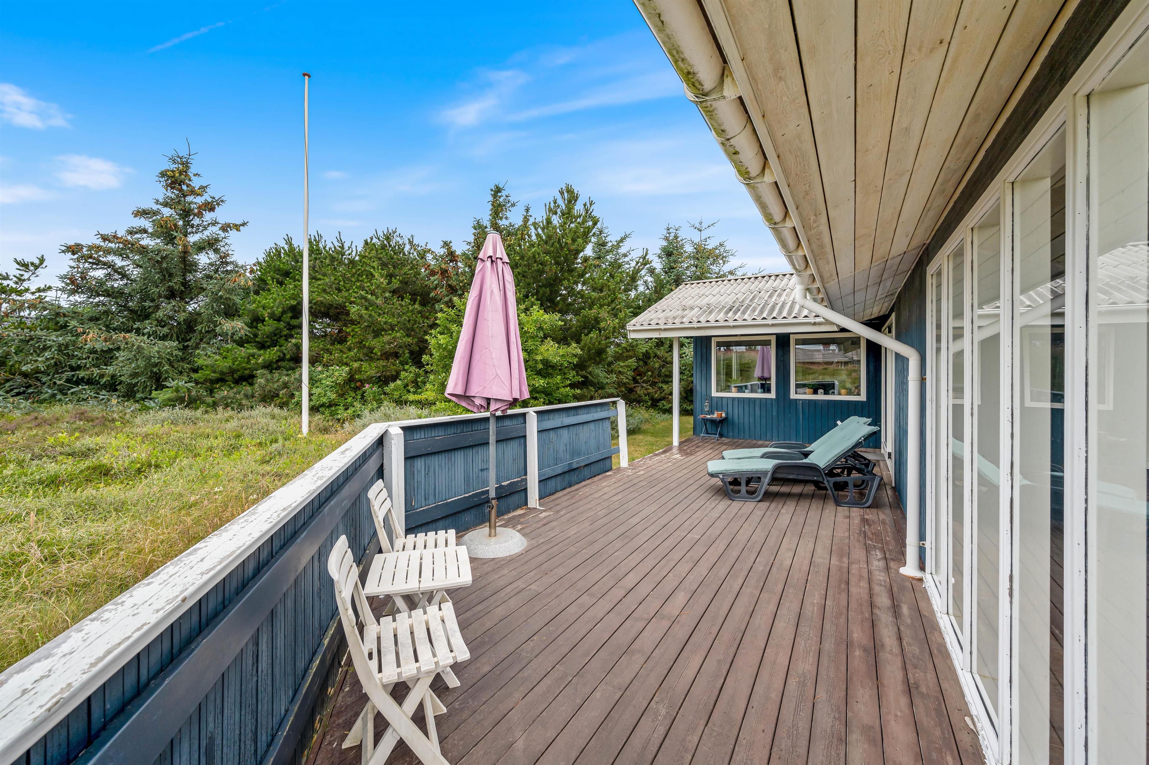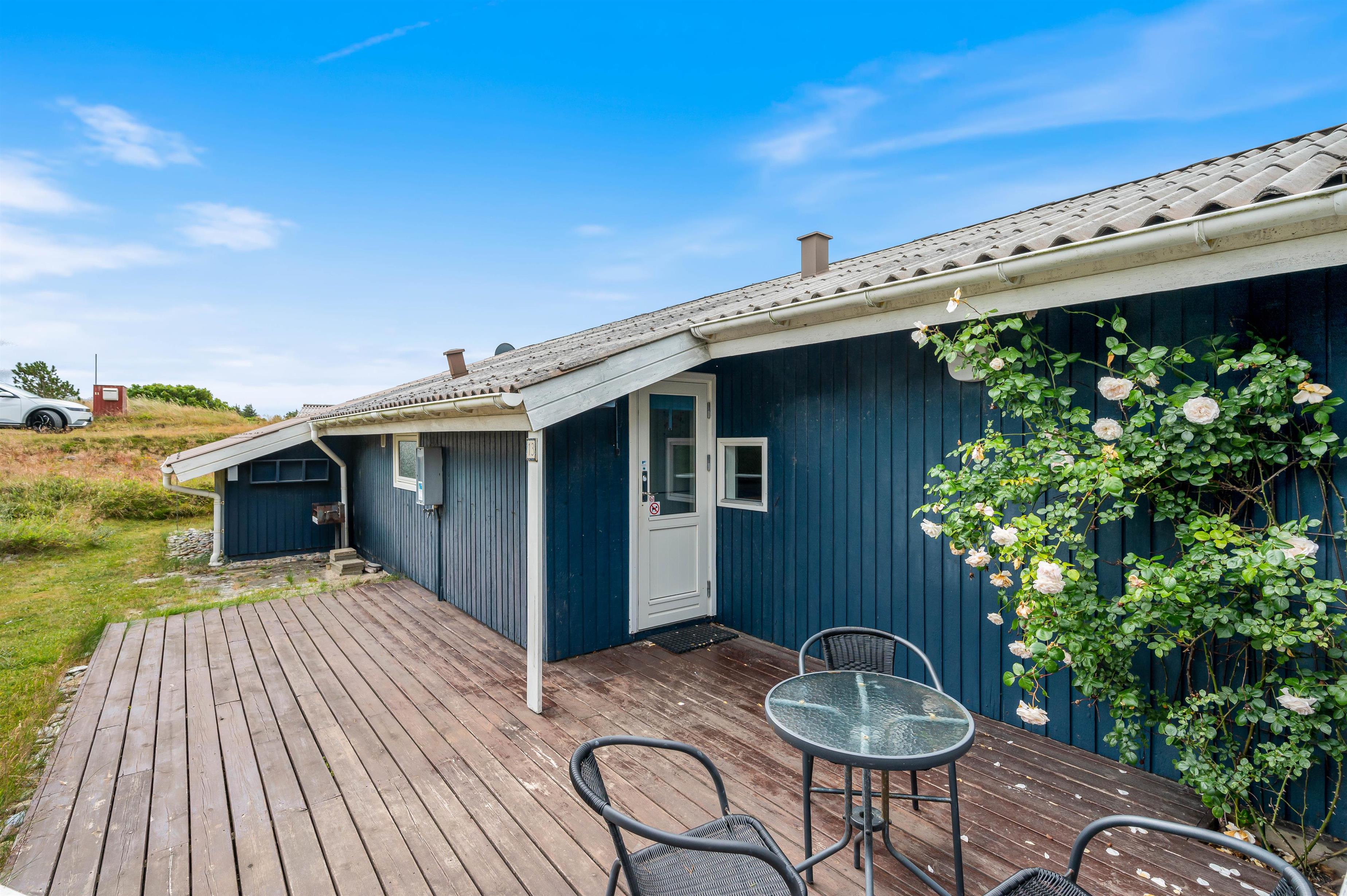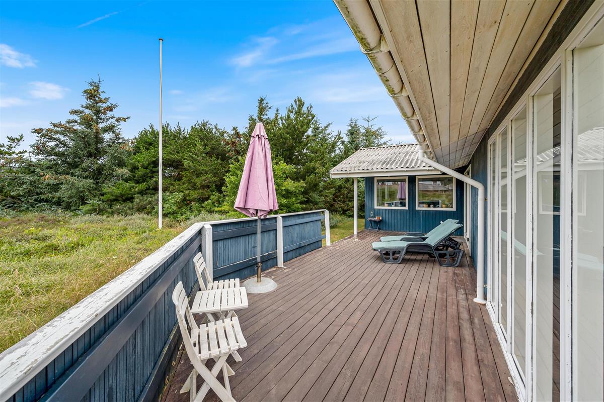 Your holiday home, renovated in 2021, can be described as a simple yet cosy holiday home in Bjerregård. It sits on a tranquil plot, sheltered by trees, protecting you from the wind and offering privacy whilst enjoying the terraces surrounding the house.