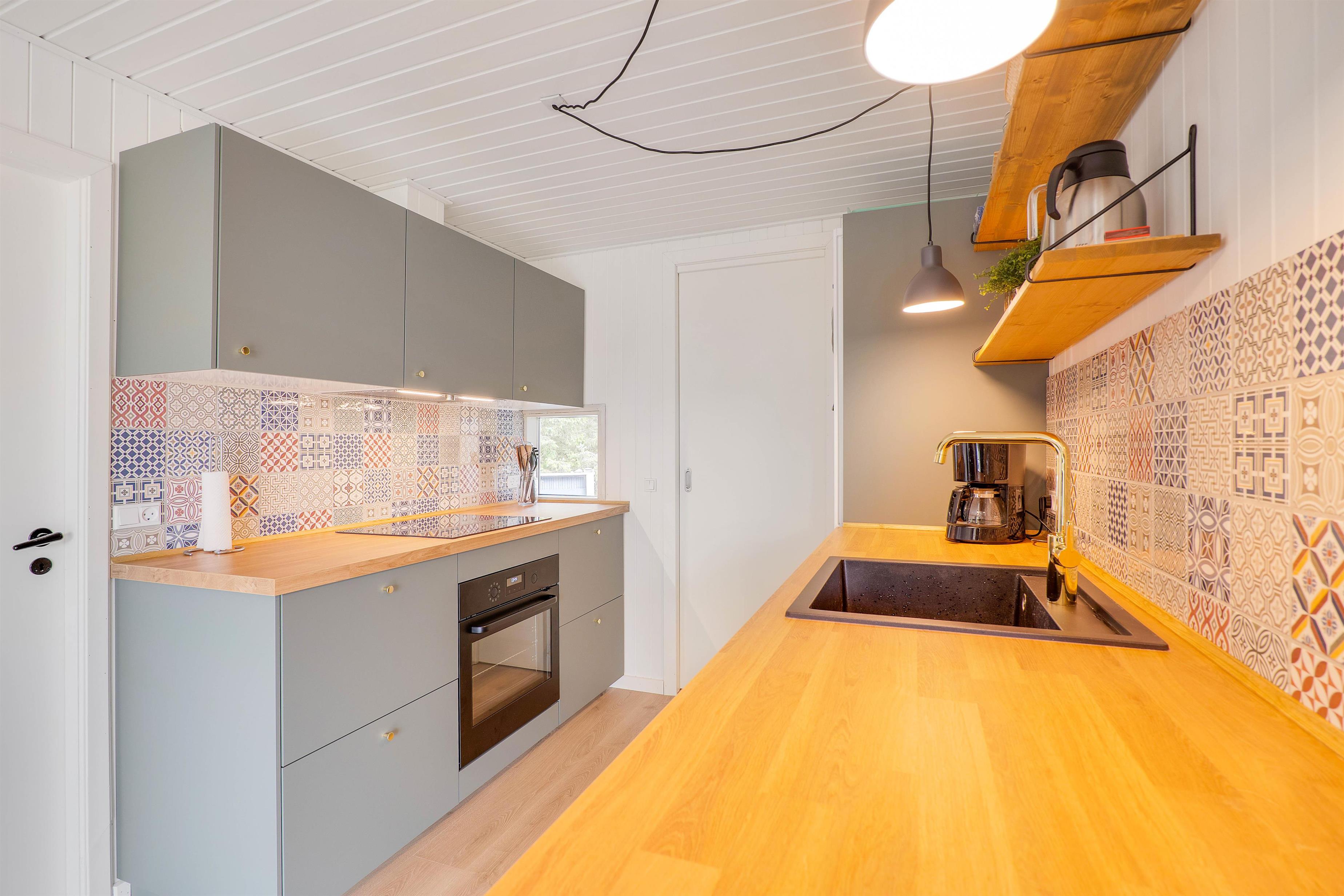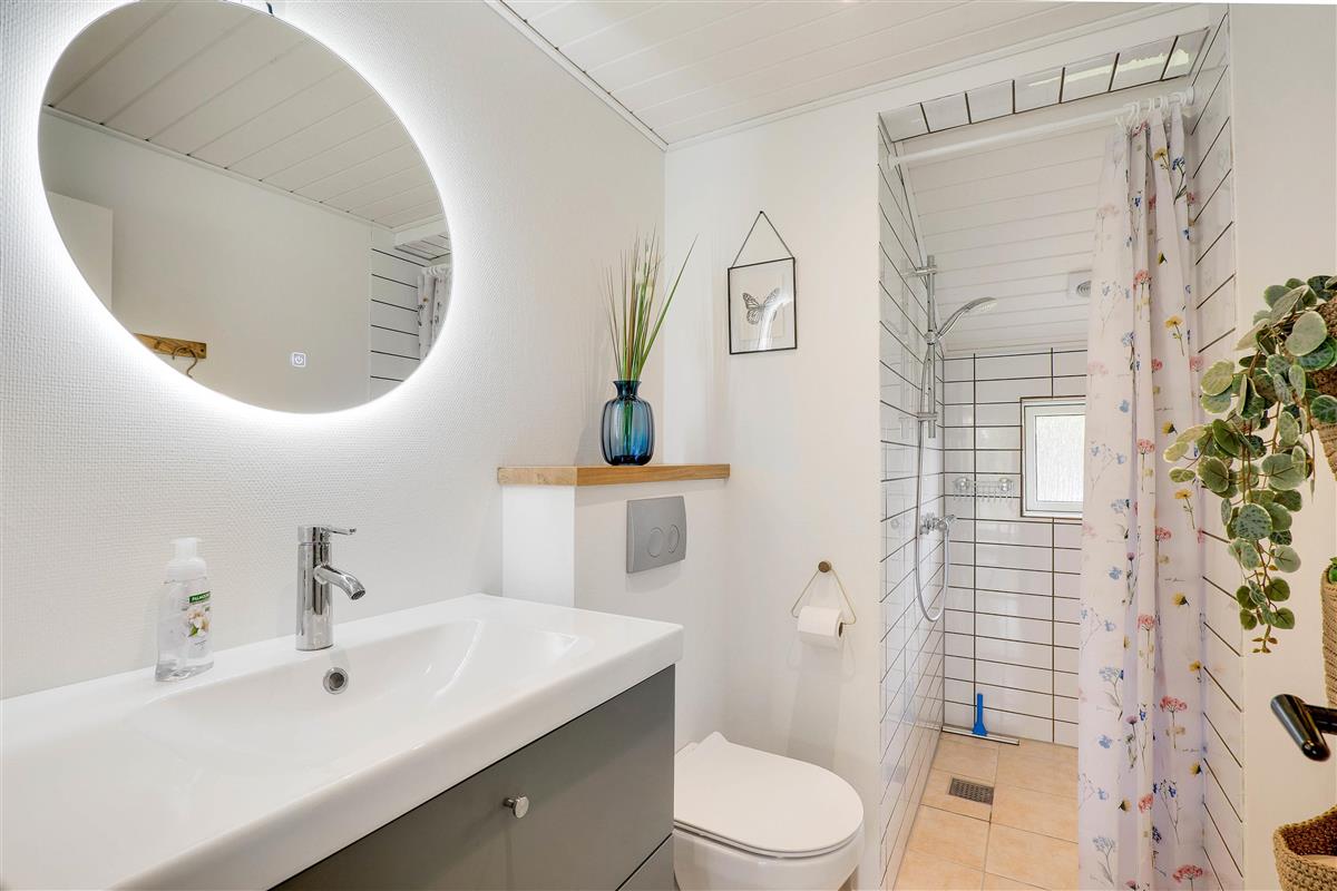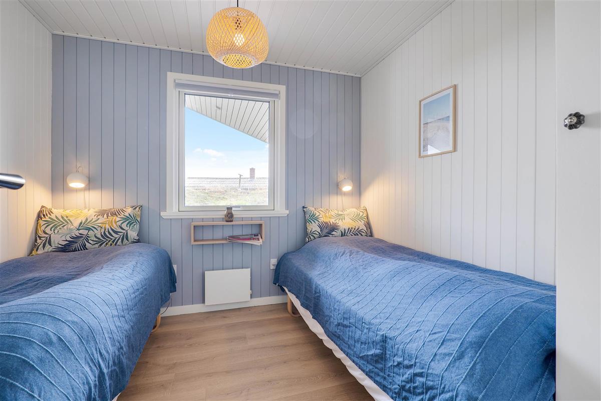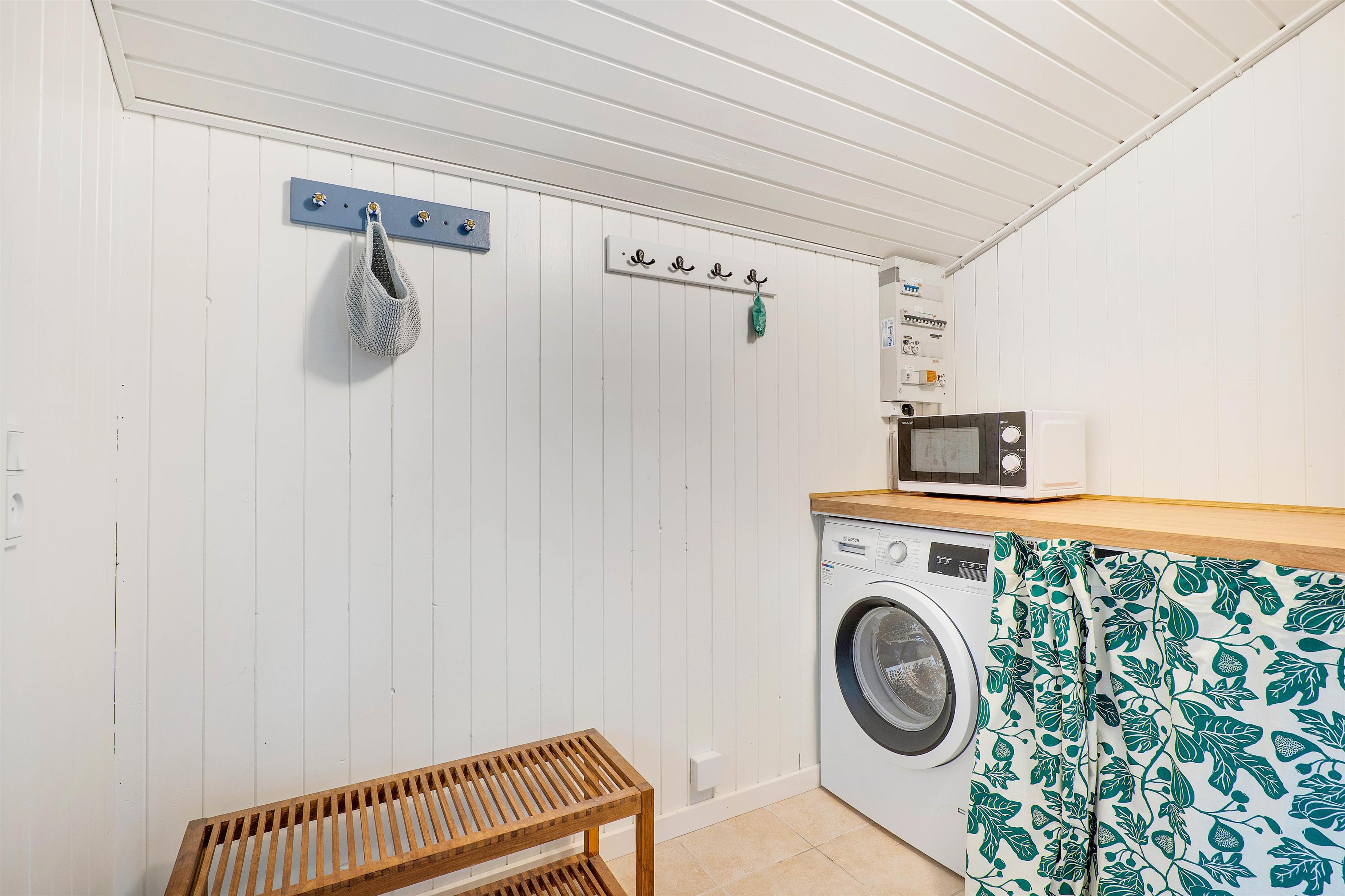 Your holiday home, renovated in 2021, can be described as a simple yet cosy holiday home in Bjerregård. It sits on a tranquil plot, sheltered by trees, protecting you from the wind and offering privacy whilst enjoying the terraces surrounding the house.