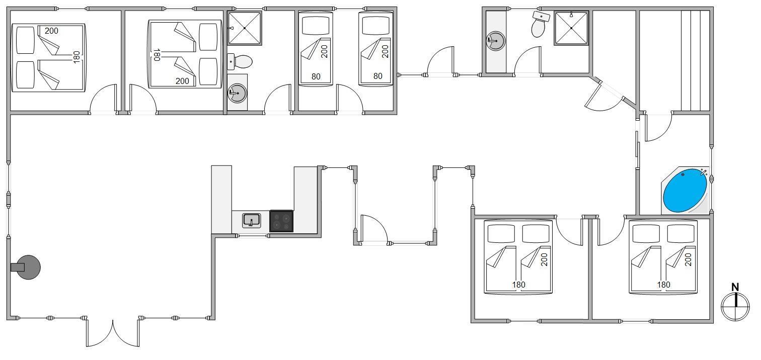The layout of the house at Bjerregårdsvej 444 is both practical and well-designed. The living room is very homely and, together with the integrated well-equipped kitchen and dining area, forms the heart of the house where everyone can gather to cook or relax. A wood-burning stove provides comfortable temperatures and the perfect holiday atmosphere. The holiday home receives three German TV channels.