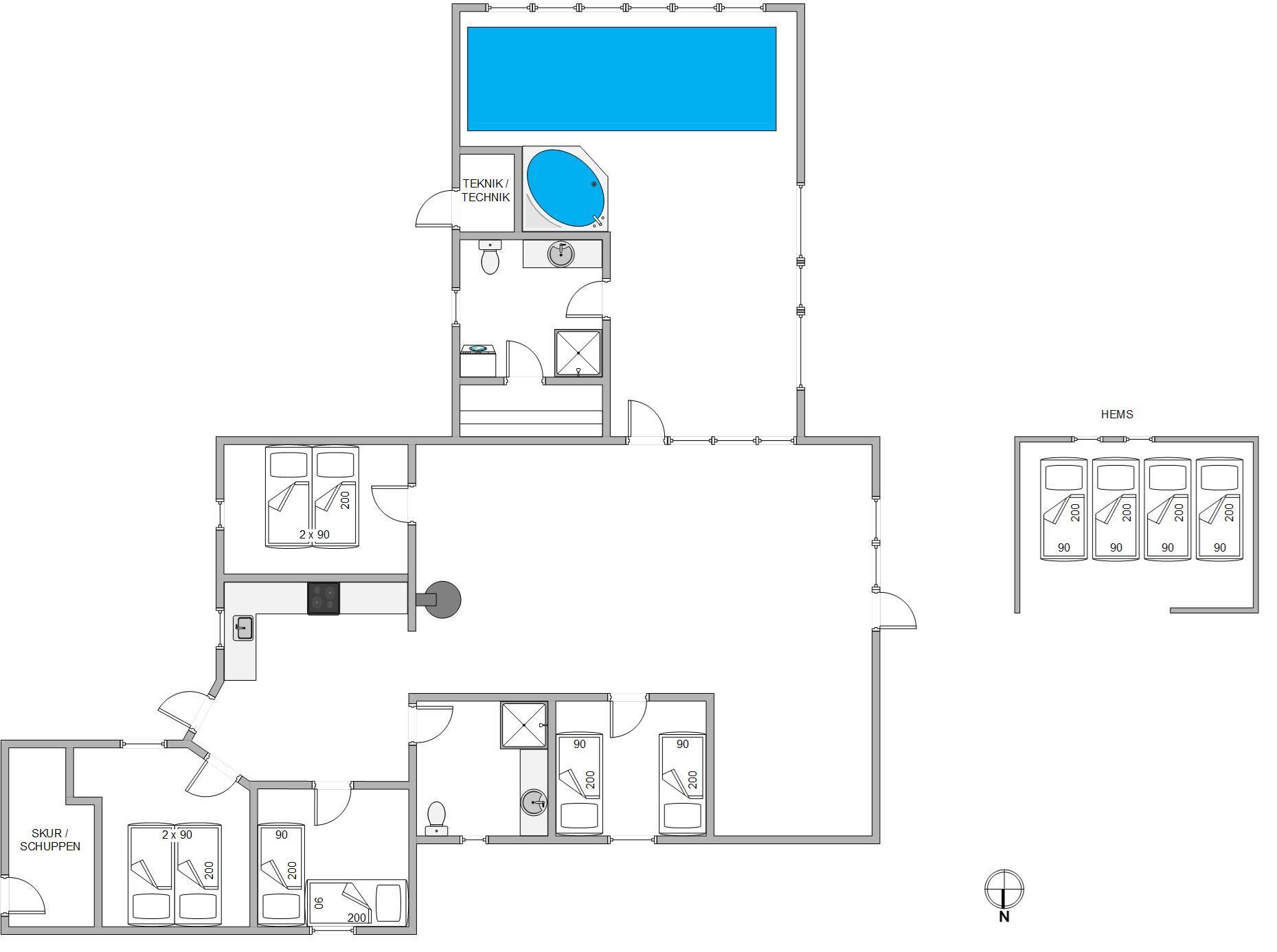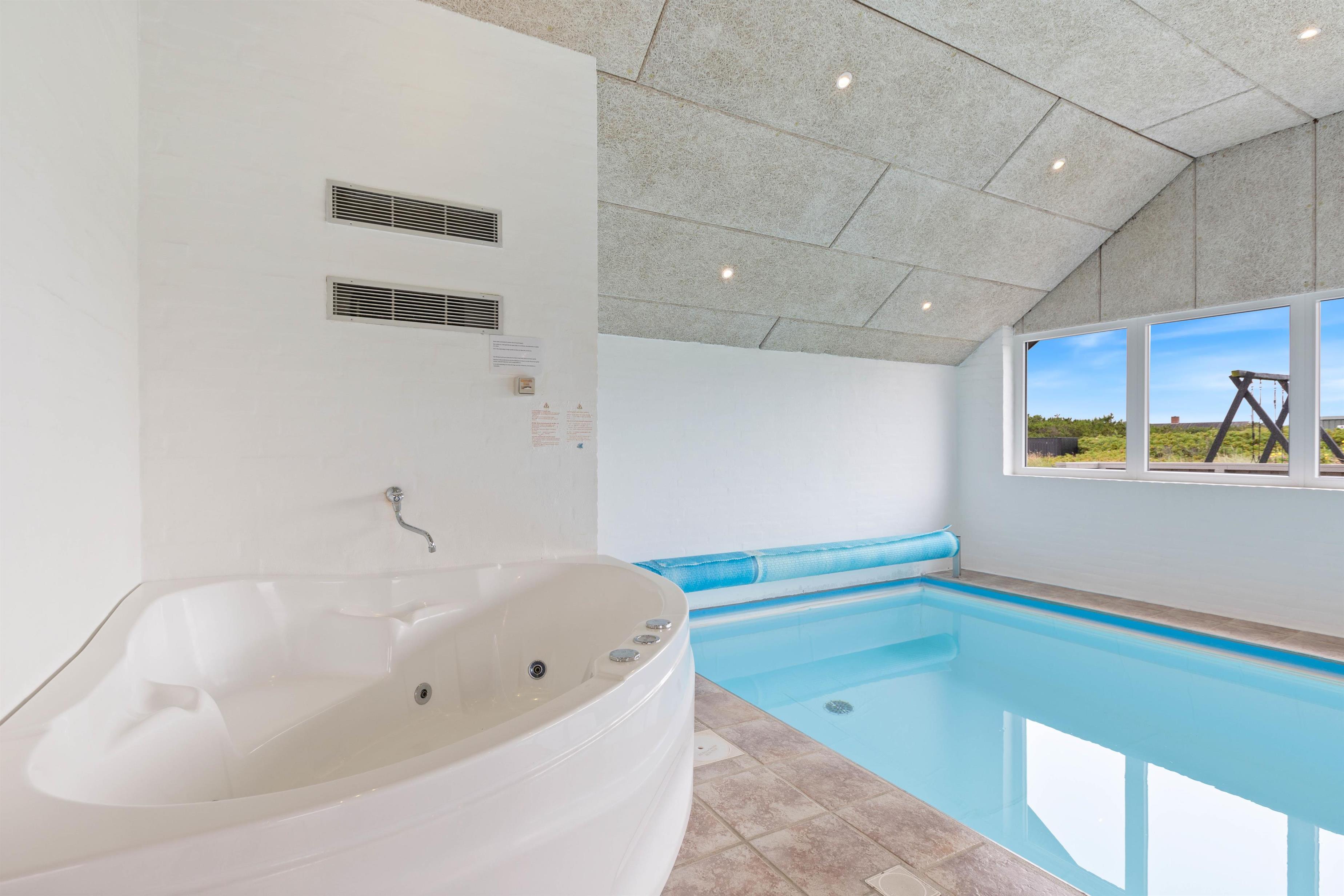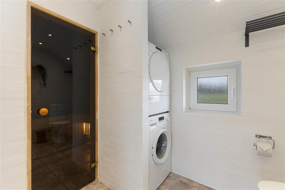 The centrepiece of the holiday home at Rauhesvej 52 is the 18-square-metre swimming pool, perfect for relaxation or active enjoyment year-round. Afterwards, unwind in the hot tub while the sauna provides soothing warmth. The house features two bathrooms and is equipped with an efficient heat pump ensuring a comfortable indoor climate.