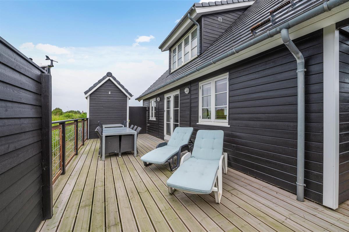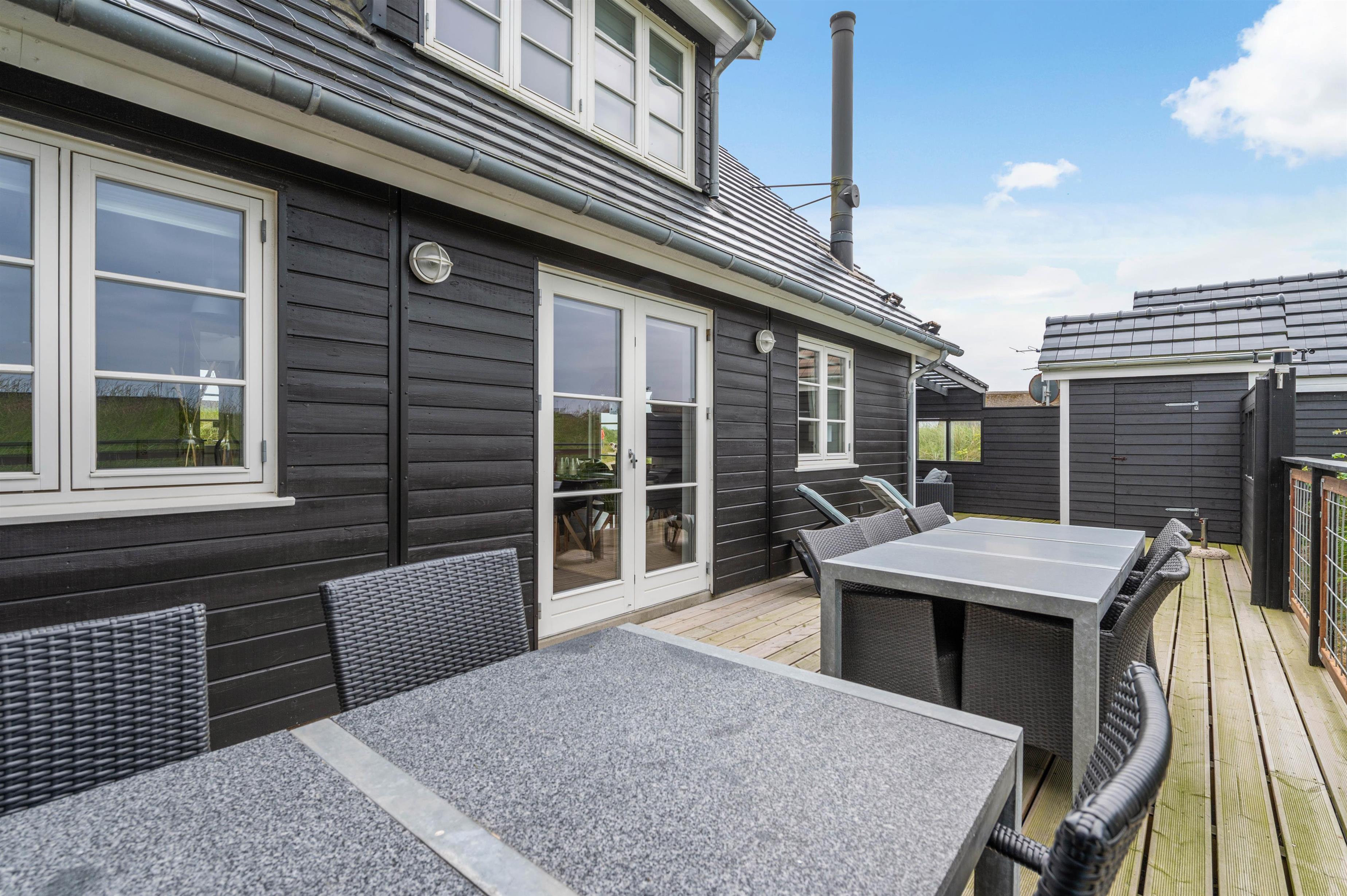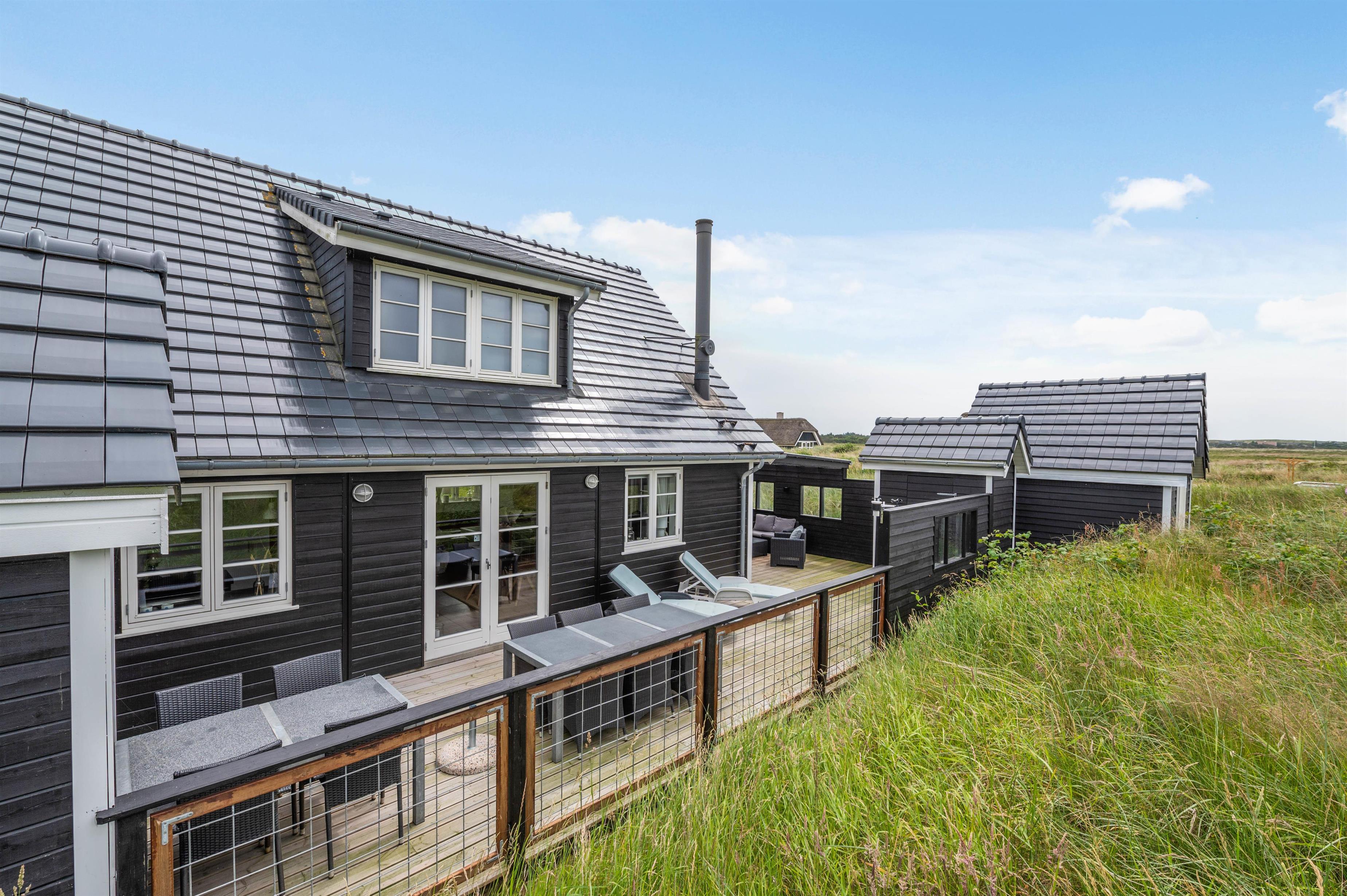 Around the holiday home, you'll find partially sheltered and partially covered terrace areas. One area is fully fenced, allowing children to play safely and dogs to remain secure. Whatever the wind direction or sun position, you'll always find a comfortable spot to enjoy the fresh sea air. The spacious natural plot with its vegetation offers natural screening for privacy.