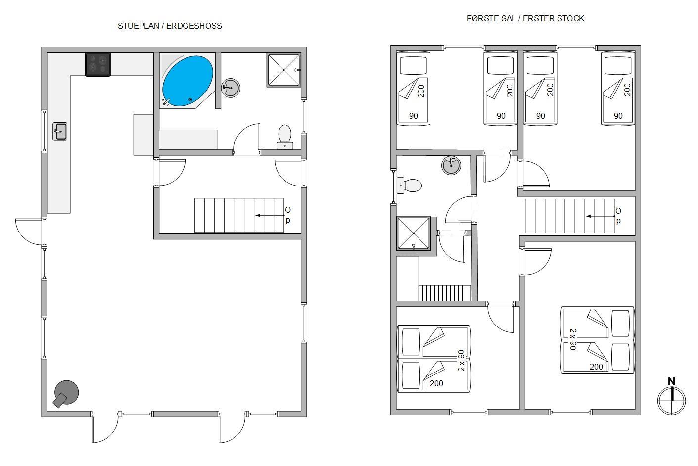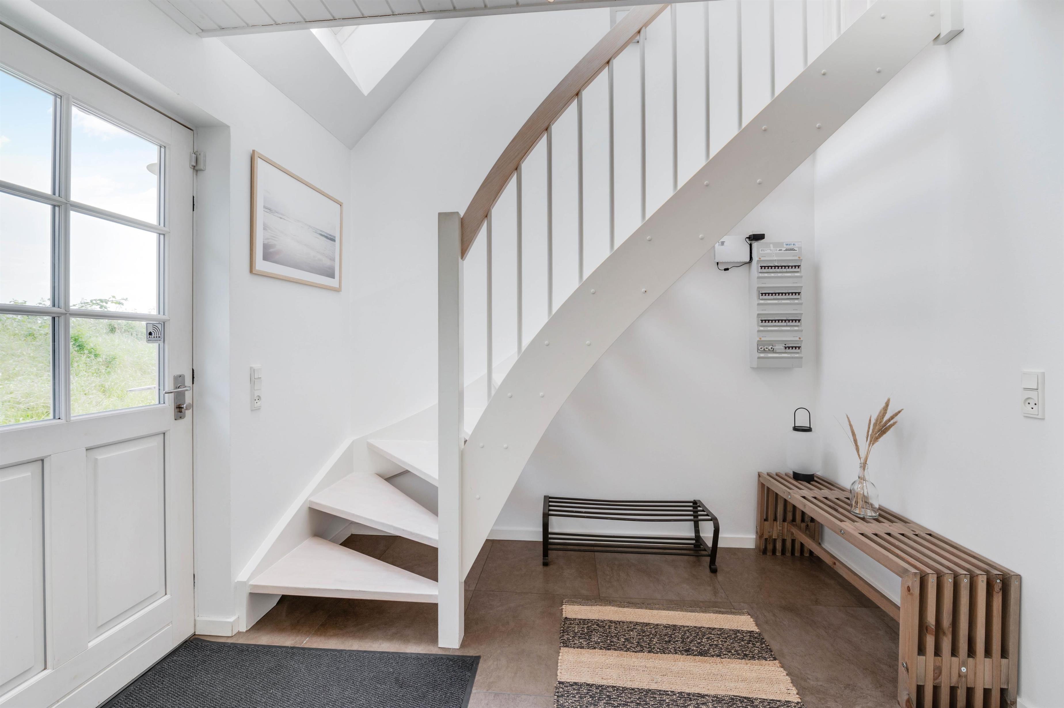 The upper floor houses four comfortably furnished bedrooms. Two bedrooms feature comfortable double beds, while the other two offer four single beds in total. Here you can recharge your batteries and wake refreshed for another day of holiday activities.