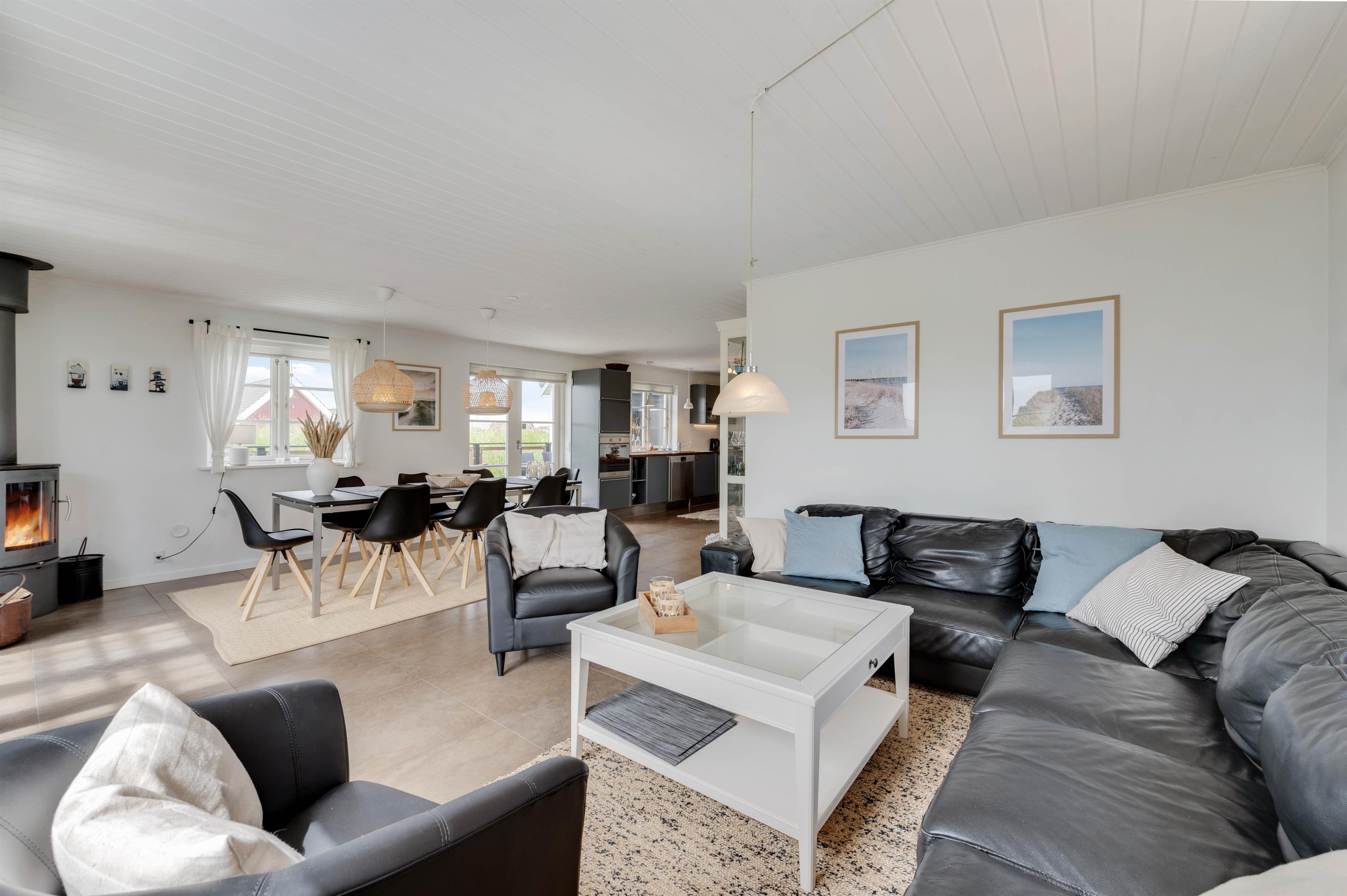 This well-appointed holiday home, set across two floors, accommodates up to 8 guests. The ground floor features a bright, modern living area with underfloor heating, heat pump and wood-burning stove. Here you can relax together on the sofa, watch television and listen to the crackling of the fire.
