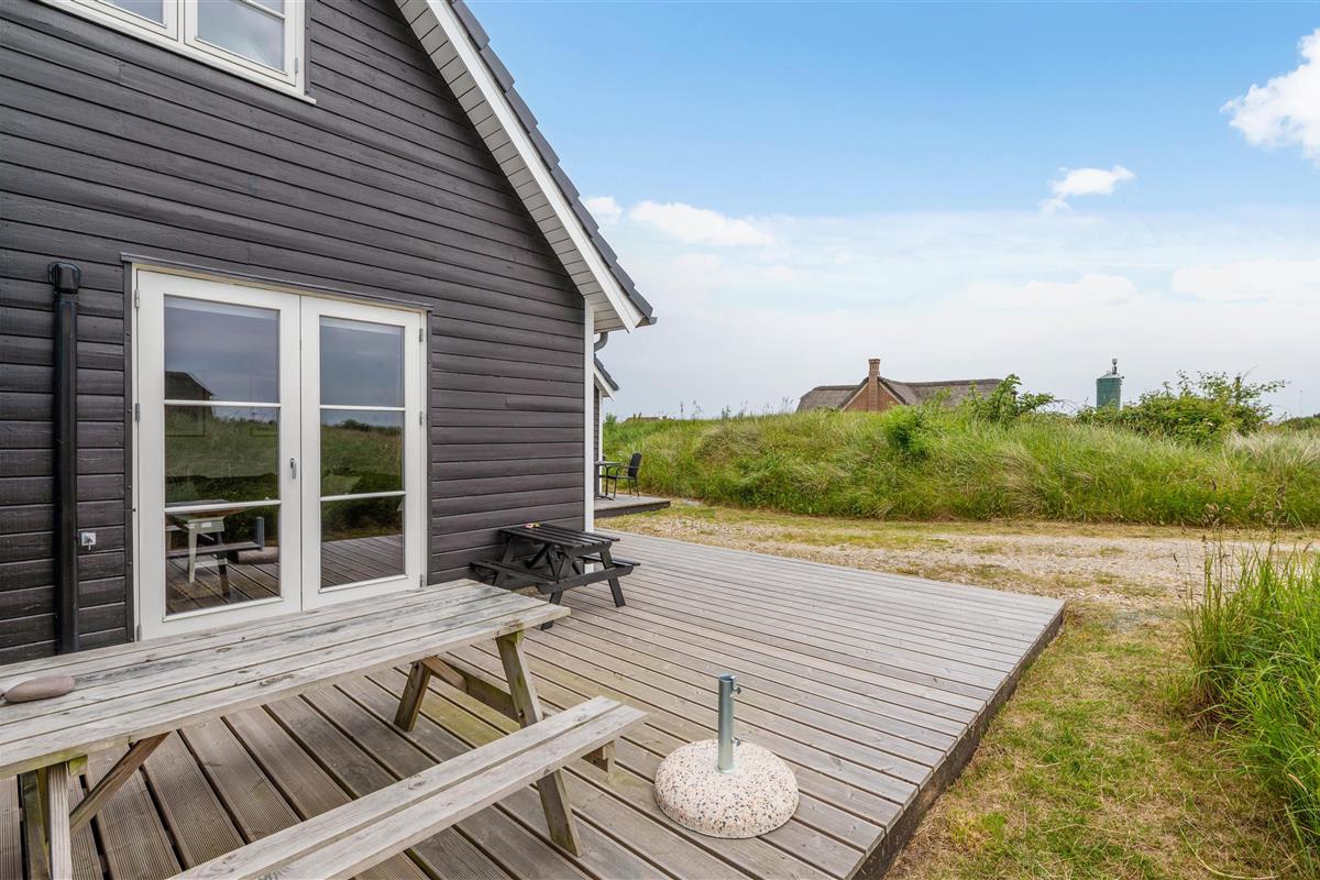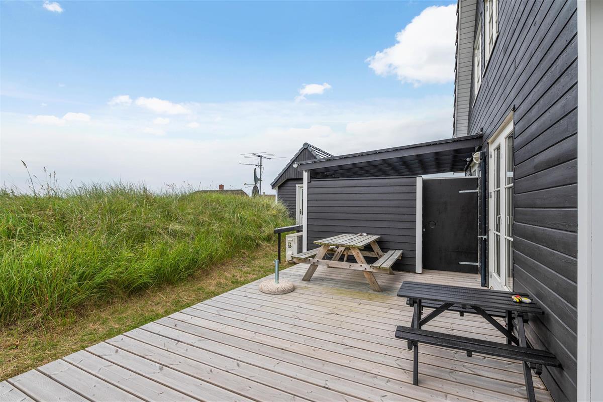 Your beautiful wooden holiday home is situated in the northern part of the Bjerregård holiday region, in the heart of the Holmsland Klit peninsula. You're surrounded by water on two sides. The North Sea with its kilometres of sandy beach is just 500 metres away. Enjoy walks with your dogs, take a refreshing dip in the sea, or collect seashells. You might even be lucky enough to find amber.