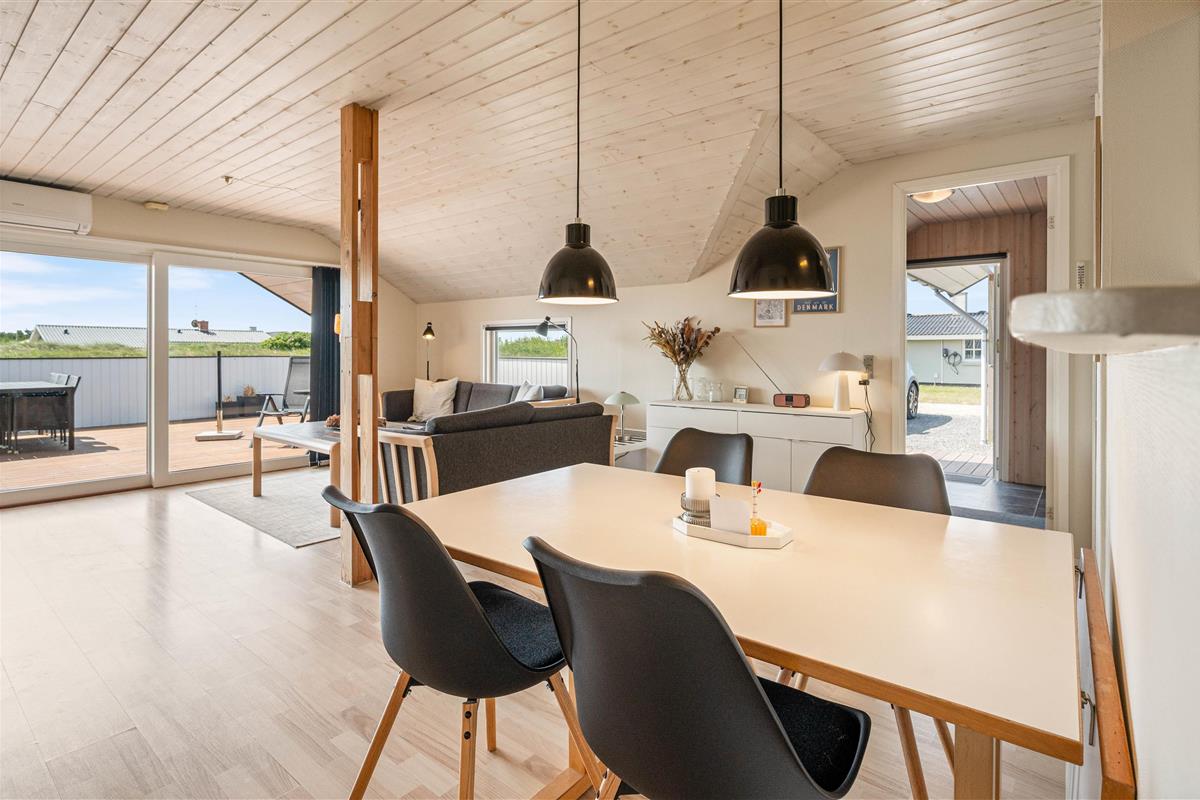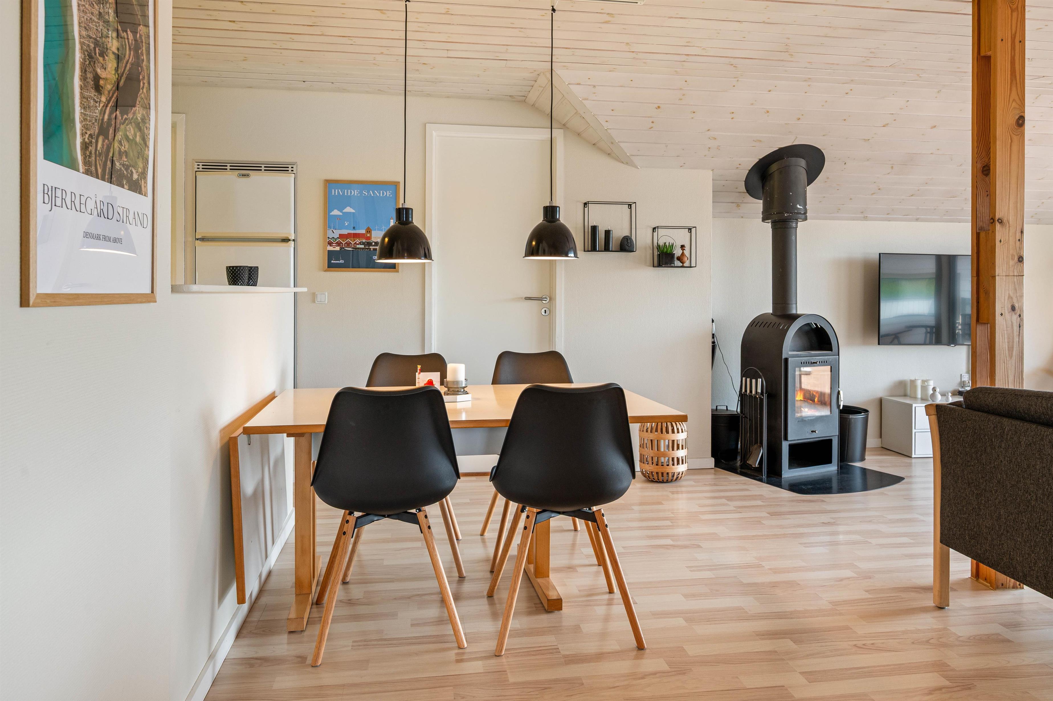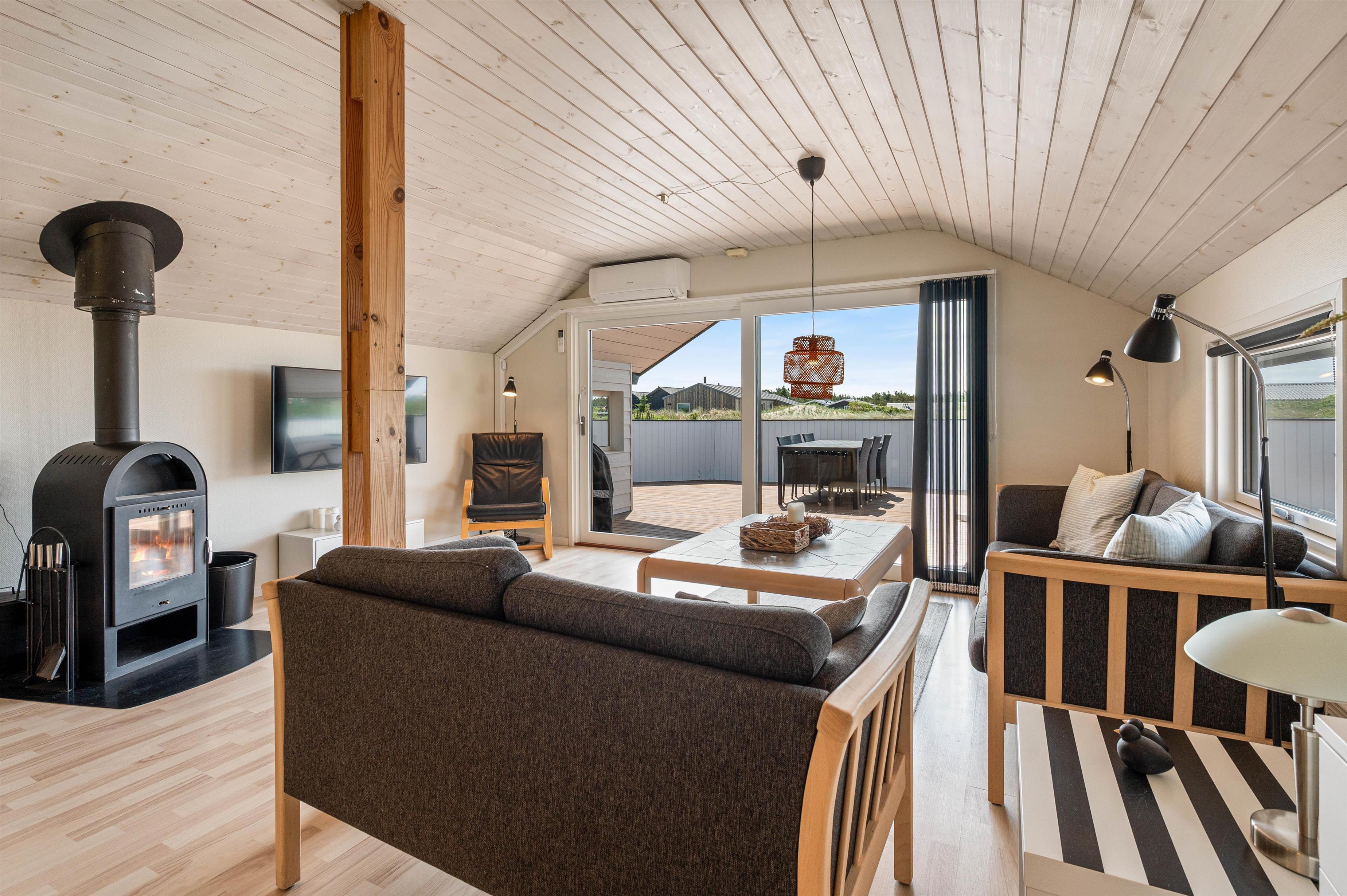 The holiday home is situated in the popular holiday region of Bjerregård, perfect for walks through the picturesque landscape of heathland, dunes and North Sea beach. Bjerregård has a small convenience store for daily essentials. For larger shopping trips, the charming harbour town of Hvide Sande is just a 15-minute drive away.