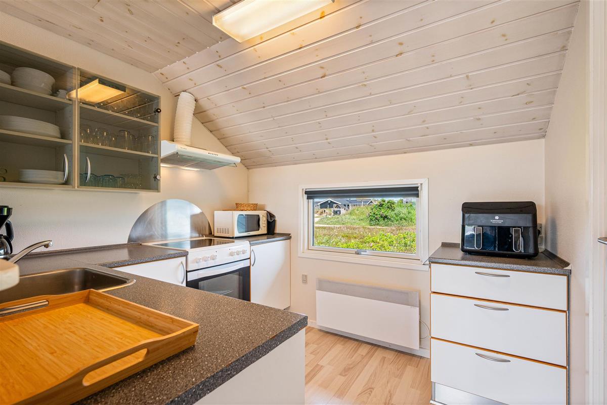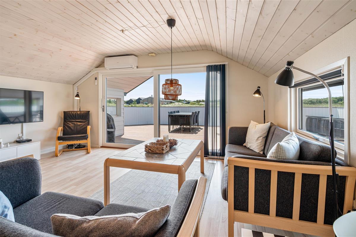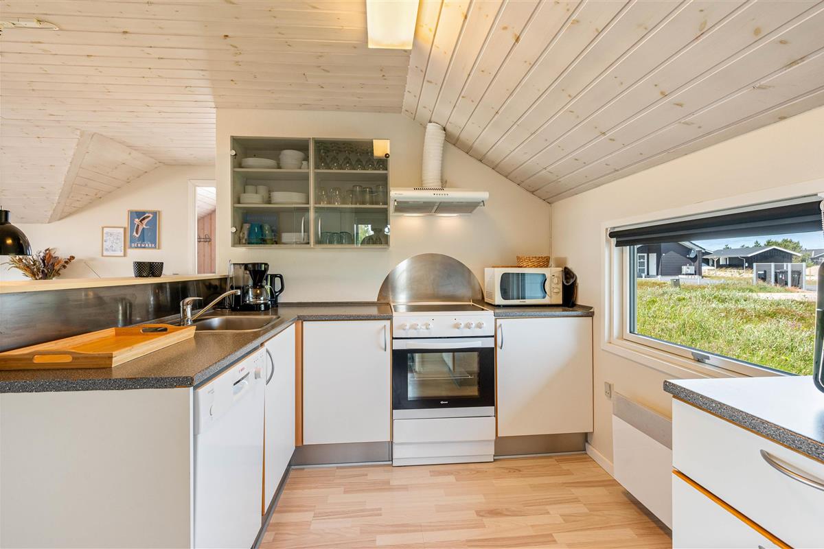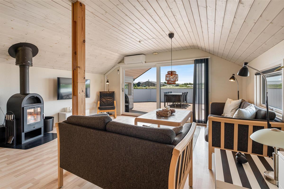The holiday home is situated in the popular holiday region of Bjerregård, perfect for walks through the picturesque landscape of heathland, dunes and North Sea beach. Bjerregård has a small convenience store for daily essentials. For larger shopping trips, the charming harbour town of Hvide Sande is just a 15-minute drive away.