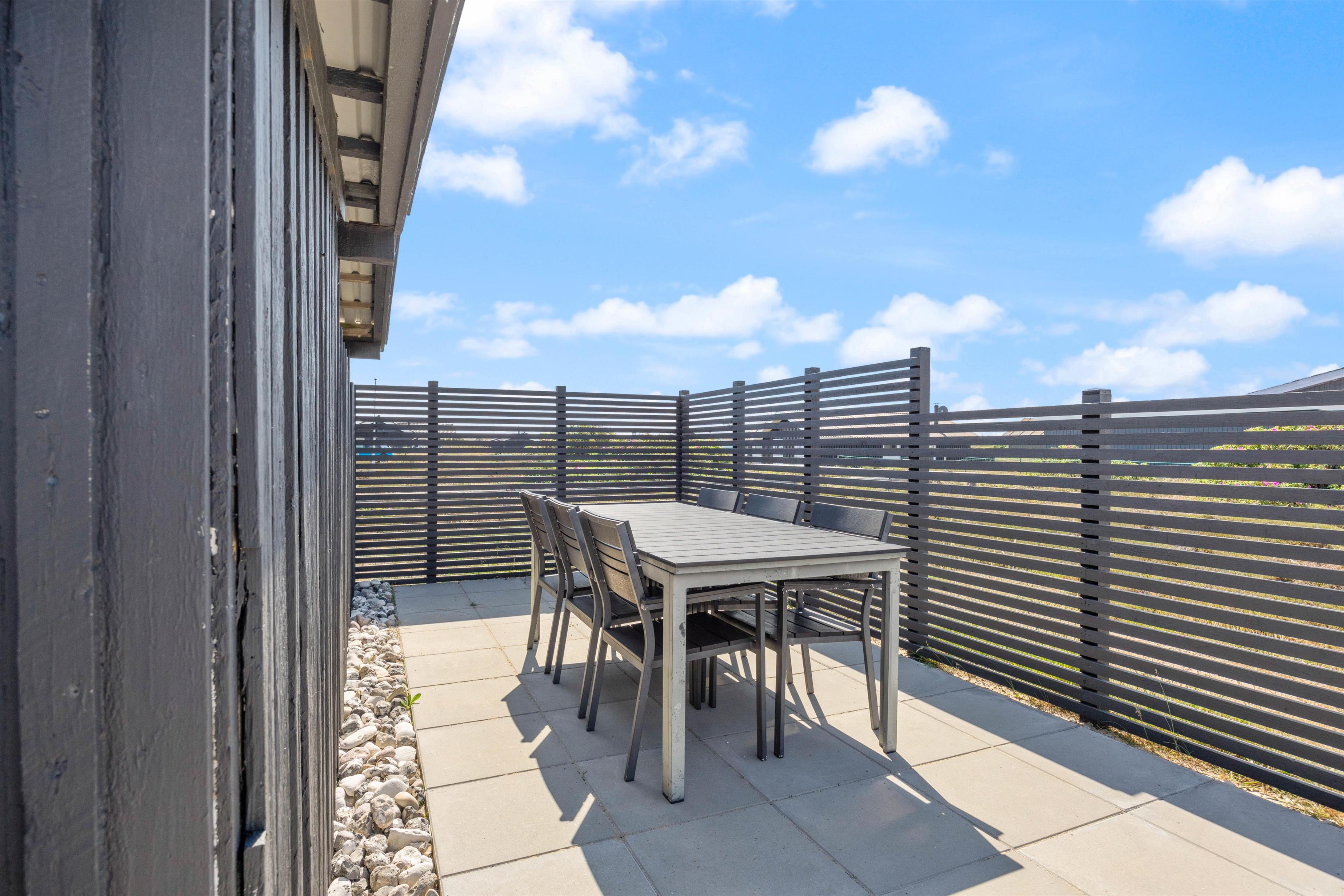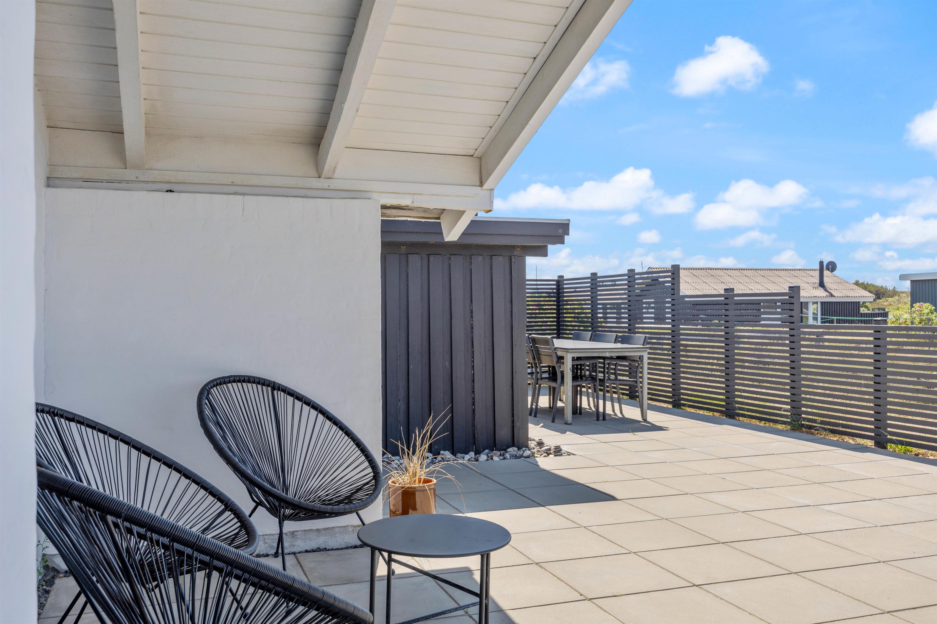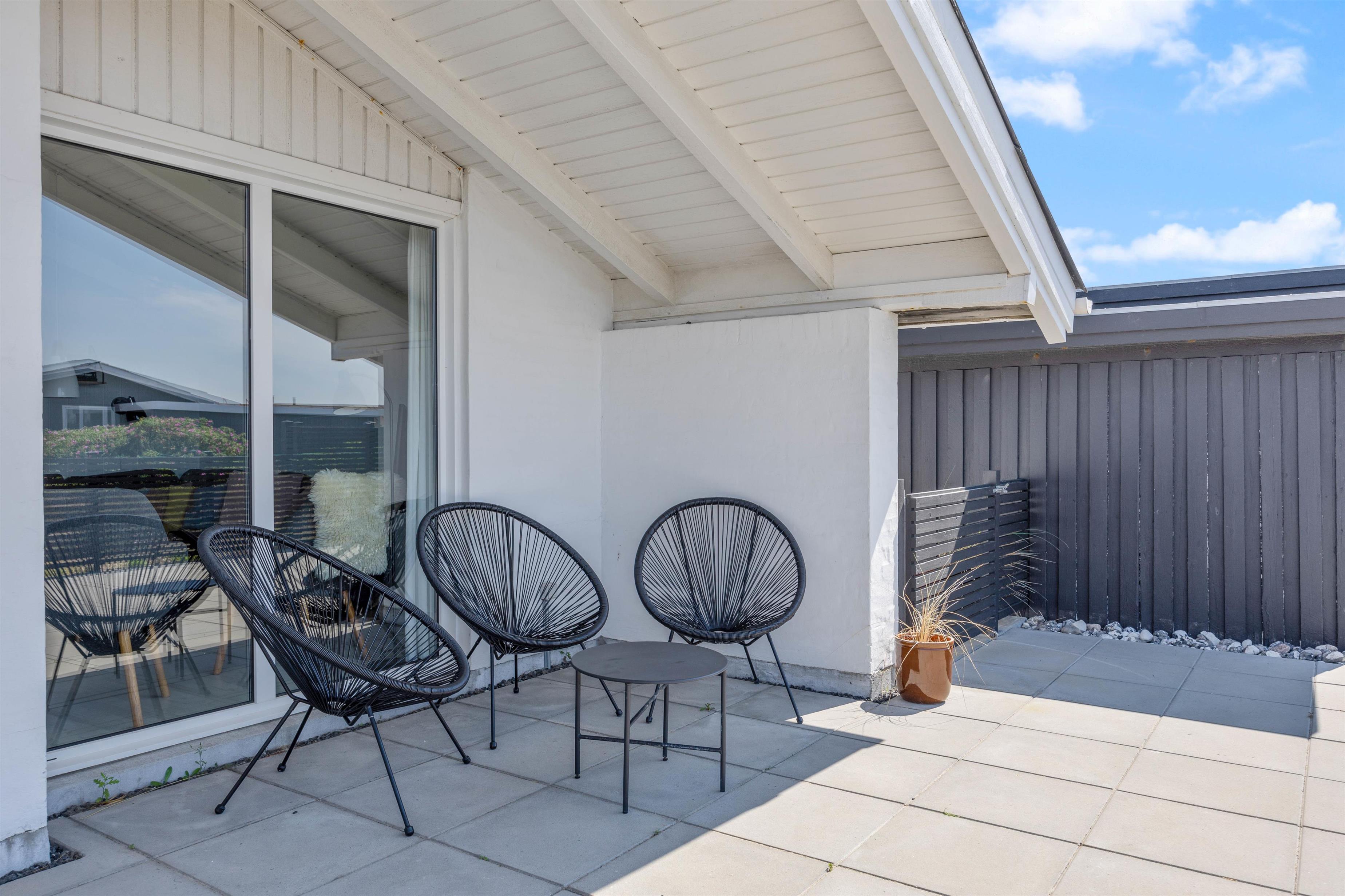 The terrace leaves nothing to be desired. The large, enclosed space was renovated in 2022 and spans 70 square metres. Spend entire days outdoors enjoying the sunshine, and gather in the covered section in the evening for a cosy barbecue as the sun transforms the sky with fantastic colours. You'll find plenty of comfortable spots for relaxation.