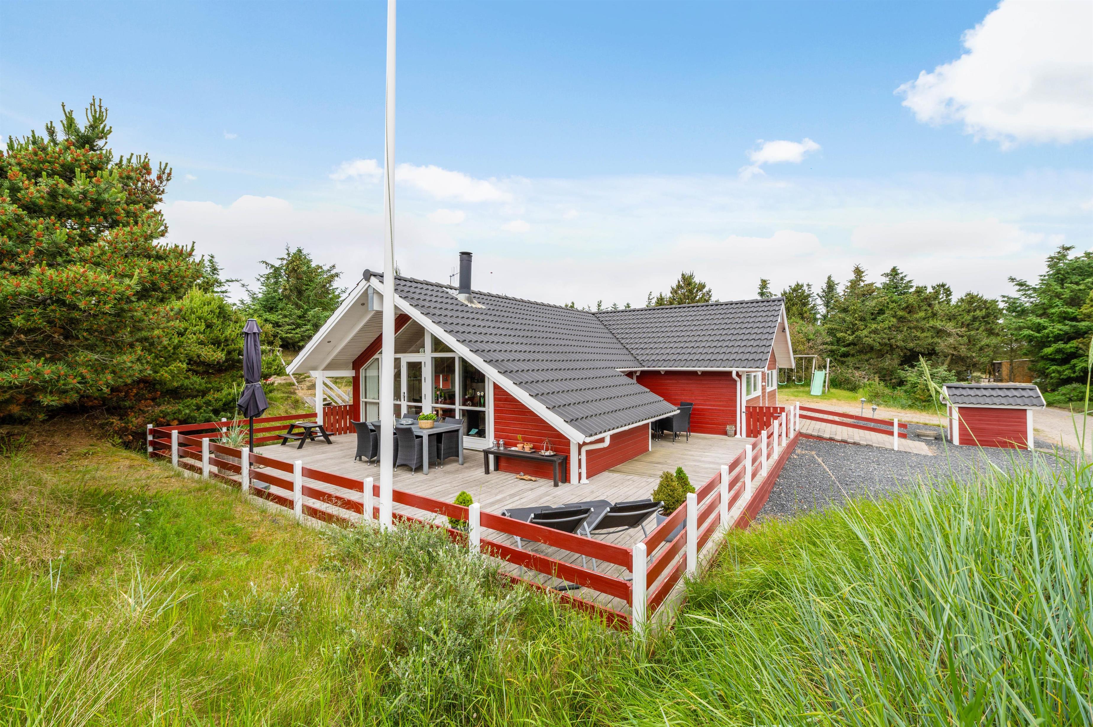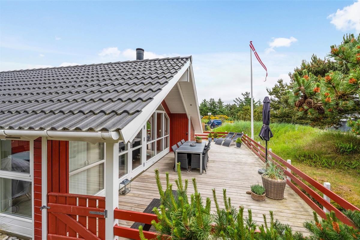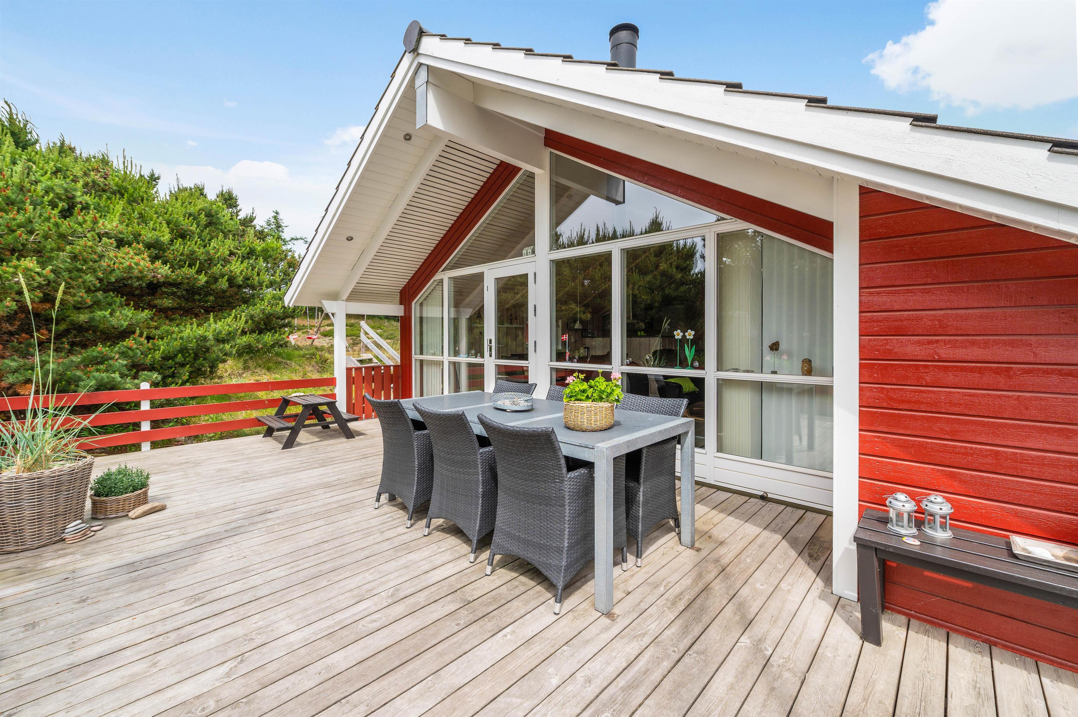 A beautiful and well-maintained holiday home in Bjerregård. The house is surrounded by several terraces, offering sheltered spots whatever the weather. The holiday home features two separate sleeping areas, each with its own bathroom - perfect for two families sharing.
