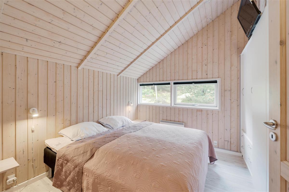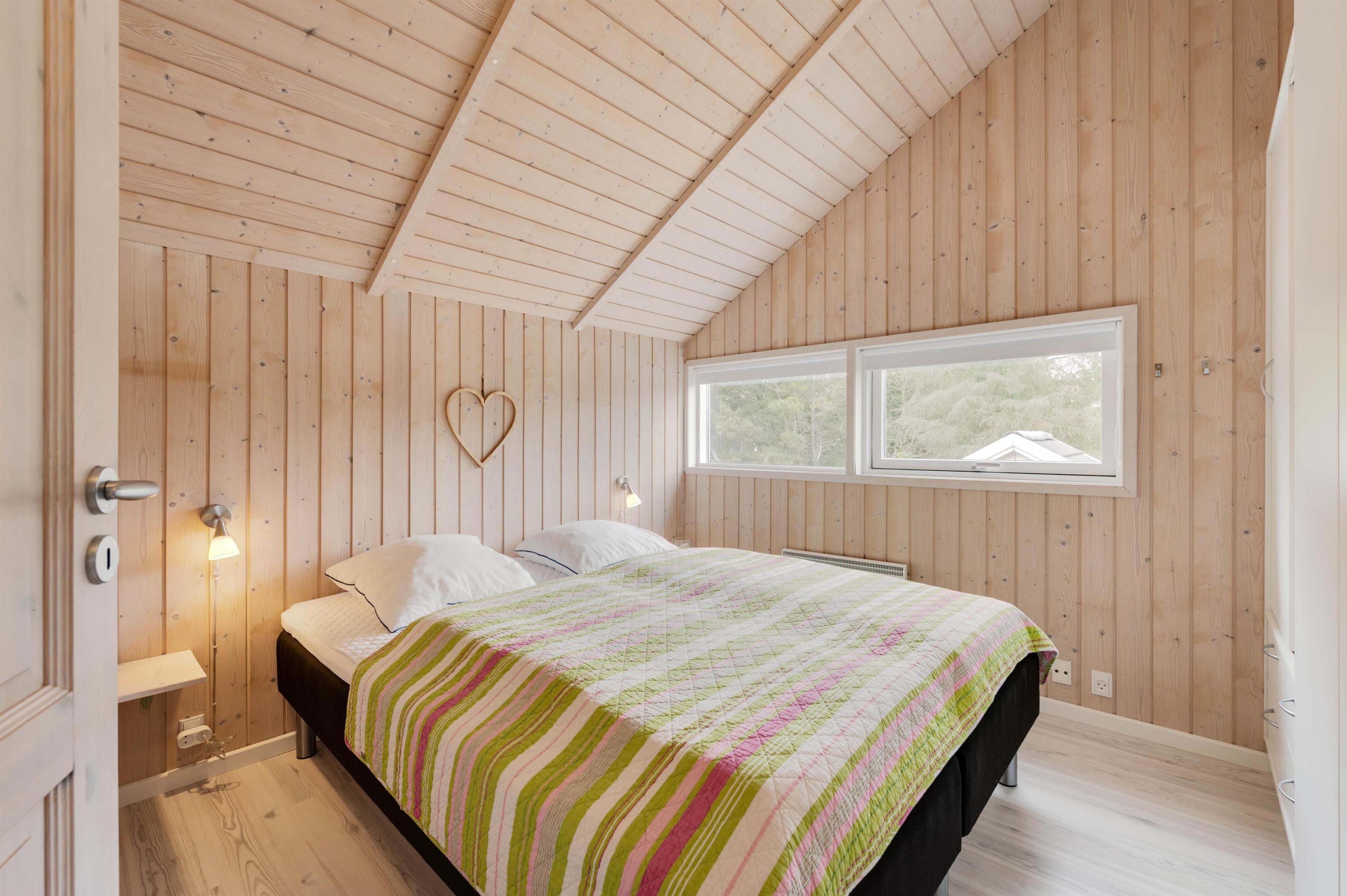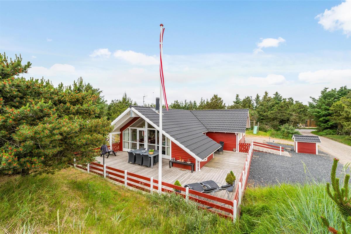 A beautiful and well-maintained holiday home in Bjerregård. The house is surrounded by several terraces, offering sheltered spots whatever the weather. The holiday home features two separate sleeping areas, each with its own bathroom - perfect for two families sharing.