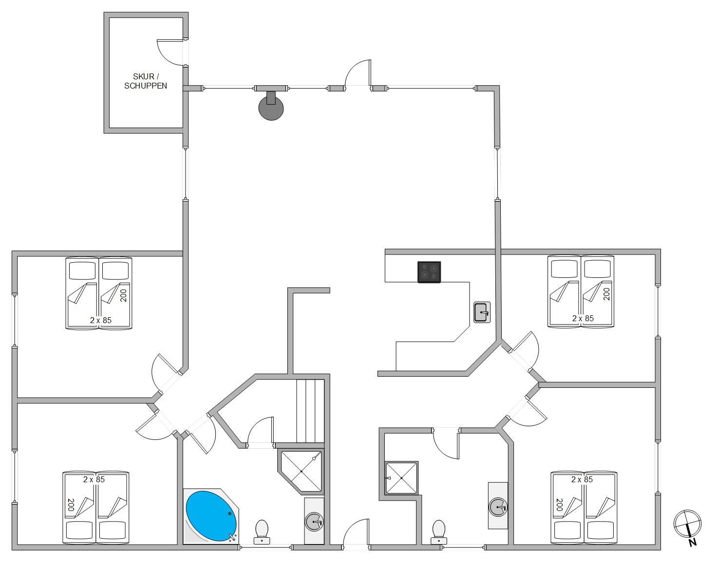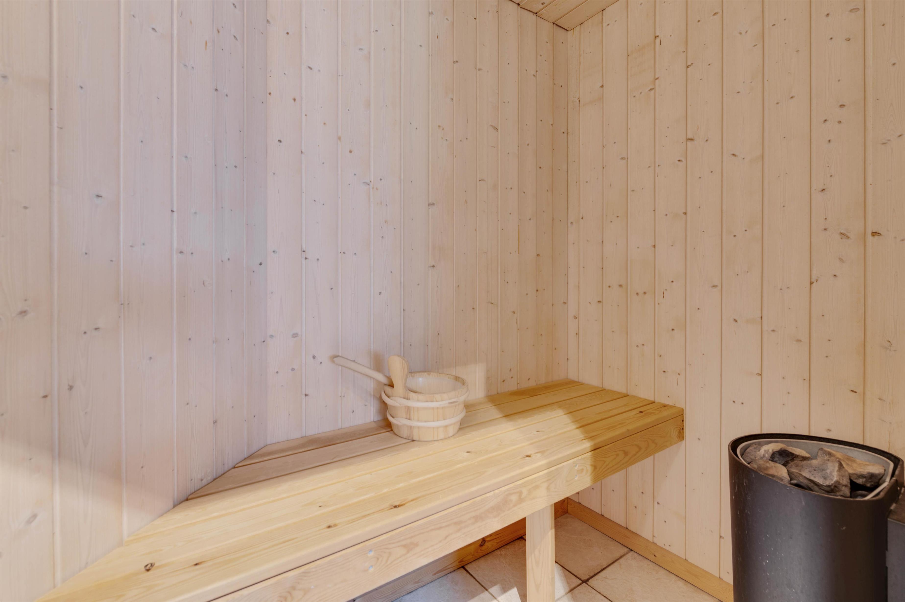 Up to 8 people can be accommodated in the two separate sleeping wings, each with its own bathroom. This makes the holiday home particularly suitable for two families sharing. One of the bathrooms features a whirlpool for two people and a sauna that can accommodate 2-3 people.