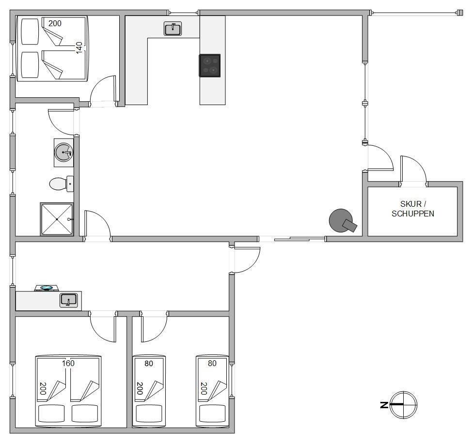 Room temperature can be individually adjusted using the energy-efficient heat pump. This welcoming holiday home features three bedrooms with two double beds and two single beds. It's ideal for a family with children or a group of friends holidaying together.
