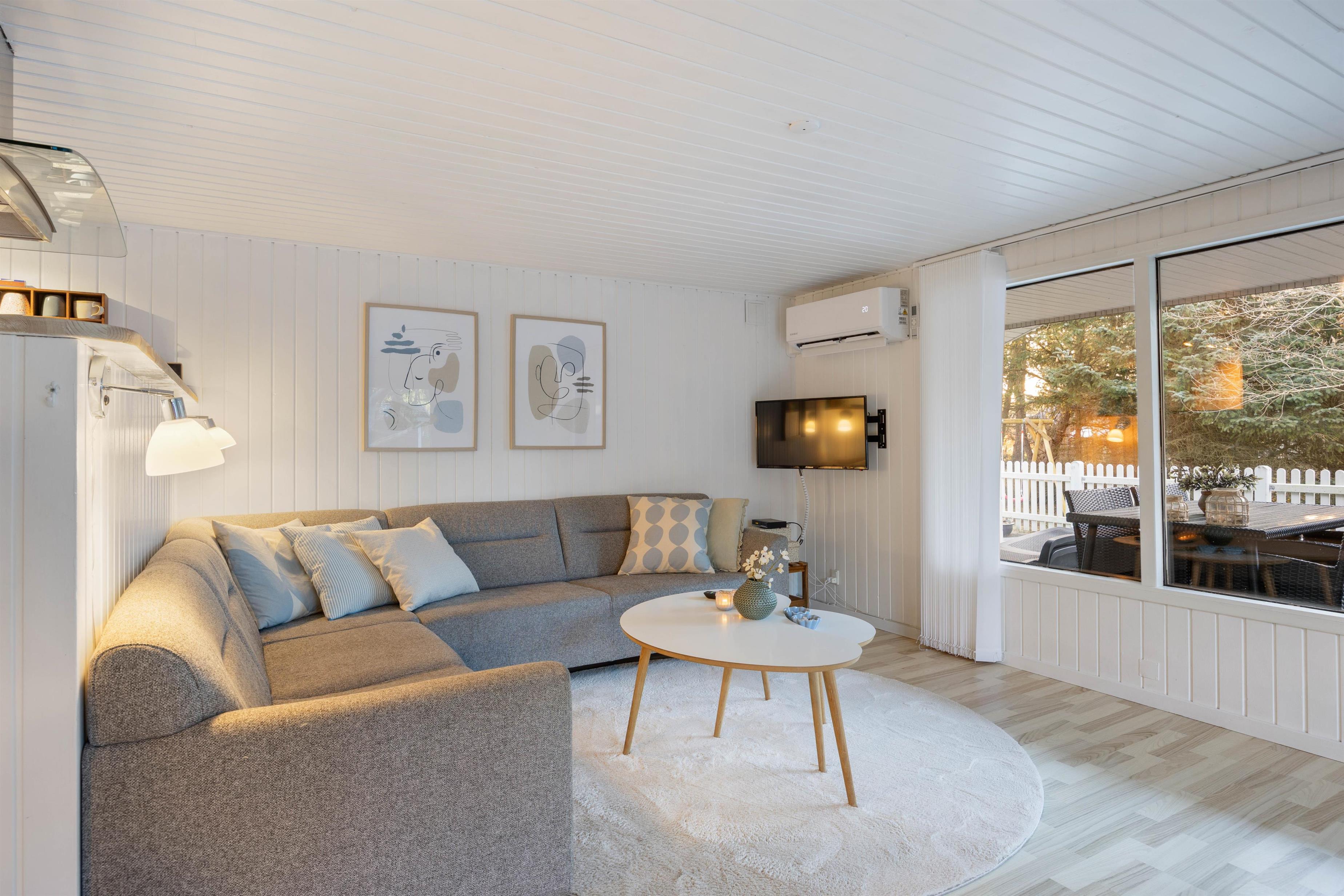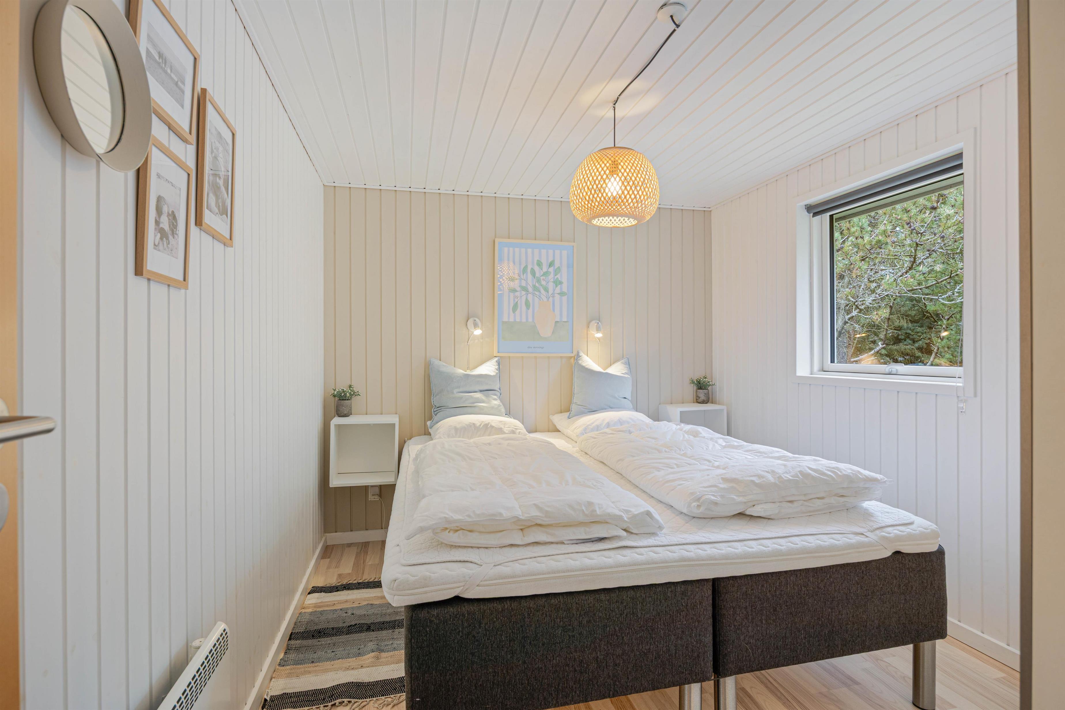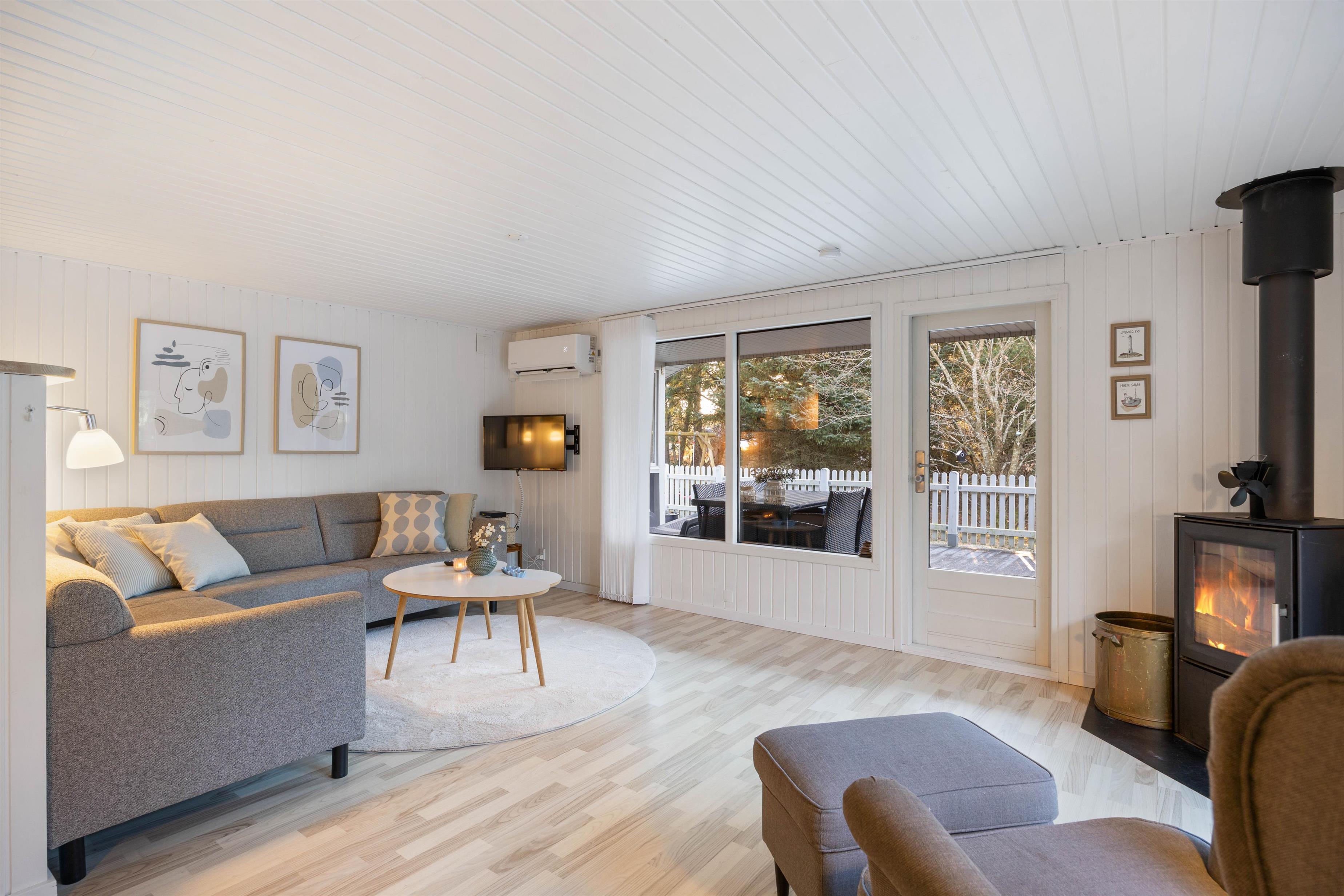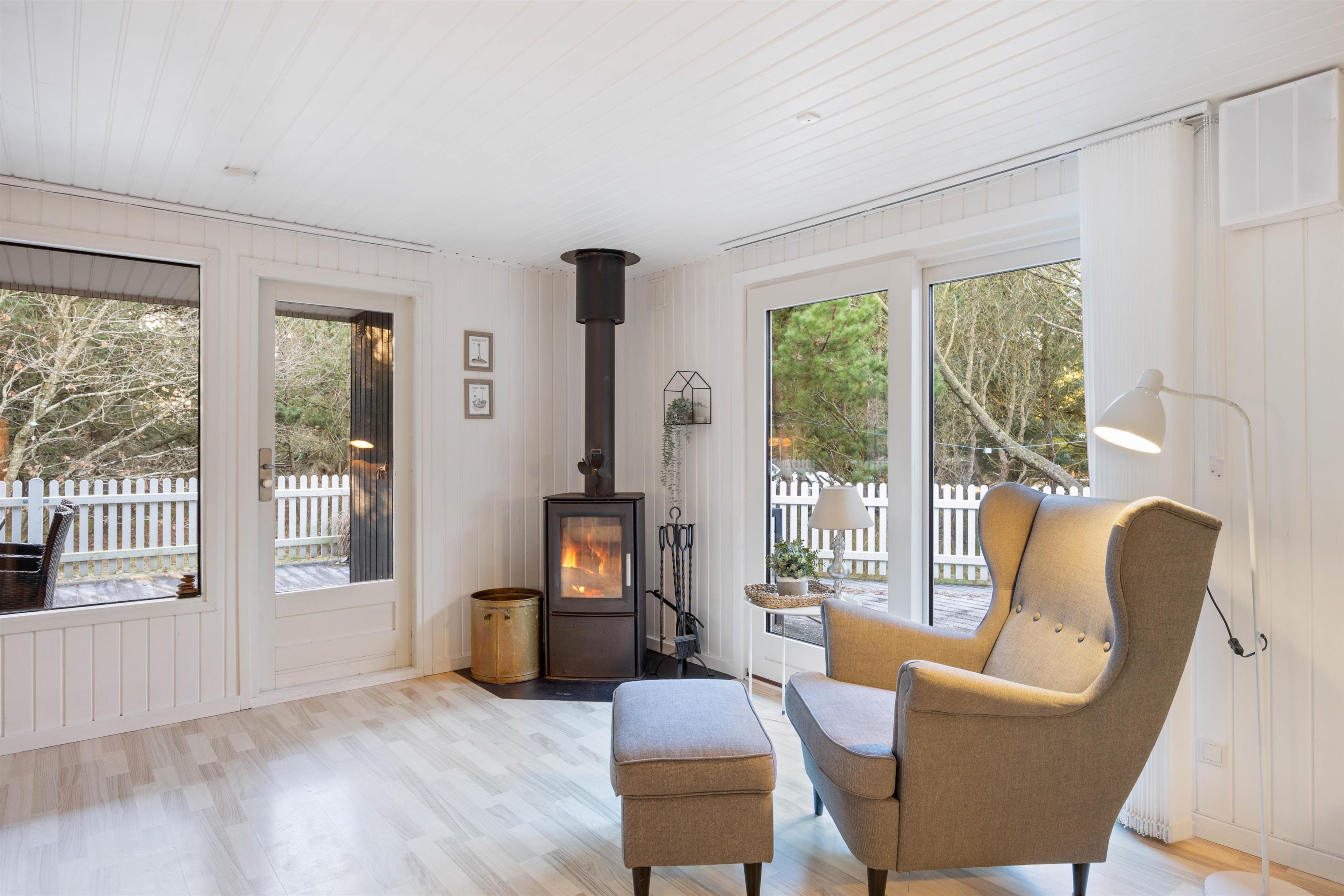 The holiday home is located in Bjerregård, with convenient shopping facilities and plenty of outdoor activities nearby. This comfortable and beautifully renovated holiday home enjoys a wonderfully secluded position on a naturally sheltered plot.