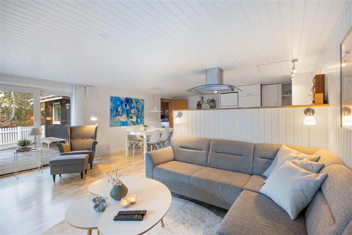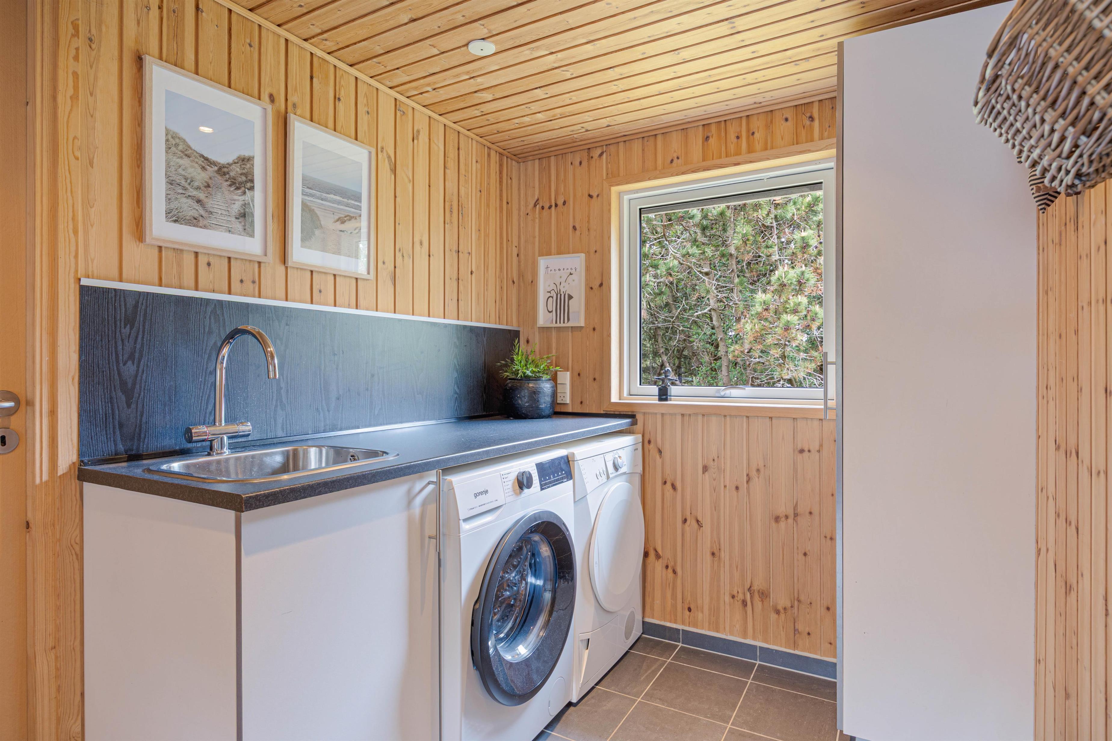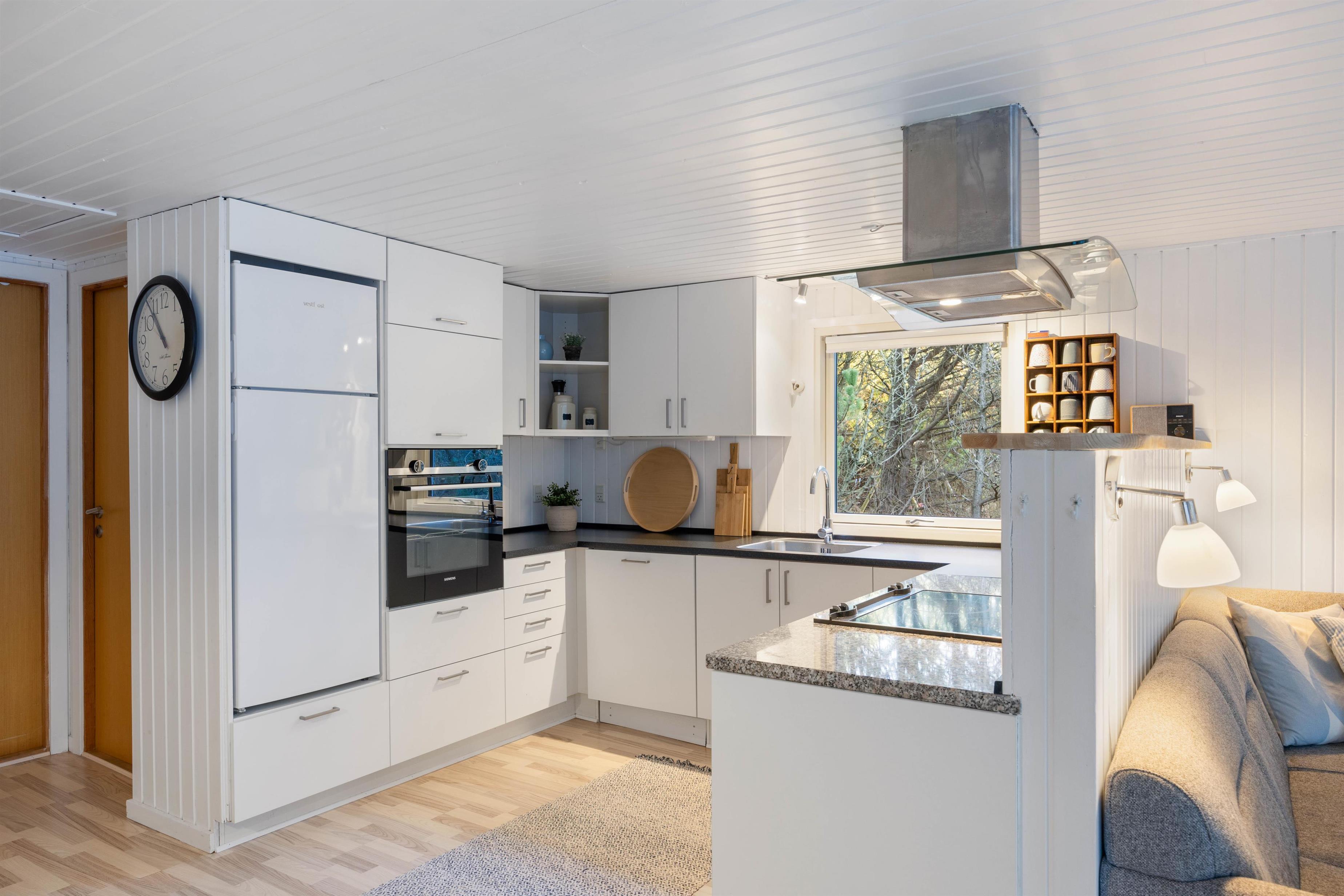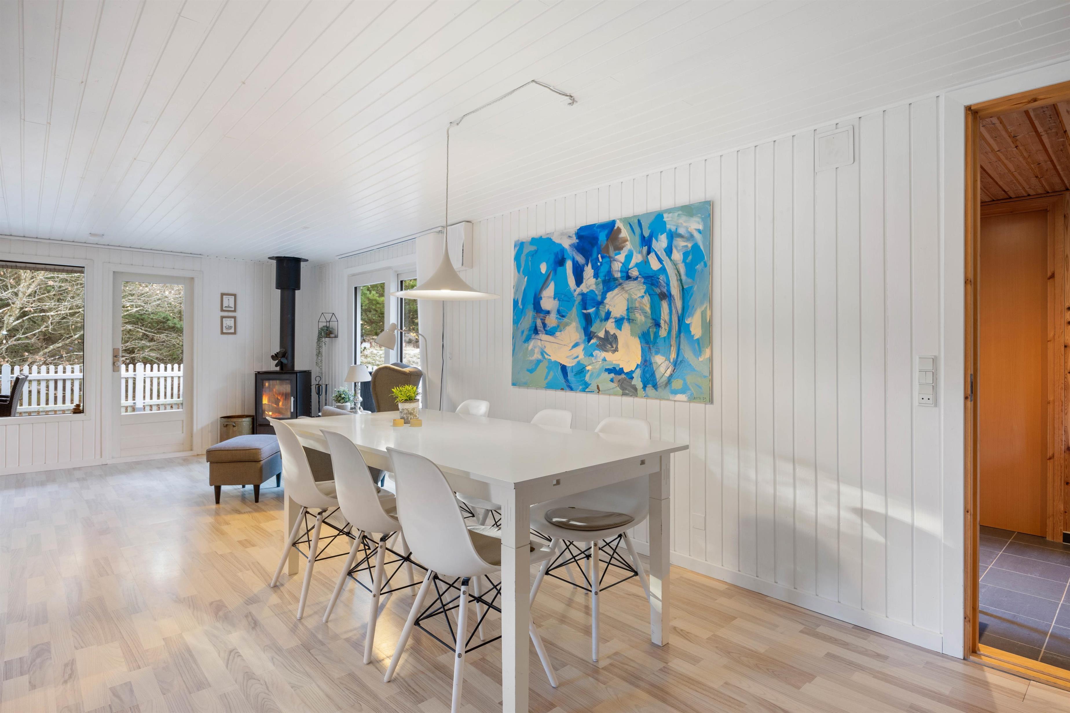 The holiday home is located in Bjerregård, with convenient shopping facilities and plenty of outdoor activities nearby. This comfortable and beautifully renovated holiday home enjoys a wonderfully secluded position on a naturally sheltered plot.