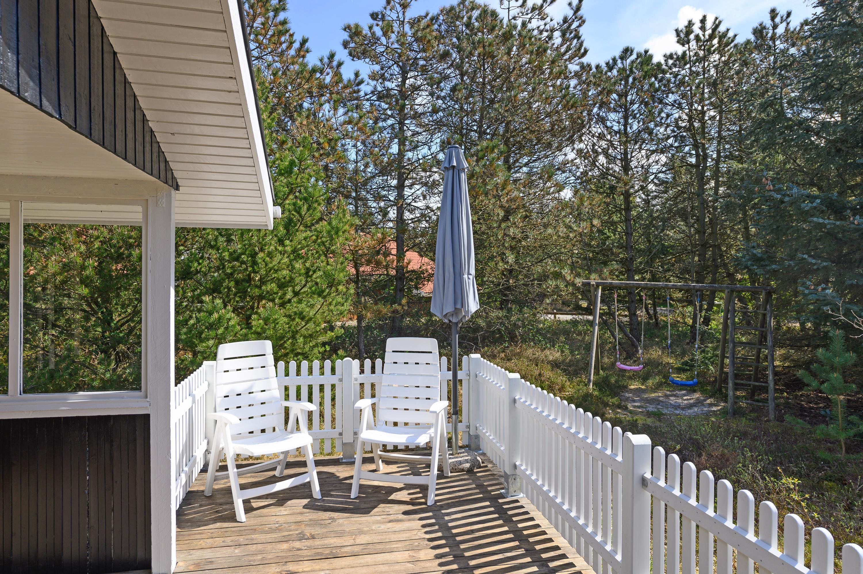 The living room opens onto a large, enclosed wooden terrace. Part of the terrace is covered, offering protection from the elements. Here you can relax in comfortable garden furniture. The outdoor area also includes a swing and sandpit for children. Thanks to the barbecue, you can enjoy sociable evening cookouts to round off your holiday days.
