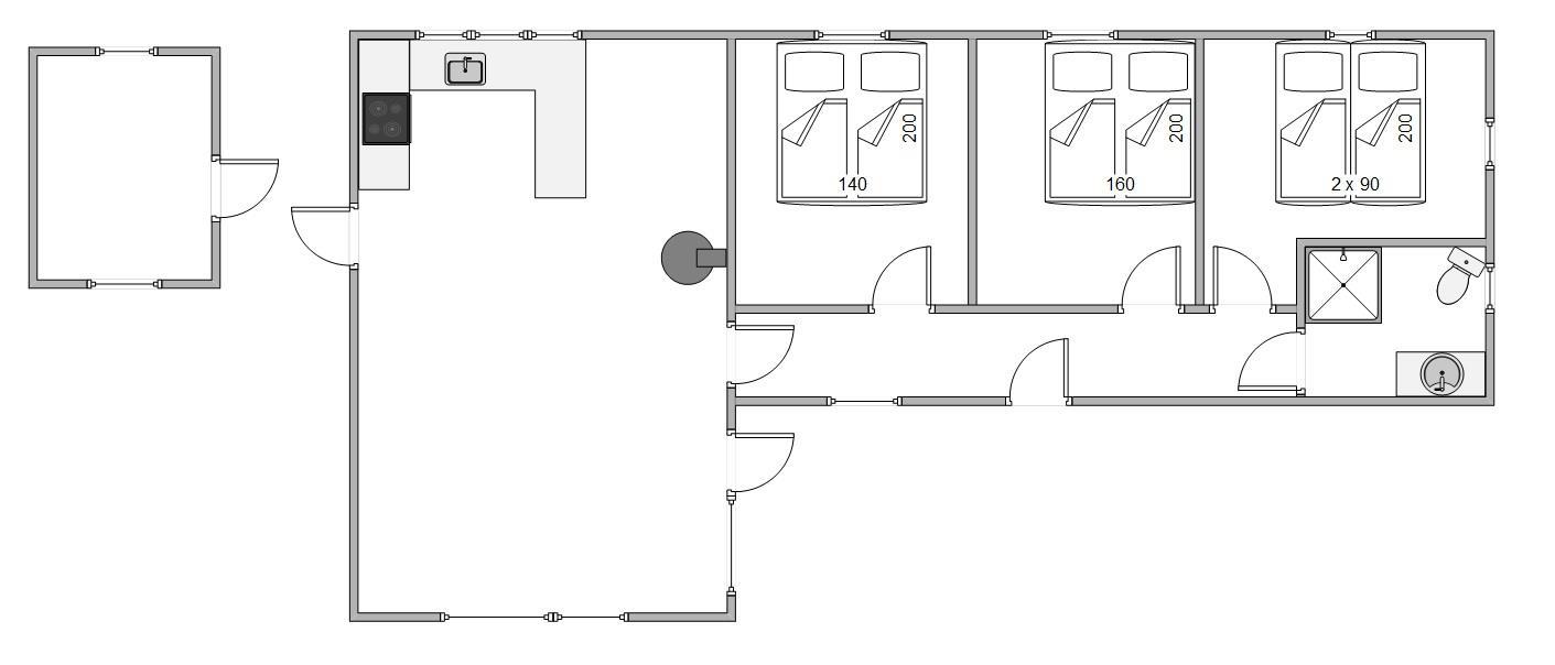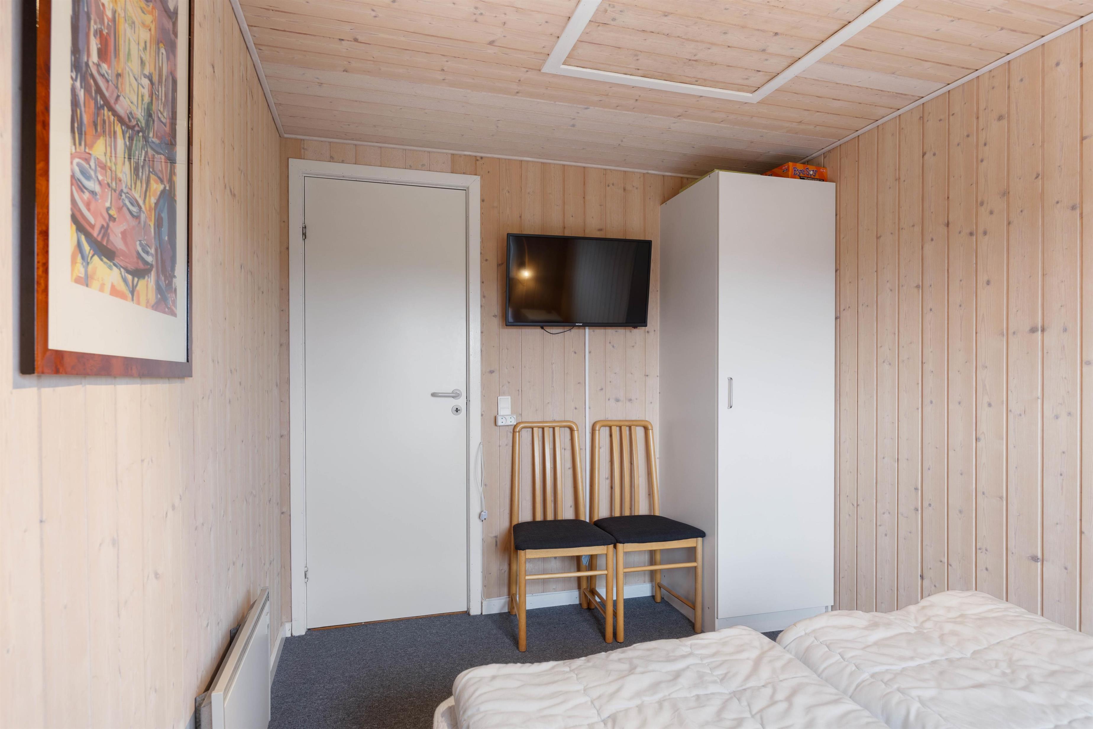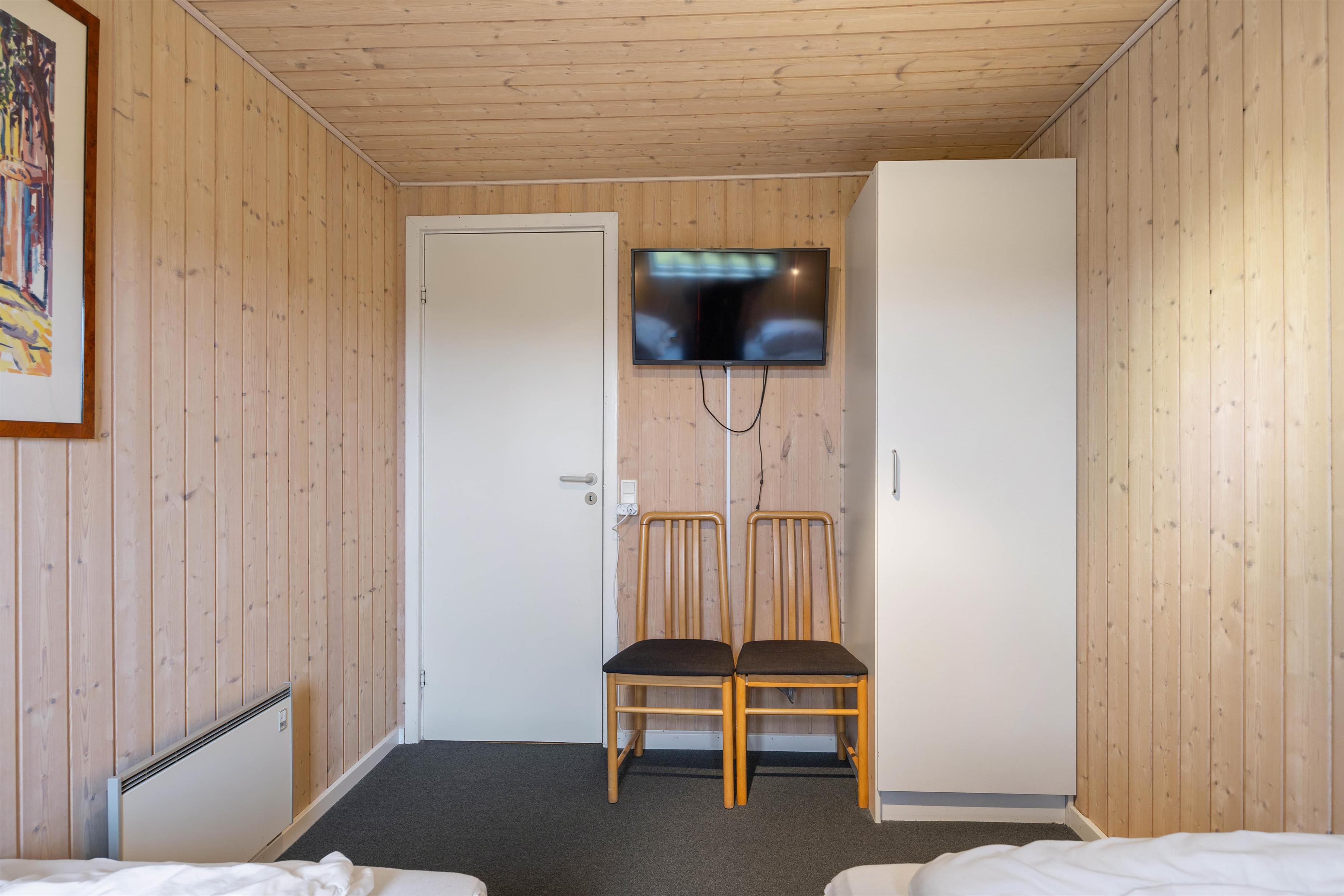 From the living area, a practical hallway leads to the naturally lit bathroom with shower and underfloor heating. You'll also find three cosy bedrooms - one with twin beds and two with comfortable double beds, offering excellent sleeping arrangements. The extension houses an additional TV with PlayStation and a dartboard, perfect for entertaining games nights.