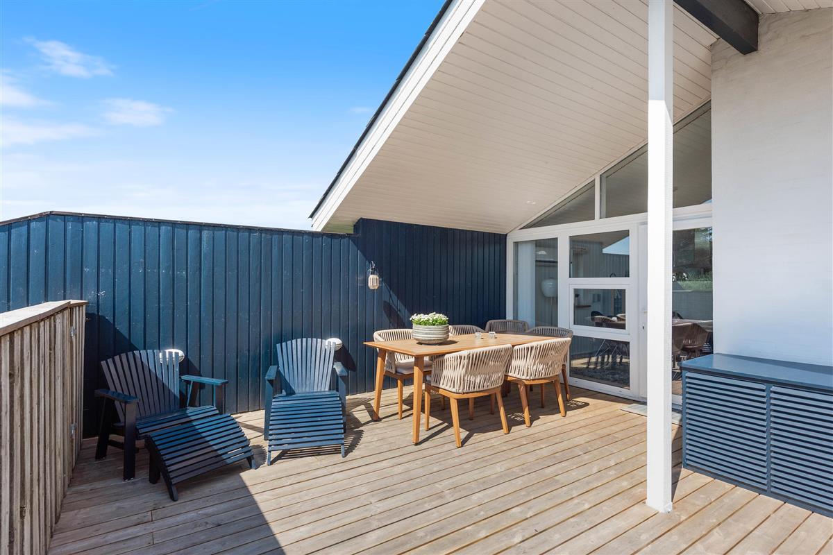Located at Julianevej 20 in the peaceful holiday region of Bjerregård, this light-filled holiday home features your own wellness suite and accommodates up to 6 people. The whole family will feel at home here. The enclosed terrace allows your little ones to run around safely, as they can't explore the beautiful surroundings without you.