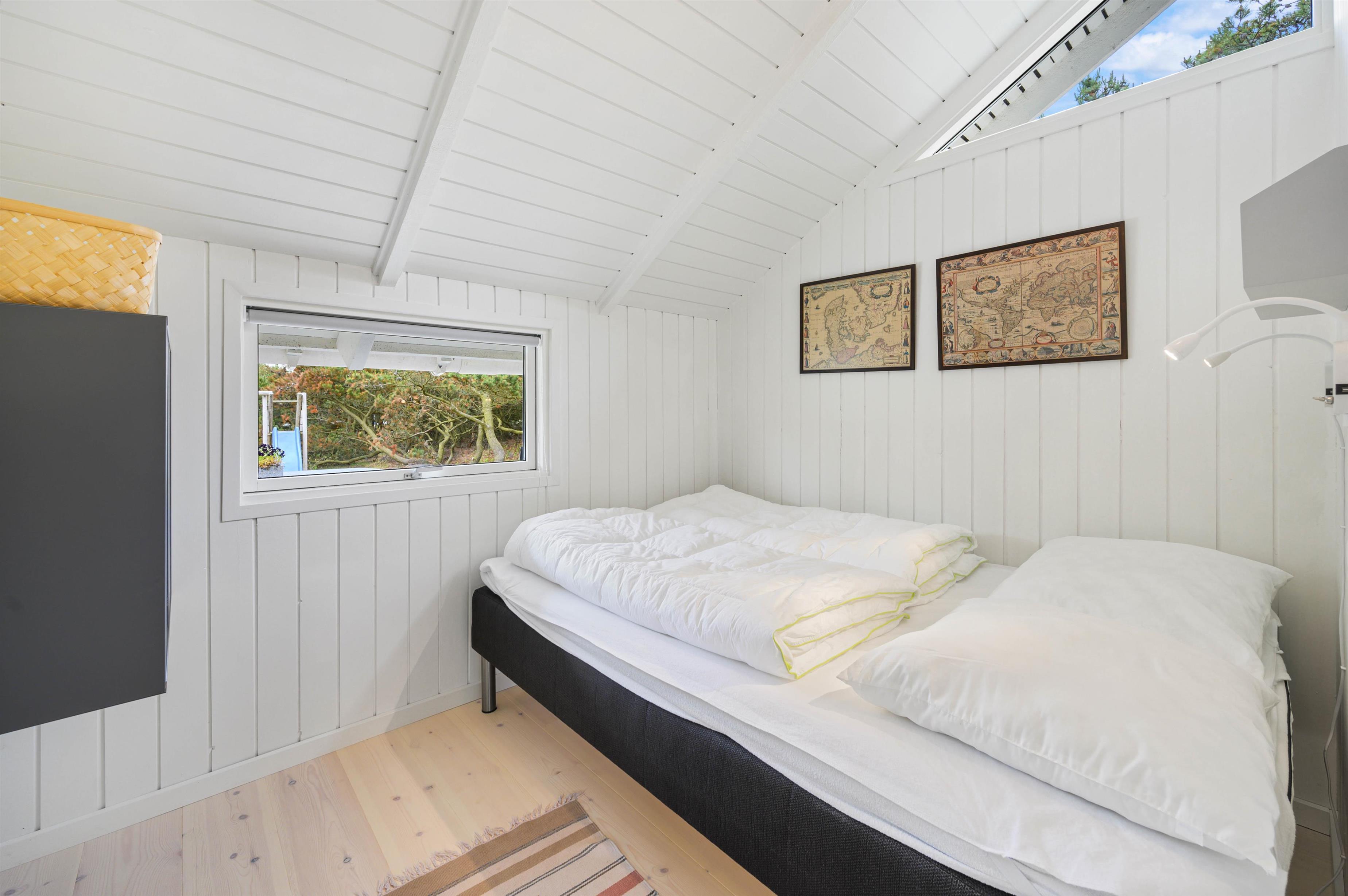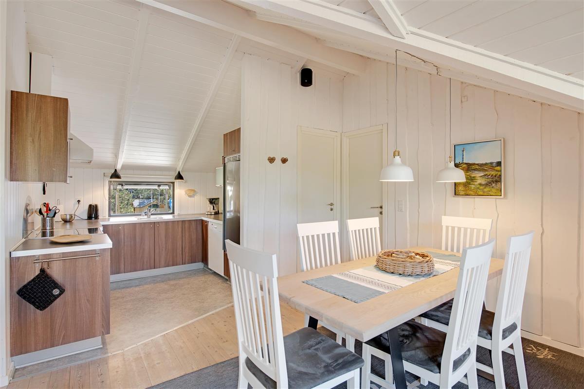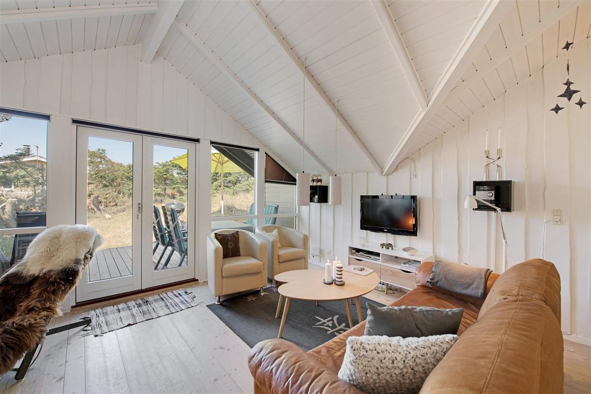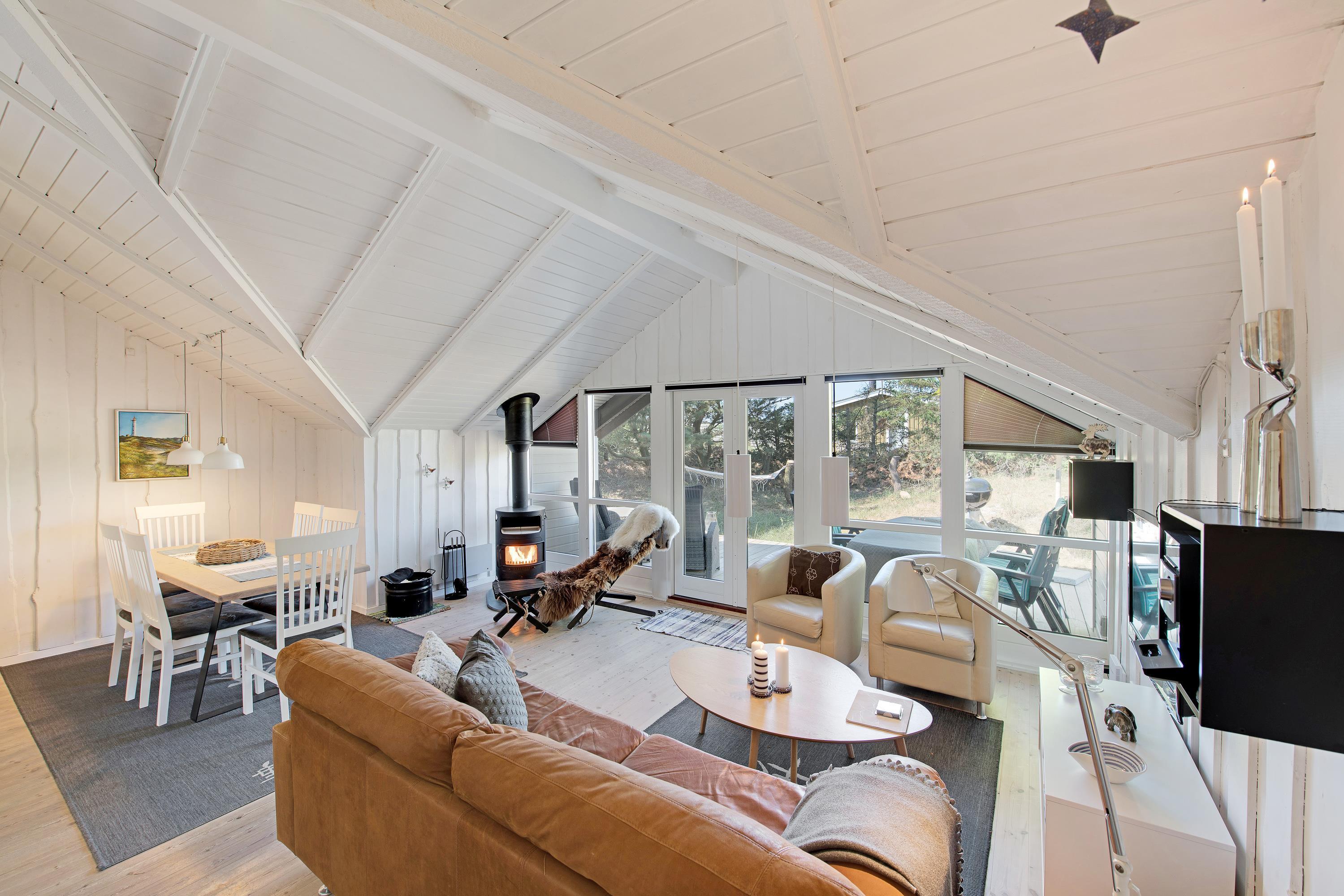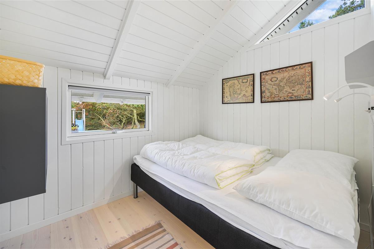 On Bjerregårdsvej 228, you’ll find this lovely and cosy holiday home with sauna and spa. The house is set on a hilly natural plot, surrounded by trees, and can accommodate up to 6 people. The interior is bright and inviting, and the house is equipped with a washing machine, tumble dryer, and dishwasher, among other conveniences.
