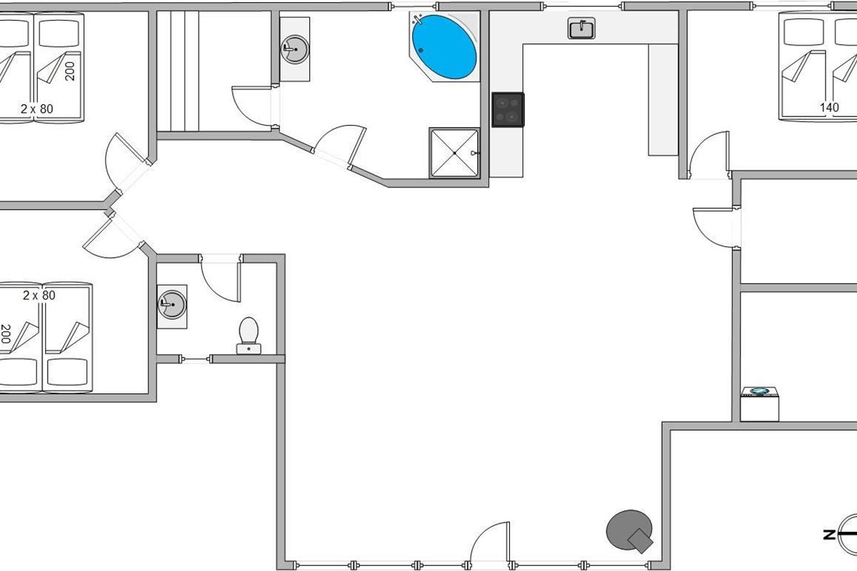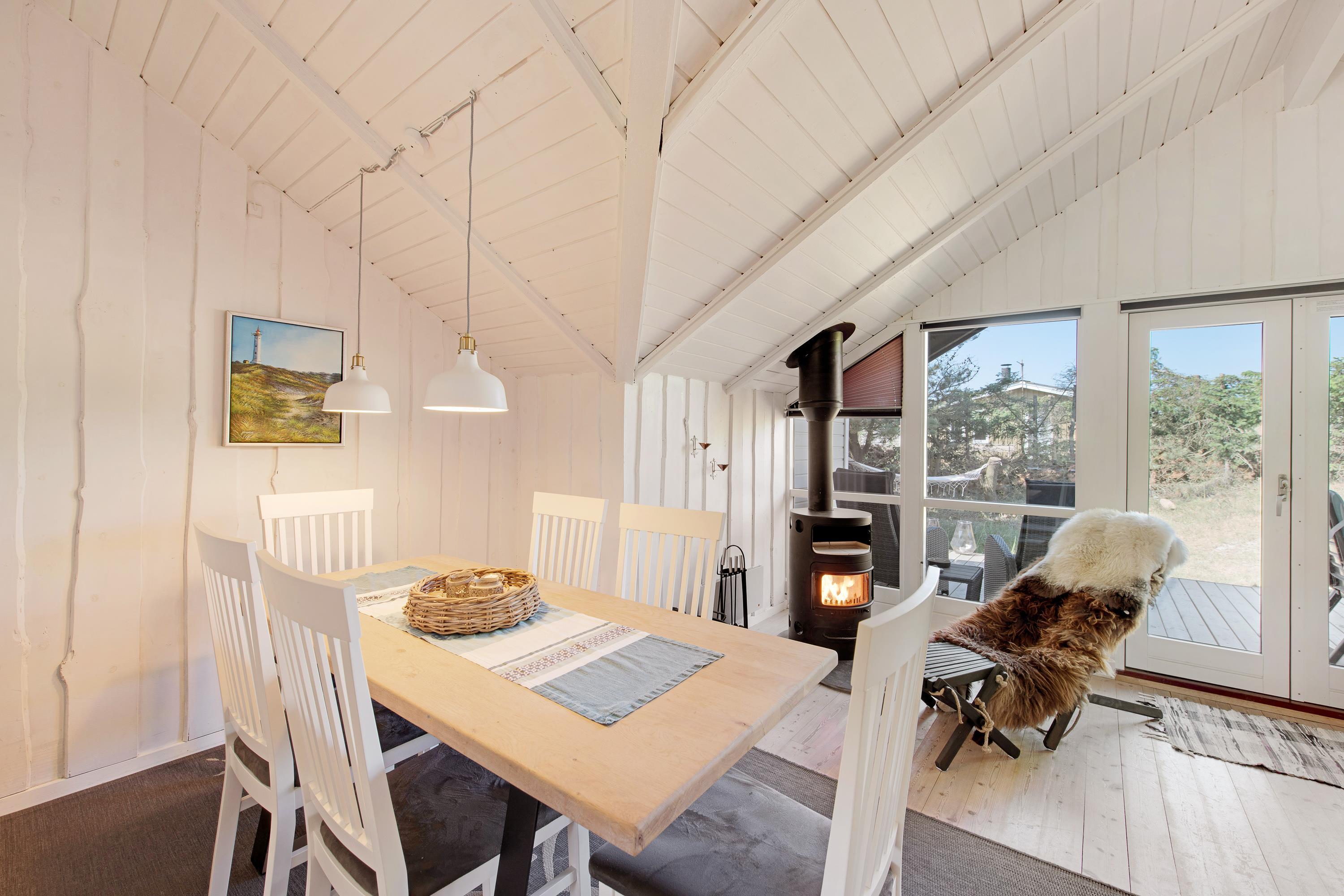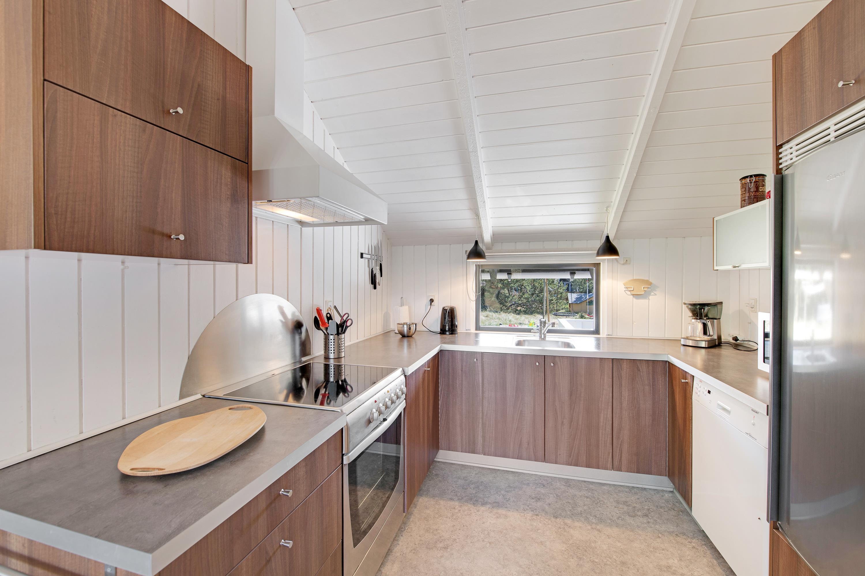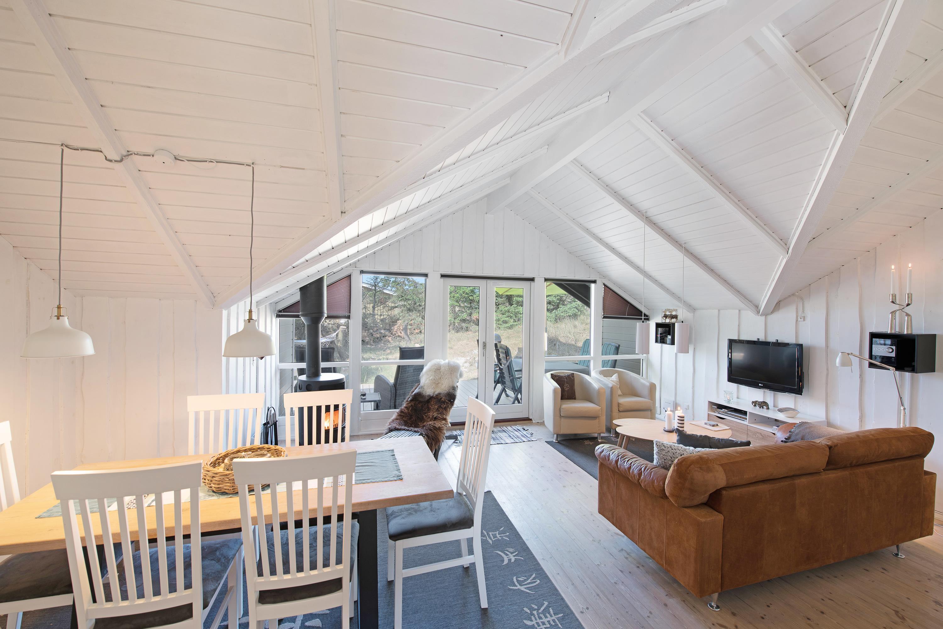 On Bjerregårdsvej 228, you’ll find this lovely and cosy holiday home with sauna and spa. The house is set on a hilly natural plot, surrounded by trees, and can accommodate up to 6 people. The interior is bright and inviting, and the house is equipped with a washing machine, tumble dryer, and dishwasher, among other conveniences.
