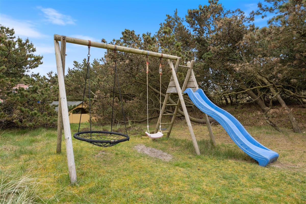 The house includes a large wooden terrace that wraps around 3 sides of the property. Part of the terrace is sheltered and covered – ideal for sitting outside on windier days or enjoying the shade. Various garden furniture invites you to soak up the sun in the morning, afternoon, and evening. For cosy moments, there is also a barbecue – perfect for warm summer evenings in the fresh sea air. The youngest family members will also be delighted, as the garden includes swings and a sandbox, ensuring fun and play outdoors. This holiday home, with its wonderful location, is perfect for a relaxing family holiday where comfort and nature go hand in hand.