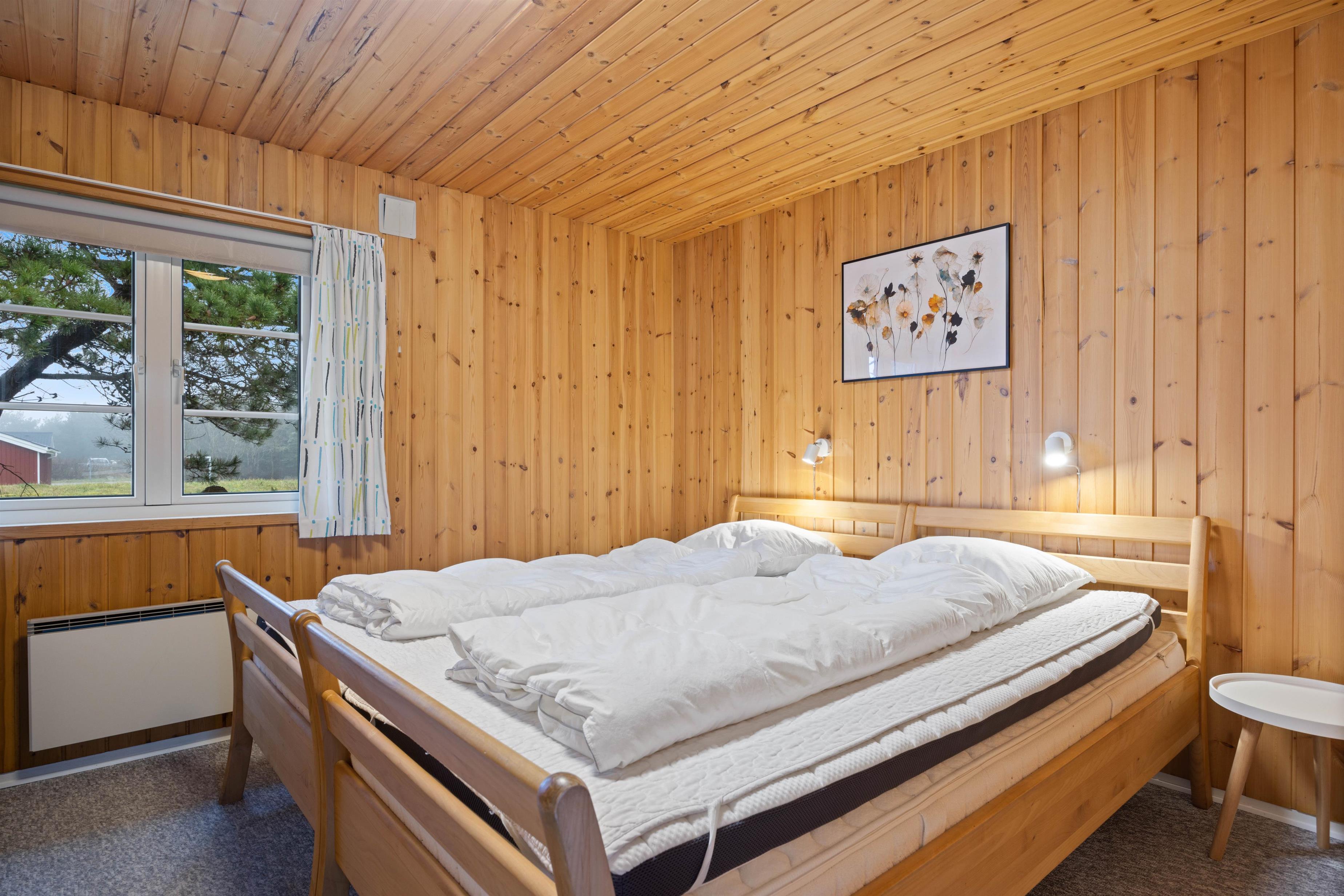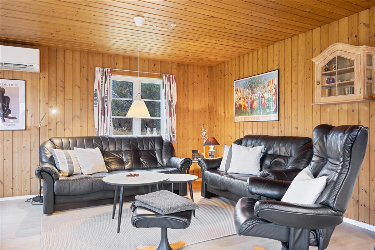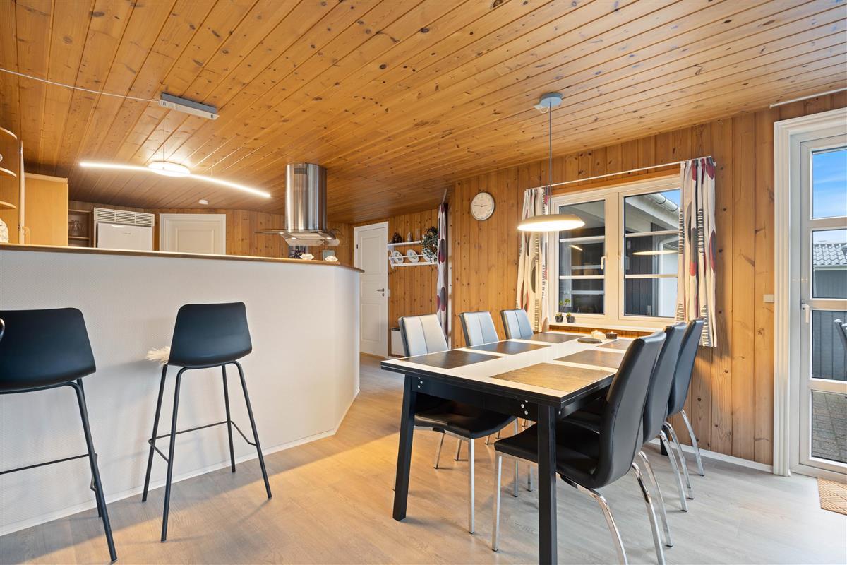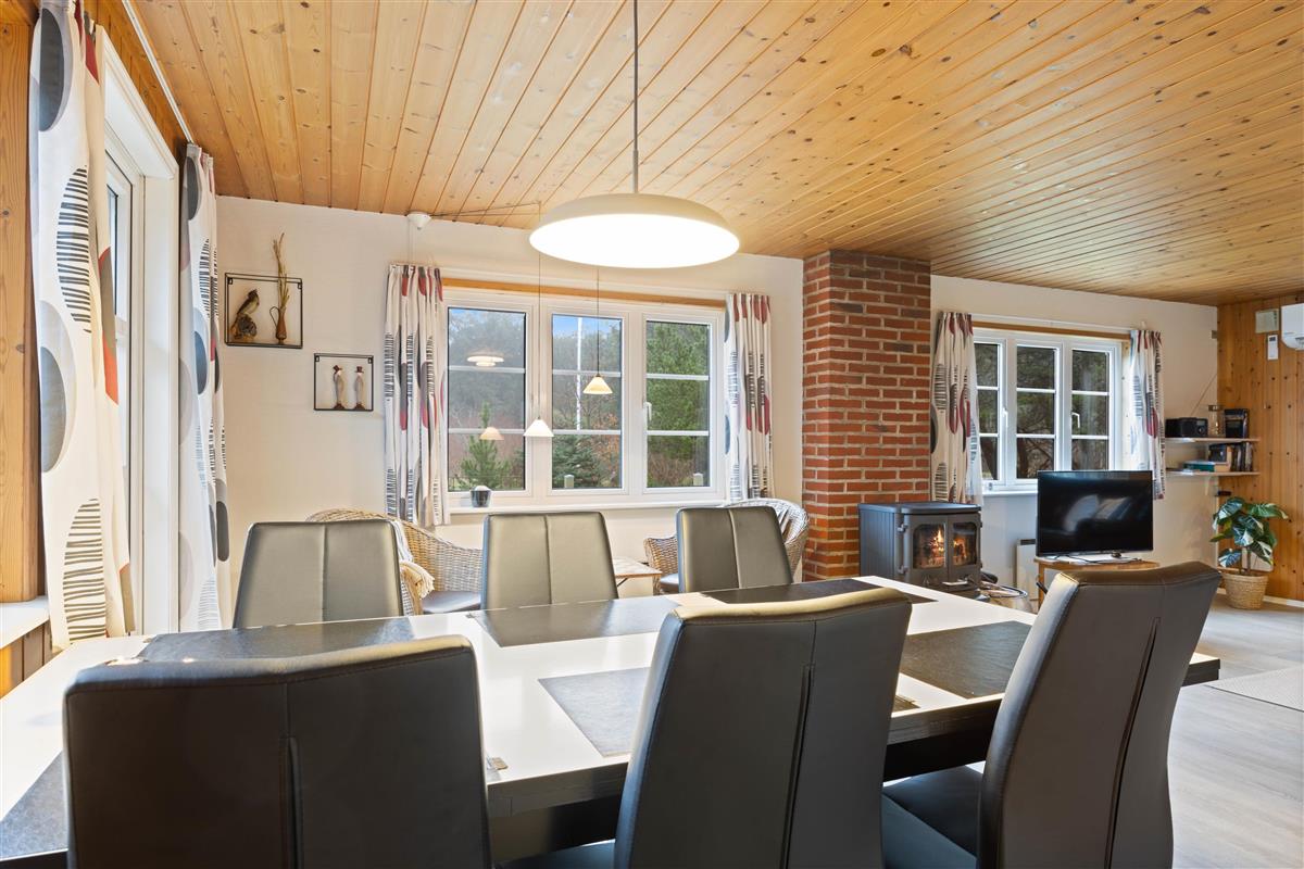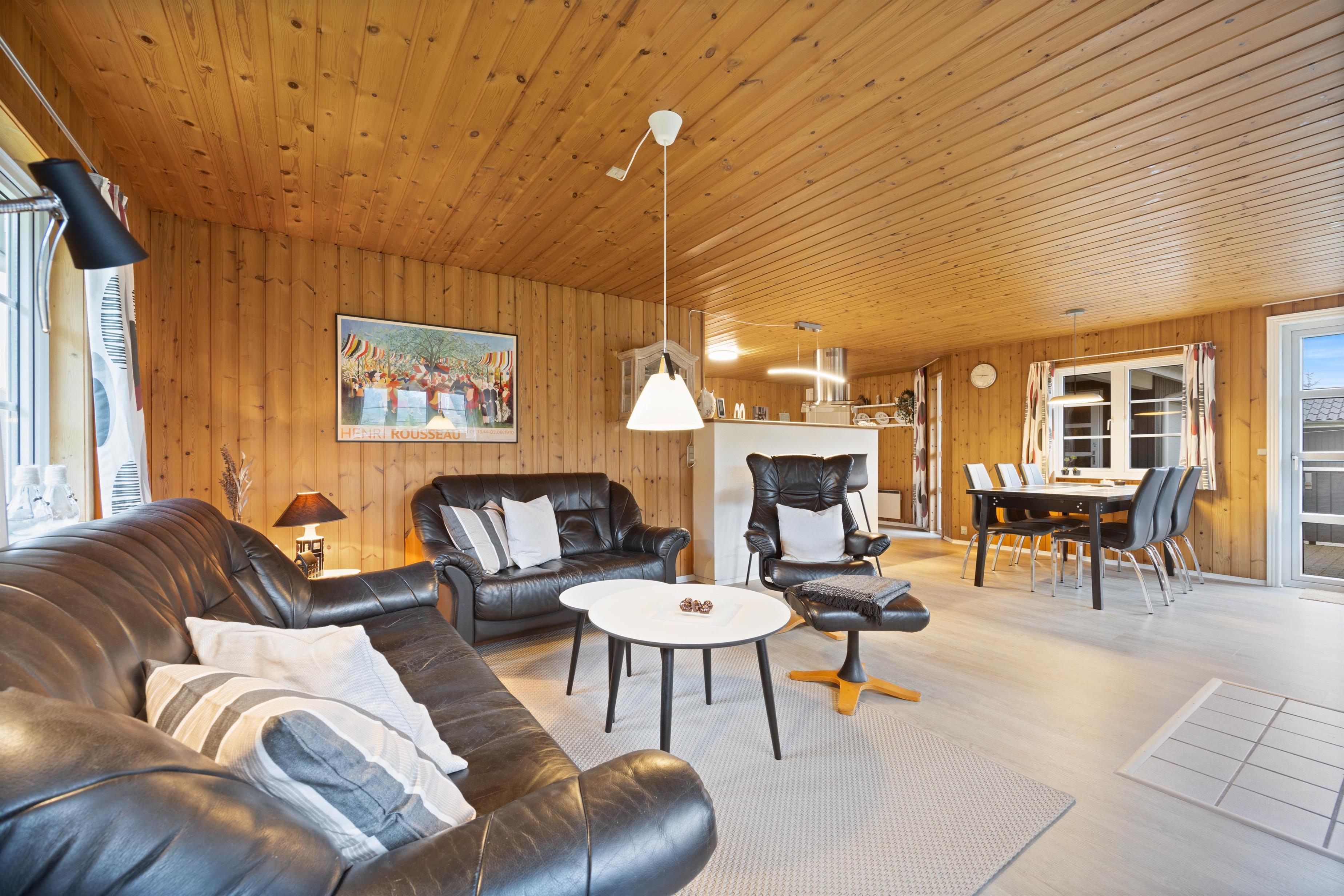 This charming holiday home features traditional Danish summer house furnishings, with wooden ceilings and walls lending warmth to the spacious living area. The practical and well-equipped kitchen forms the heart of the holiday home and opens onto the living and dining area. The fireplace provides cosy warmth and sets the scene for relaxing evenings.