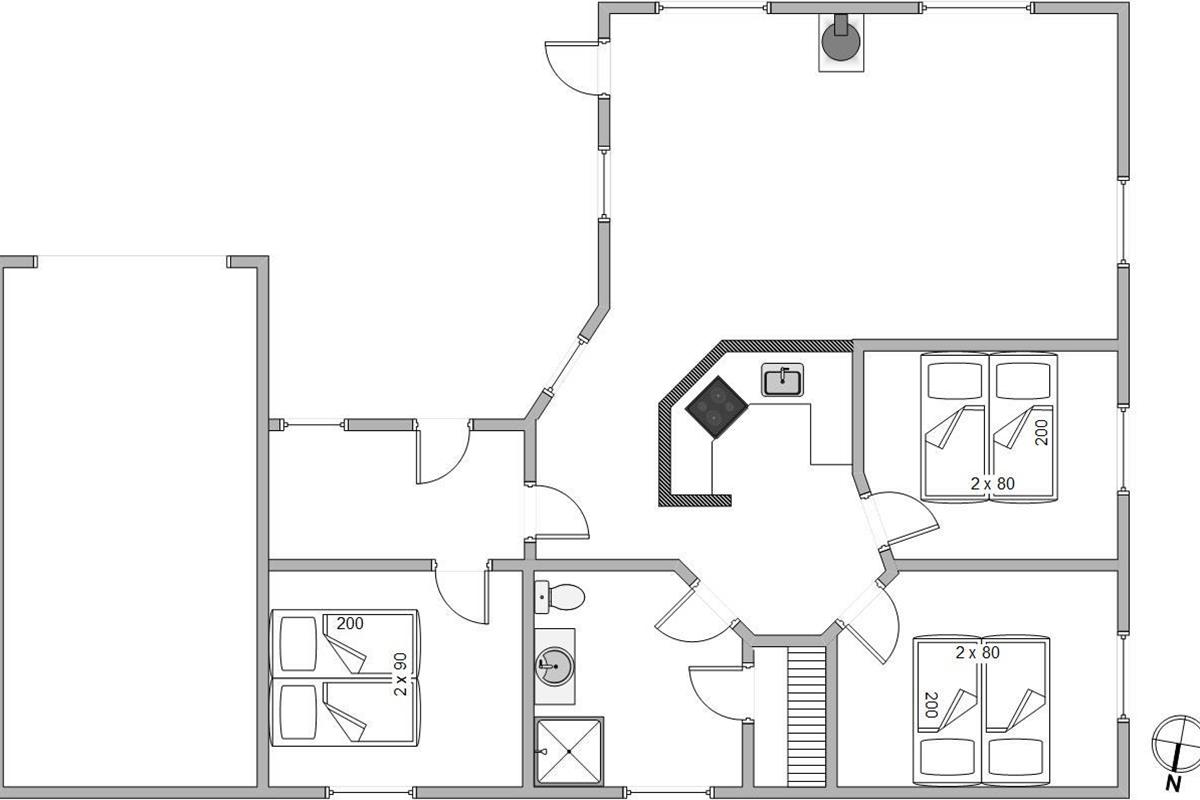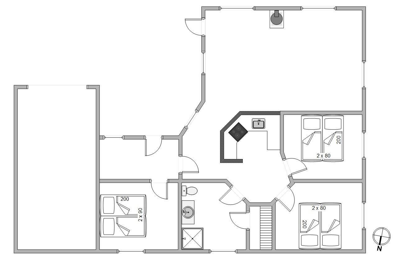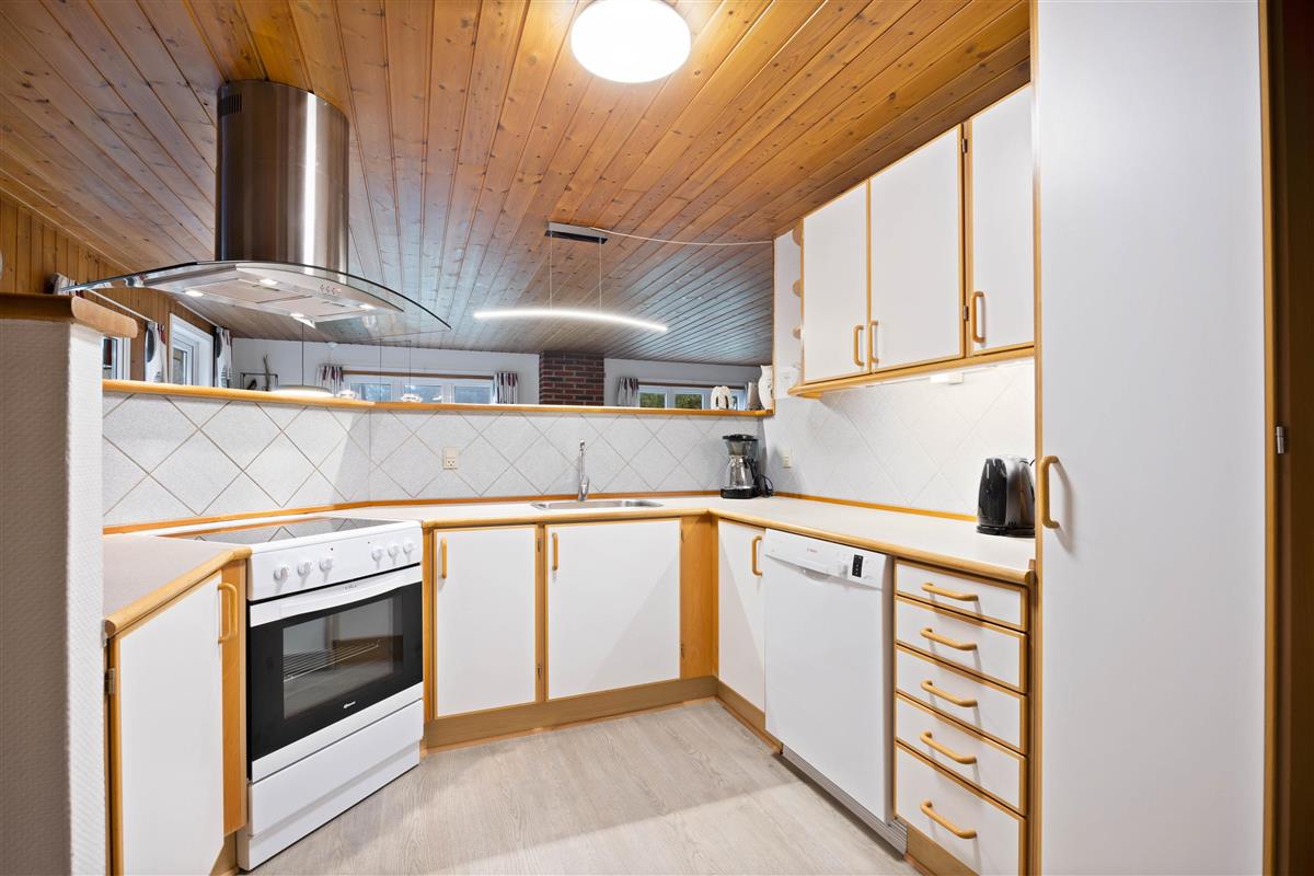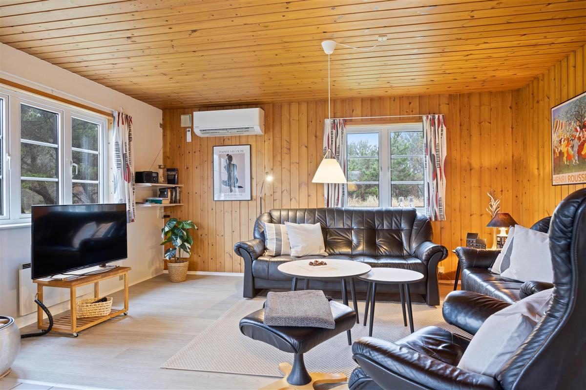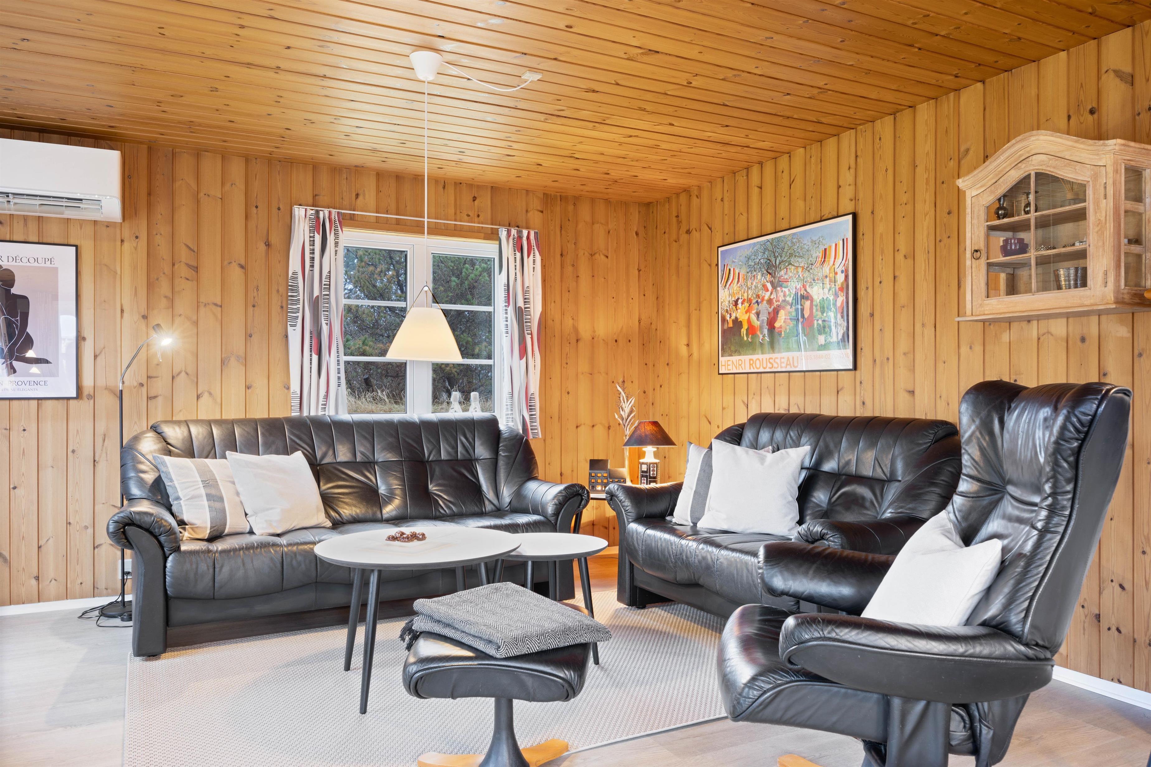 This charming holiday home features traditional Danish summer house furnishings, with wooden ceilings and walls lending warmth to the spacious living area. The practical and well-equipped kitchen forms the heart of the holiday home and opens onto the living and dining area. The fireplace provides cosy warmth and sets the scene for relaxing evenings.