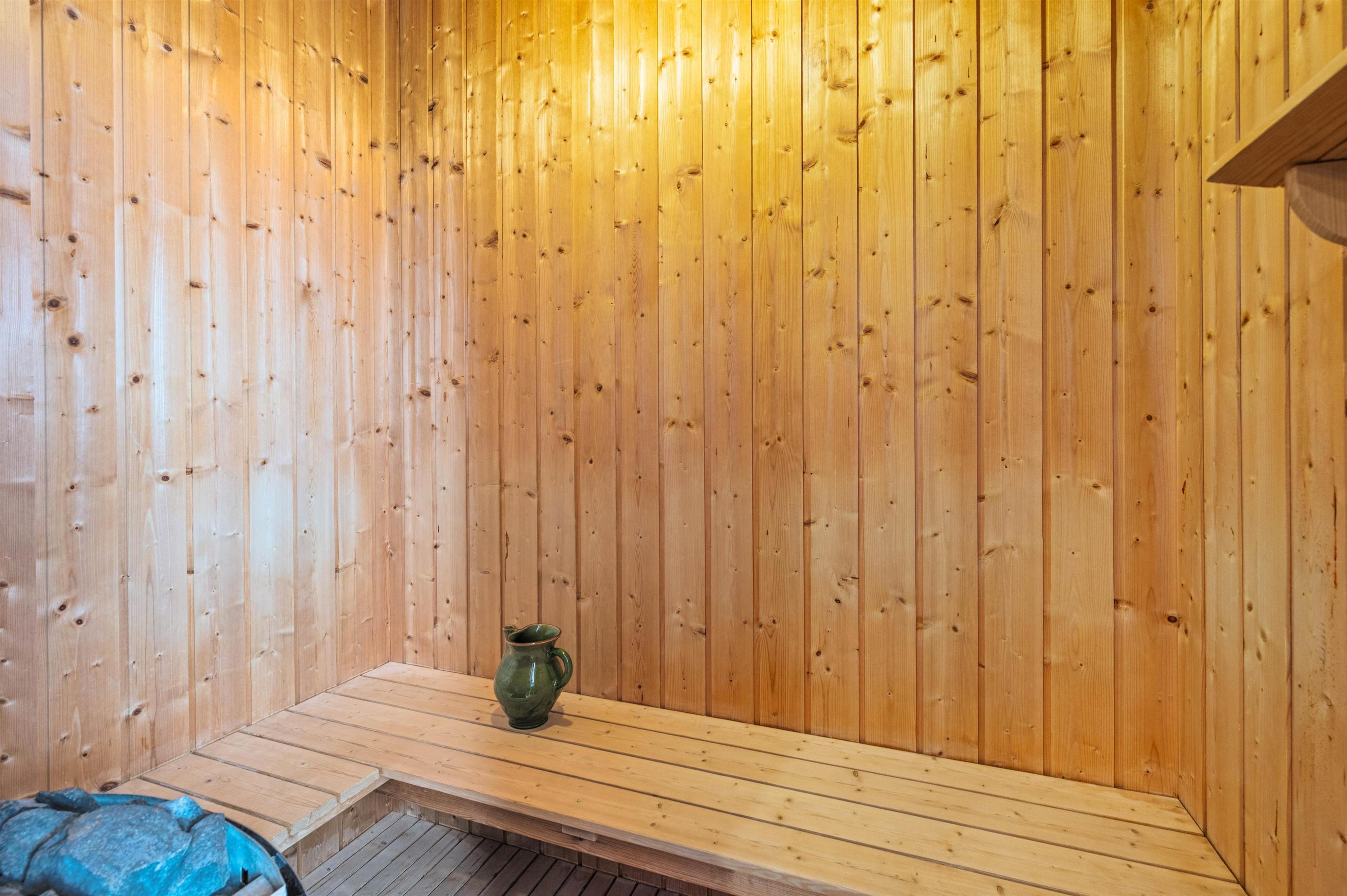 The large bathroom features marble tiles, underfloor heating and sauna access, perfect for relaxing wellness evenings. The fantastic kitchen, which opens onto the living room, comes equipped with all standard appliances including a dishwasher. The cosy living room is furnished with beautiful, comfortable furniture and a large flat-screen TV. Here you can relax by the wood-burning stove. The kitchen and living room feature pine flooring. You can also heat the holiday home using the energy-efficient heat pump.