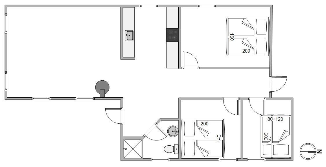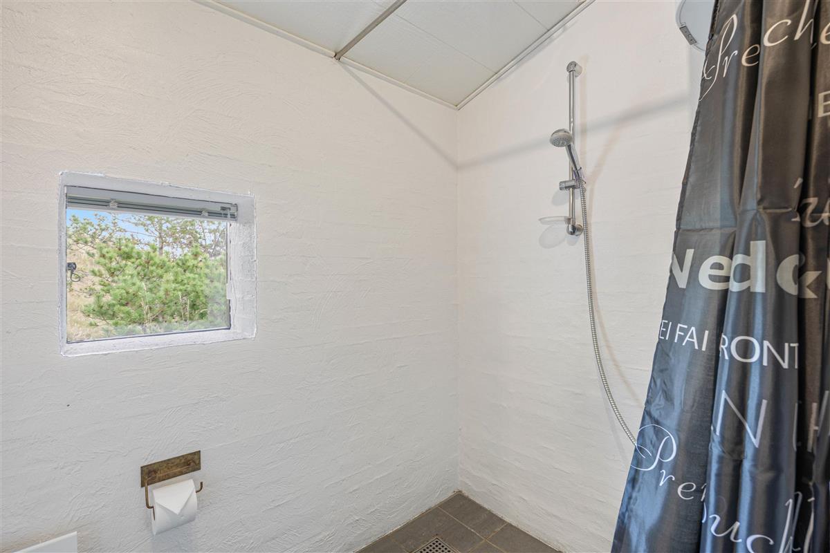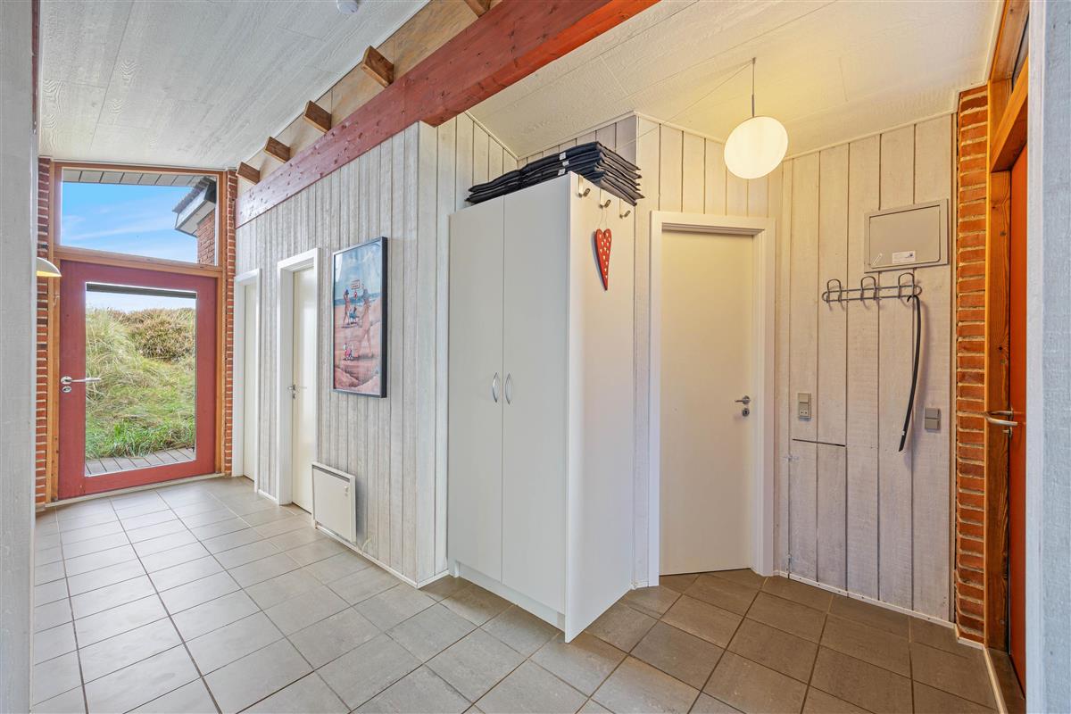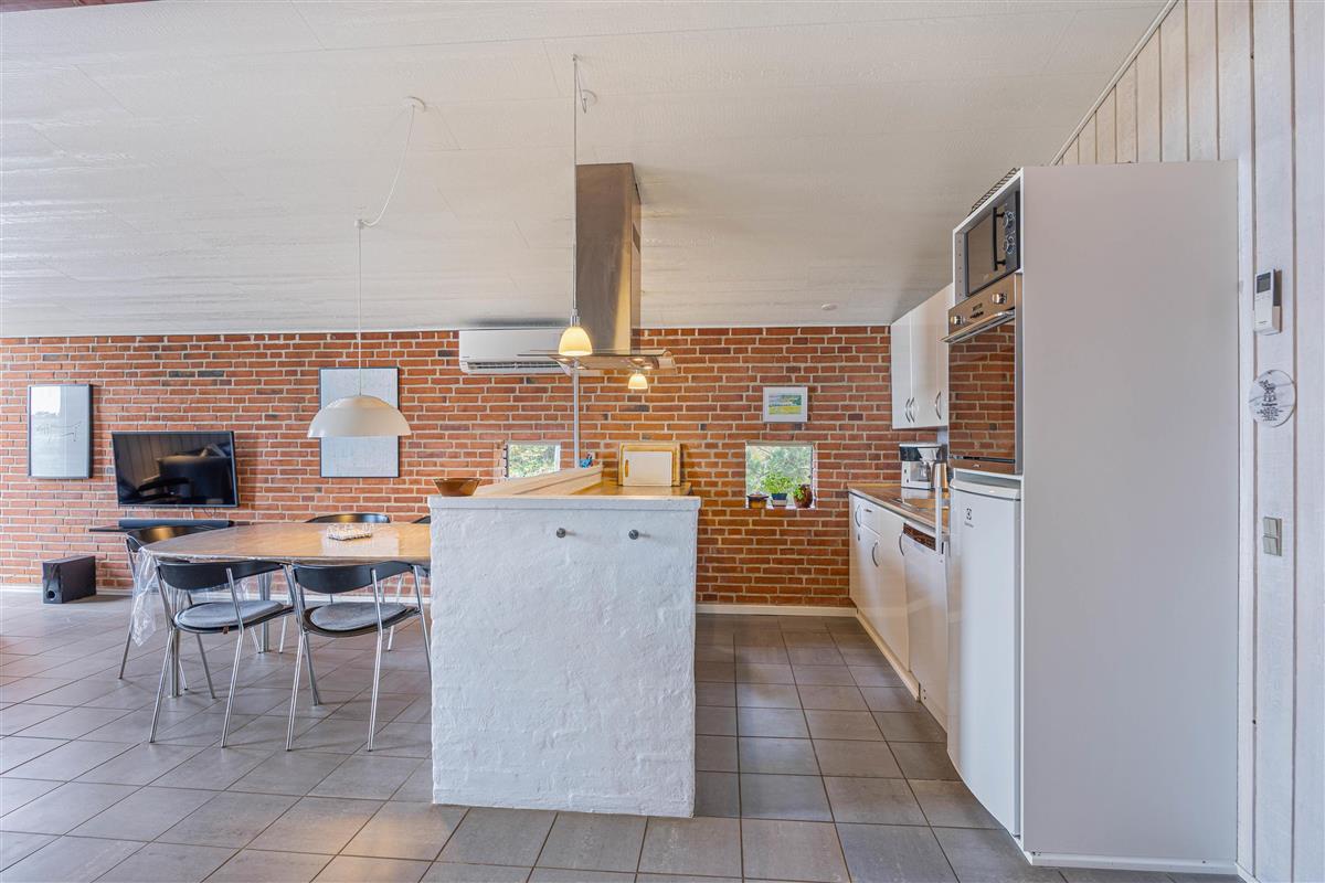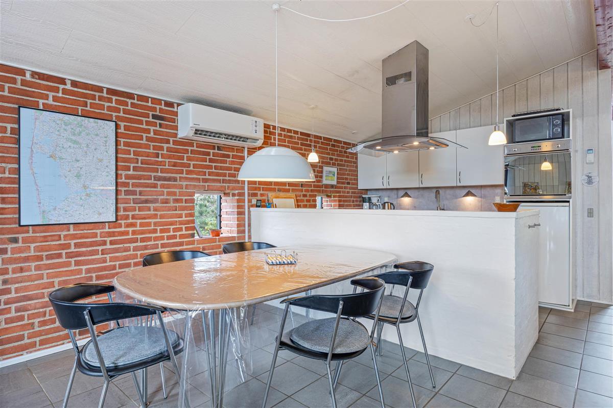 The holiday home at Bjerregårdsvej 184 is practically and comfortably equipped with a dishwasher, washing machine and classic wood-burning stove in the living room. The flooring and some walls feature red brick tiles, giving the house a cosy and rustic feel.