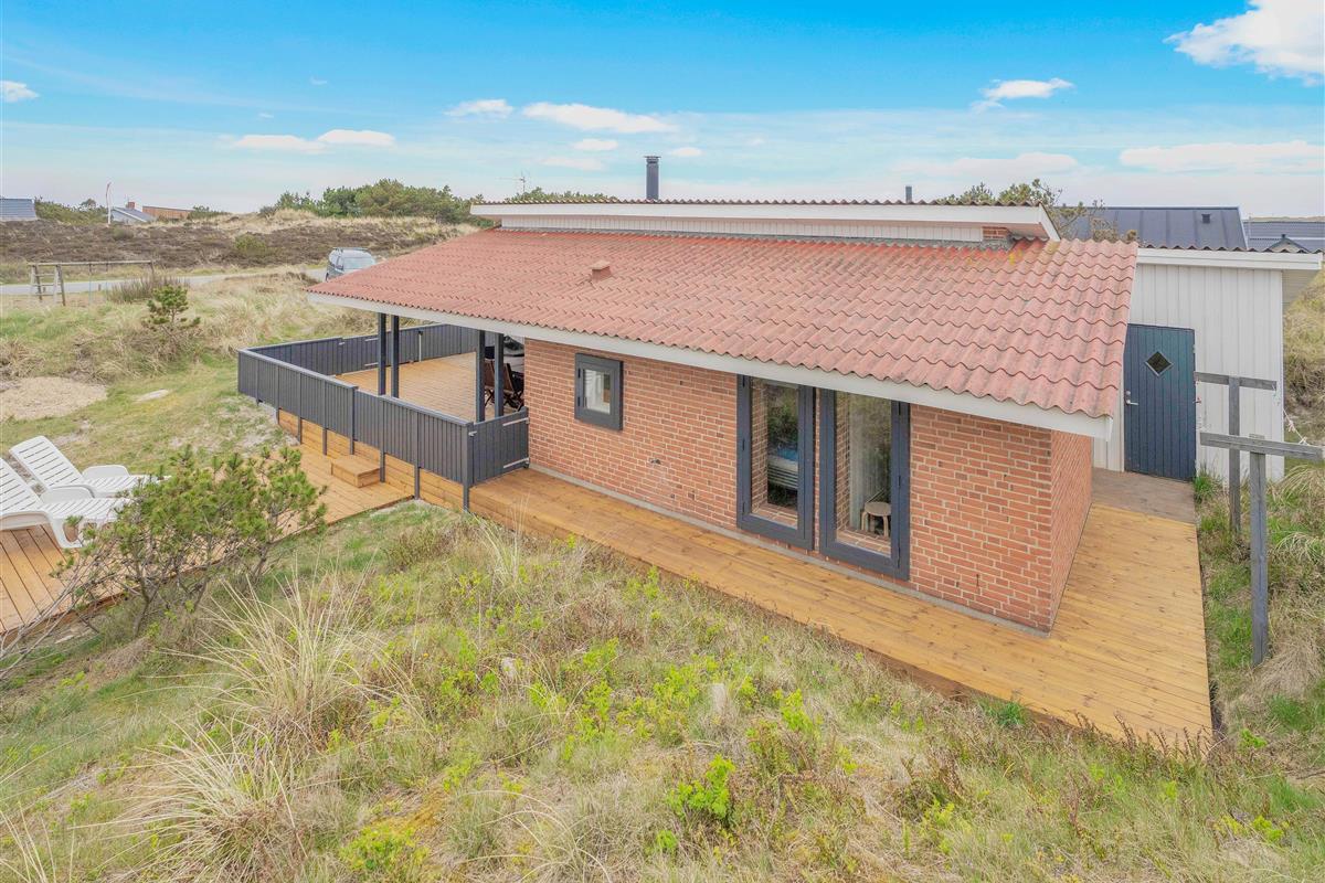 Located on the edge of a popular holiday region on Holmsland Klit, this holiday home, renovated in 2020, sits just 600 metres from the impressive dunes and beach. The 77-square-metre holiday home comfortably accommodates a family of up to 6 people and 1 dog, perfect for enjoying beautiful days on Denmark's west coast.