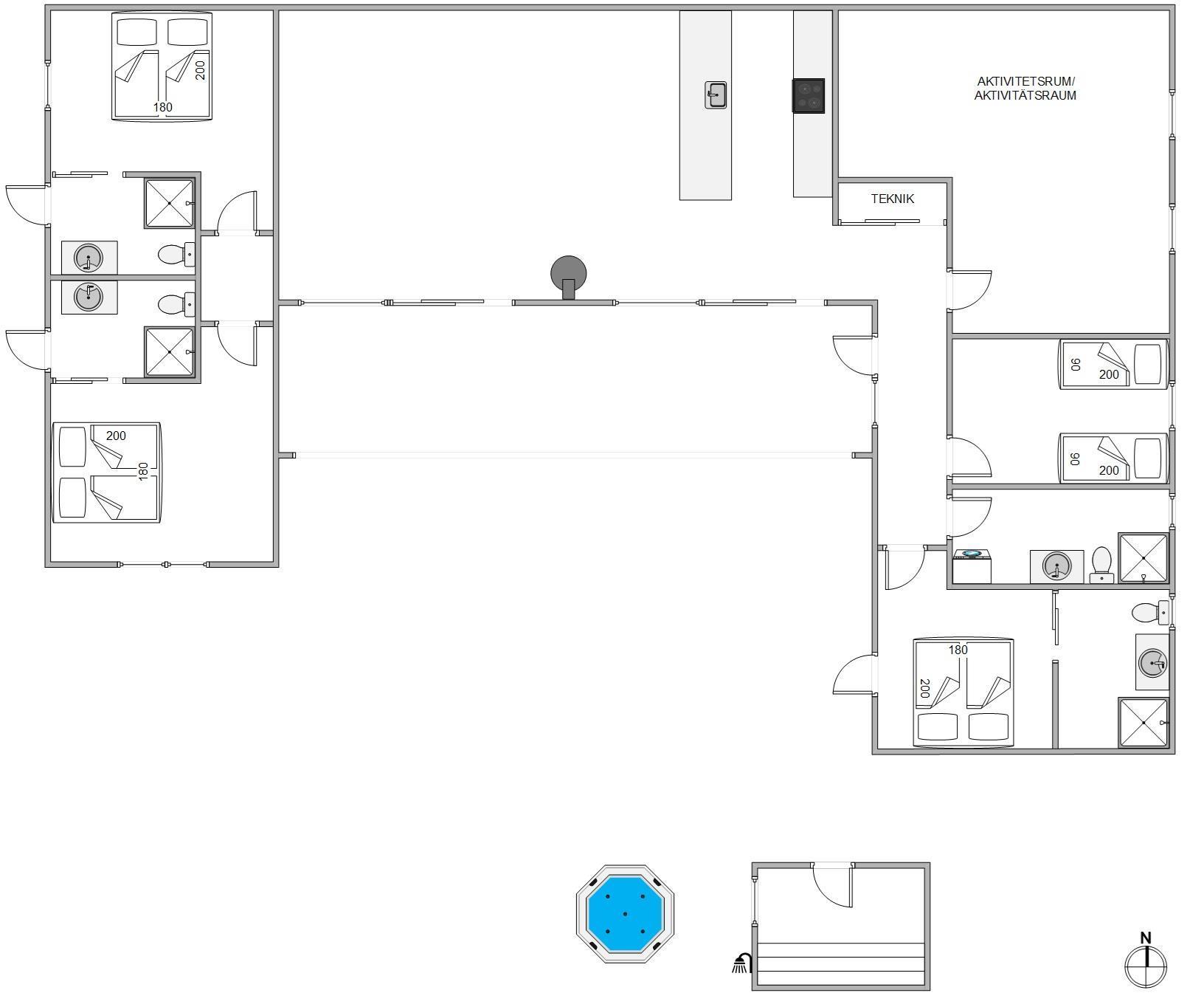 With 180 square metres of living space, it's particularly well-suited for holidays with friends, offering privacy and personal space for everyone. The games room features a pool table and dartboard for entertainment.