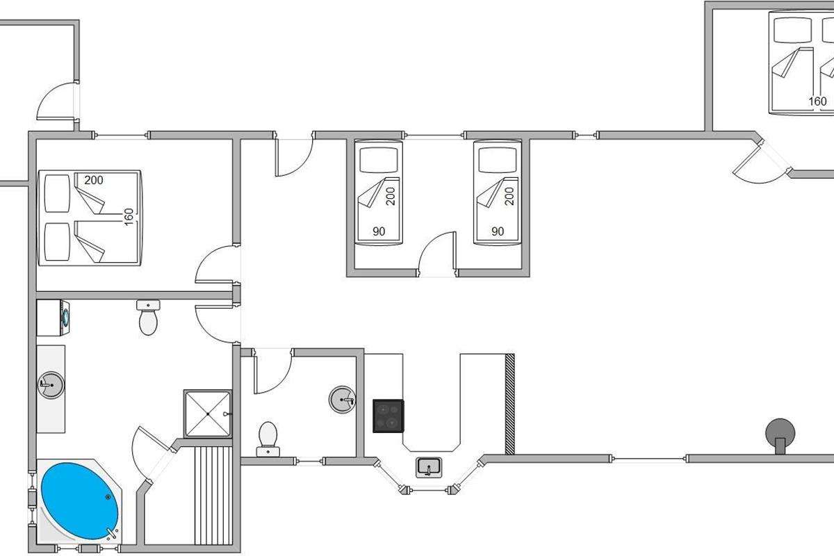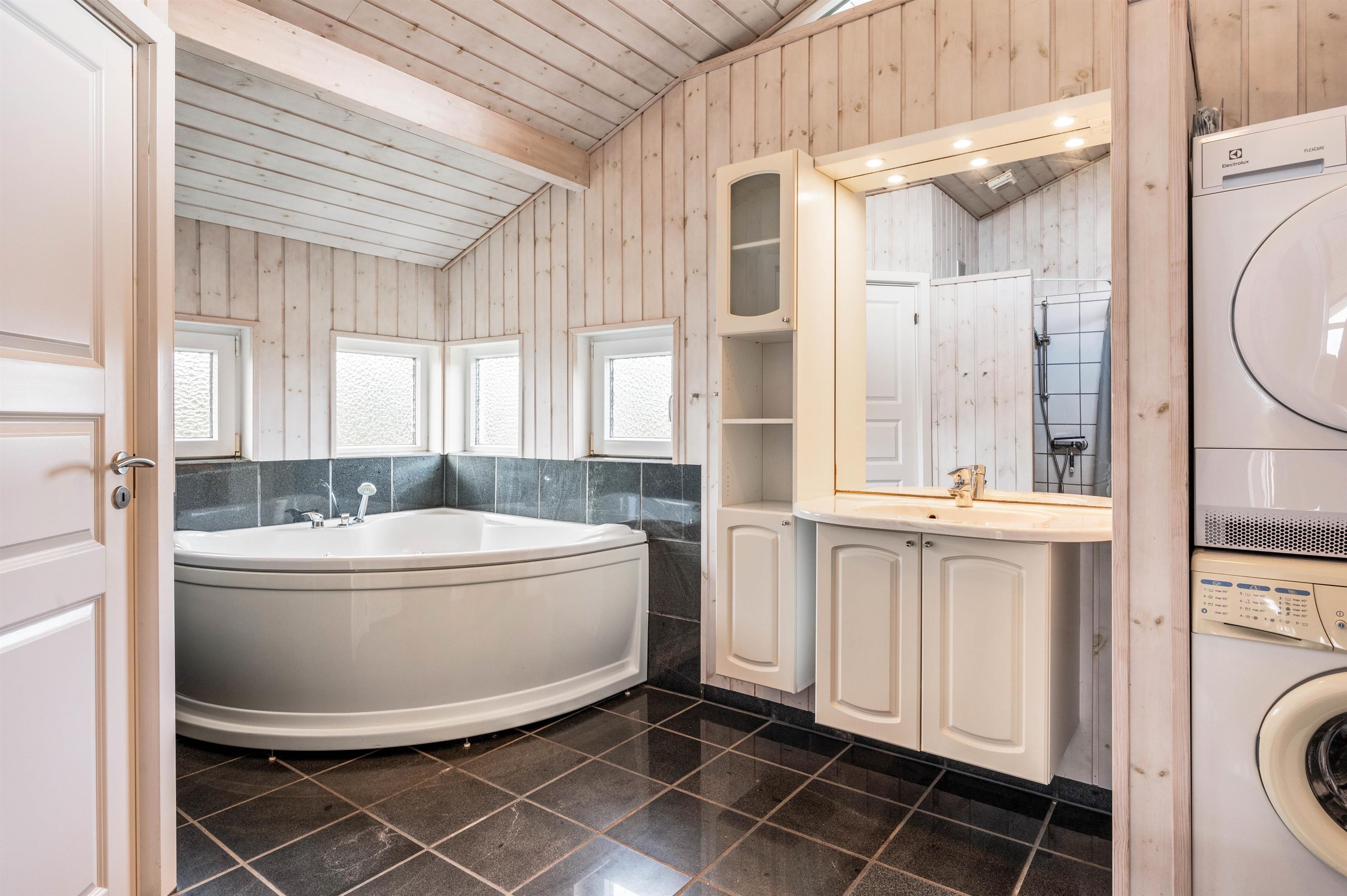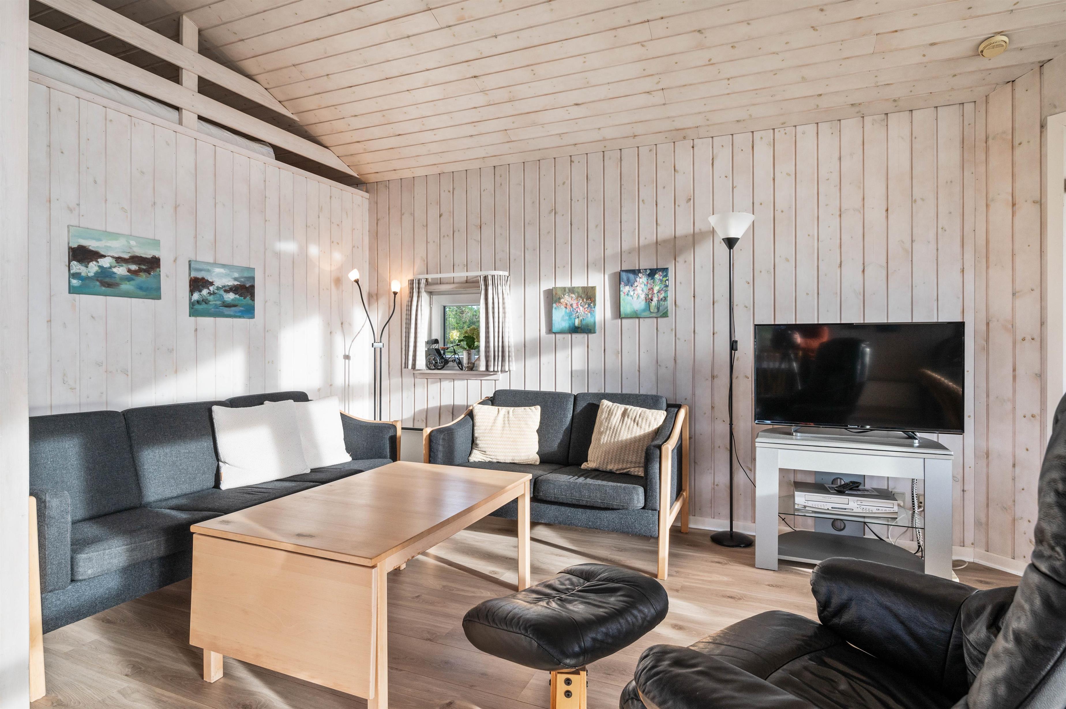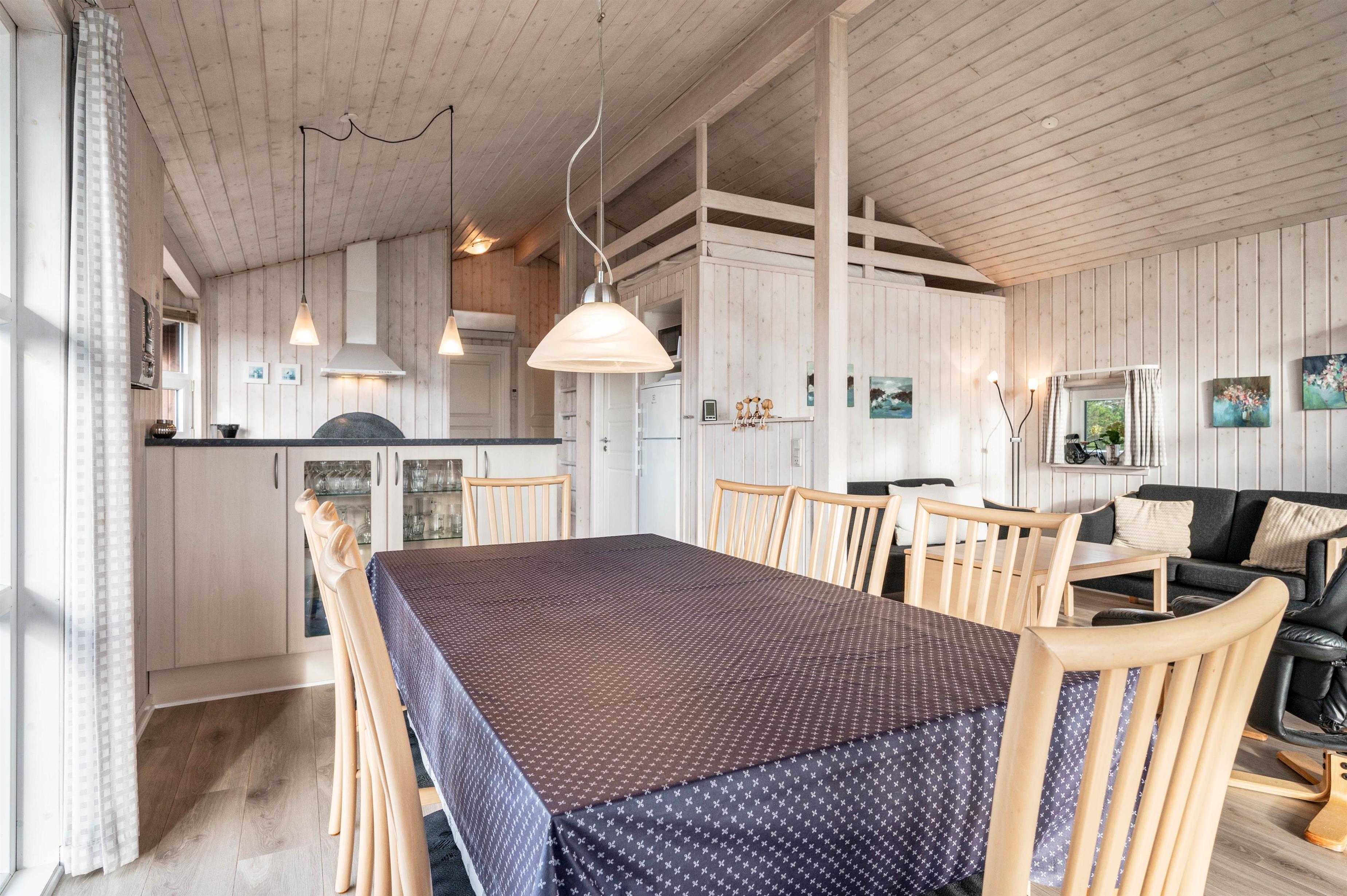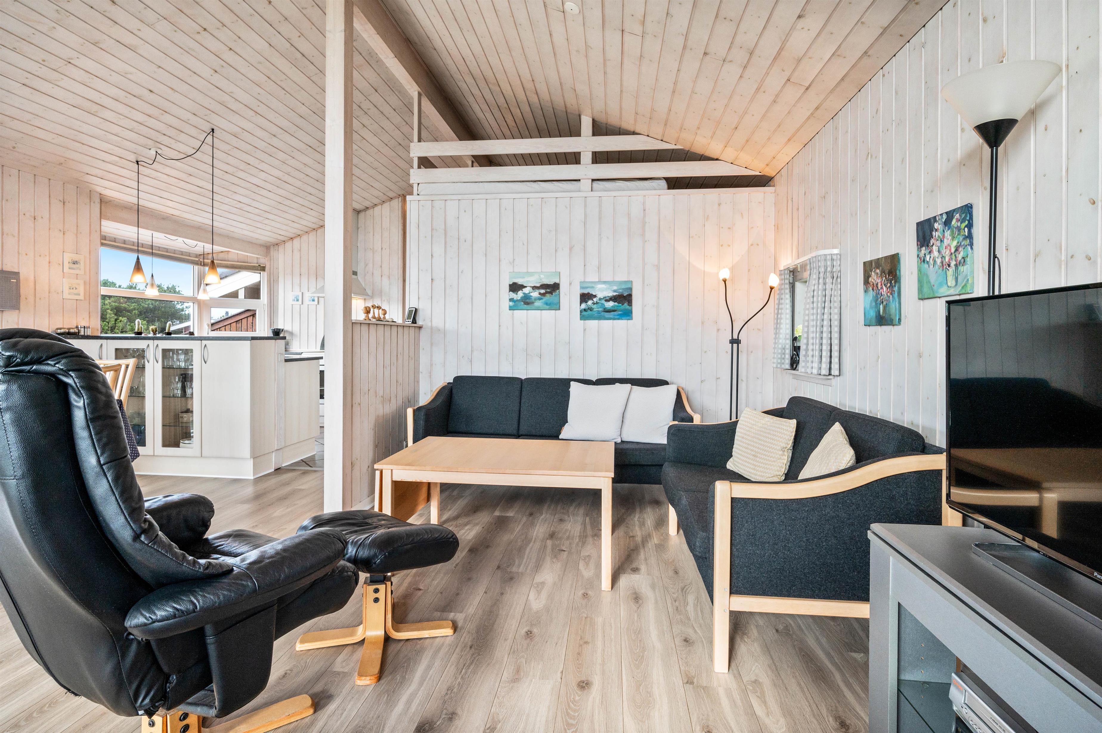 Here you'll find everything needed for a relaxing holiday - a practical open-plan kitchen for preparing delicious meals while the rest of the family gathers around the television, relaxes with a good book in an armchair, or enjoys board games at the table. After dinner, let the dishwasher handle the cleanup while you unwind in the whirlpool and sauna.