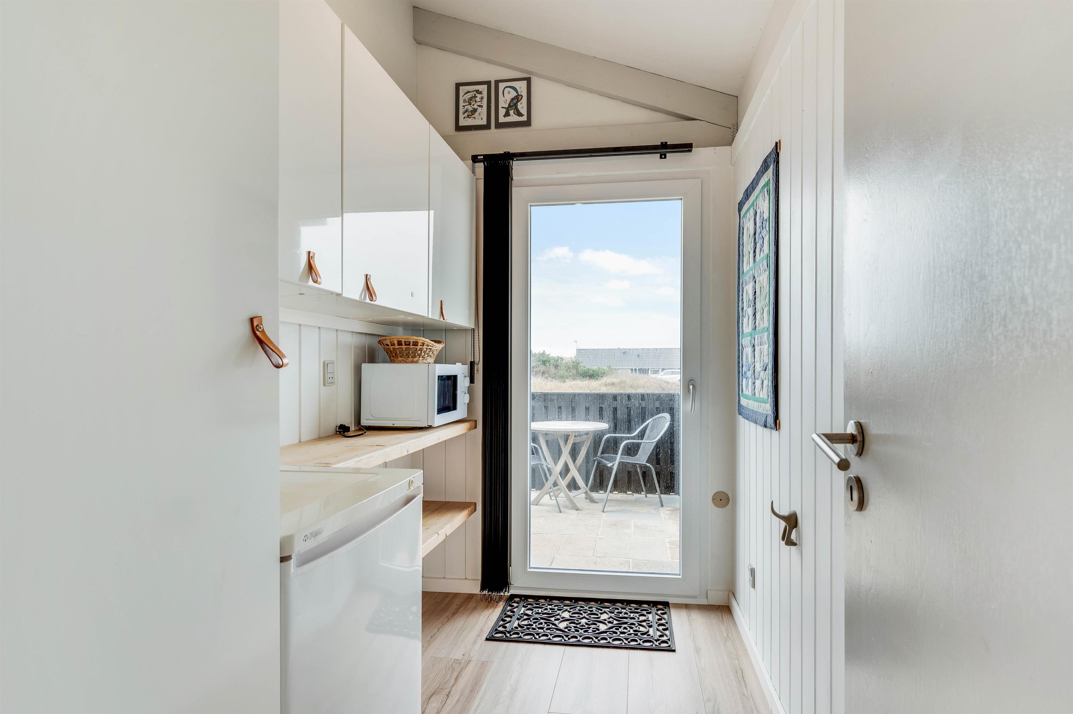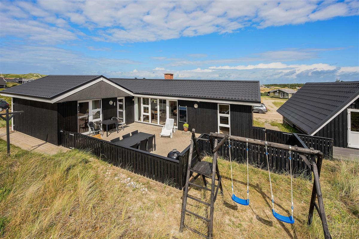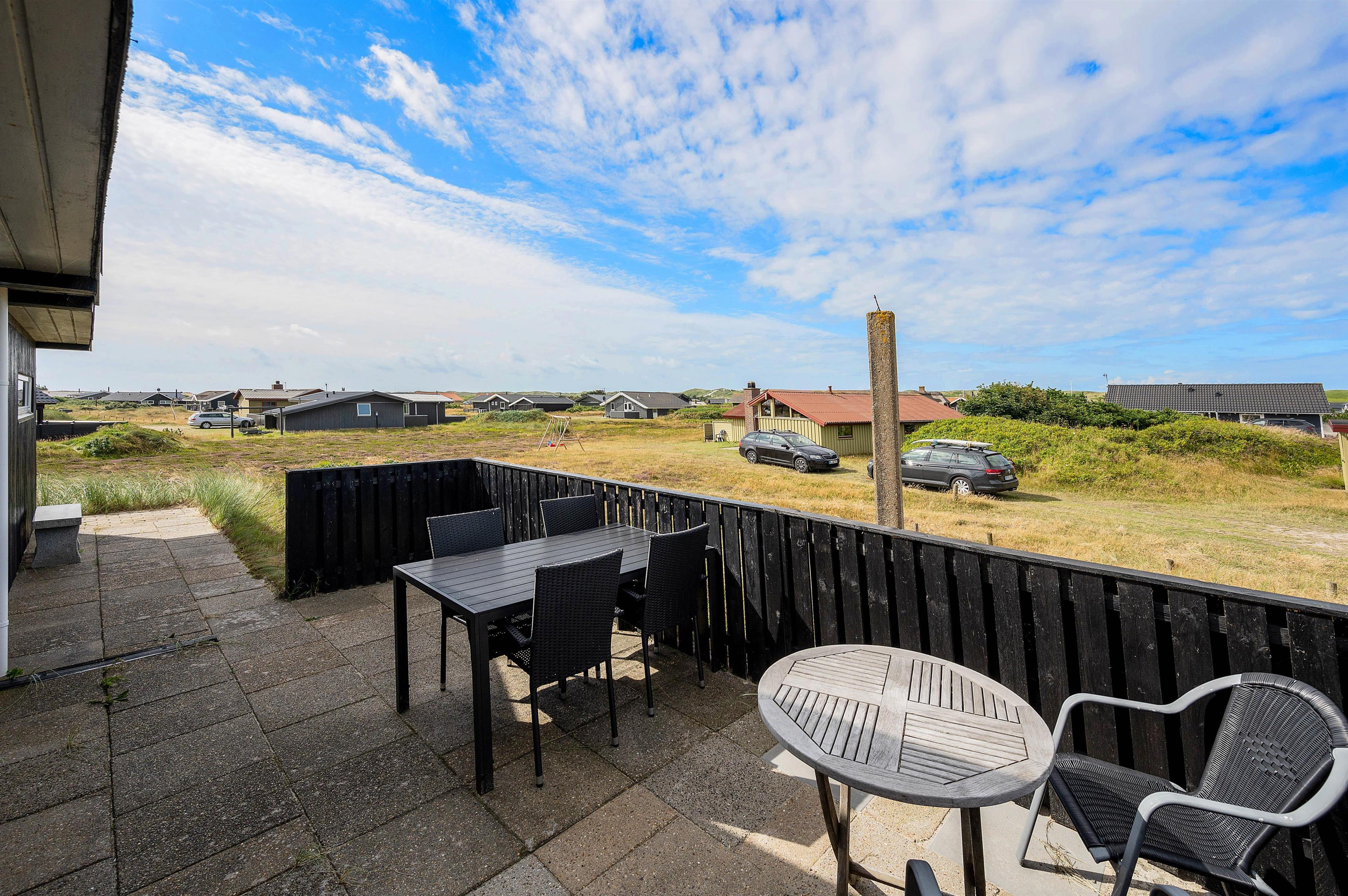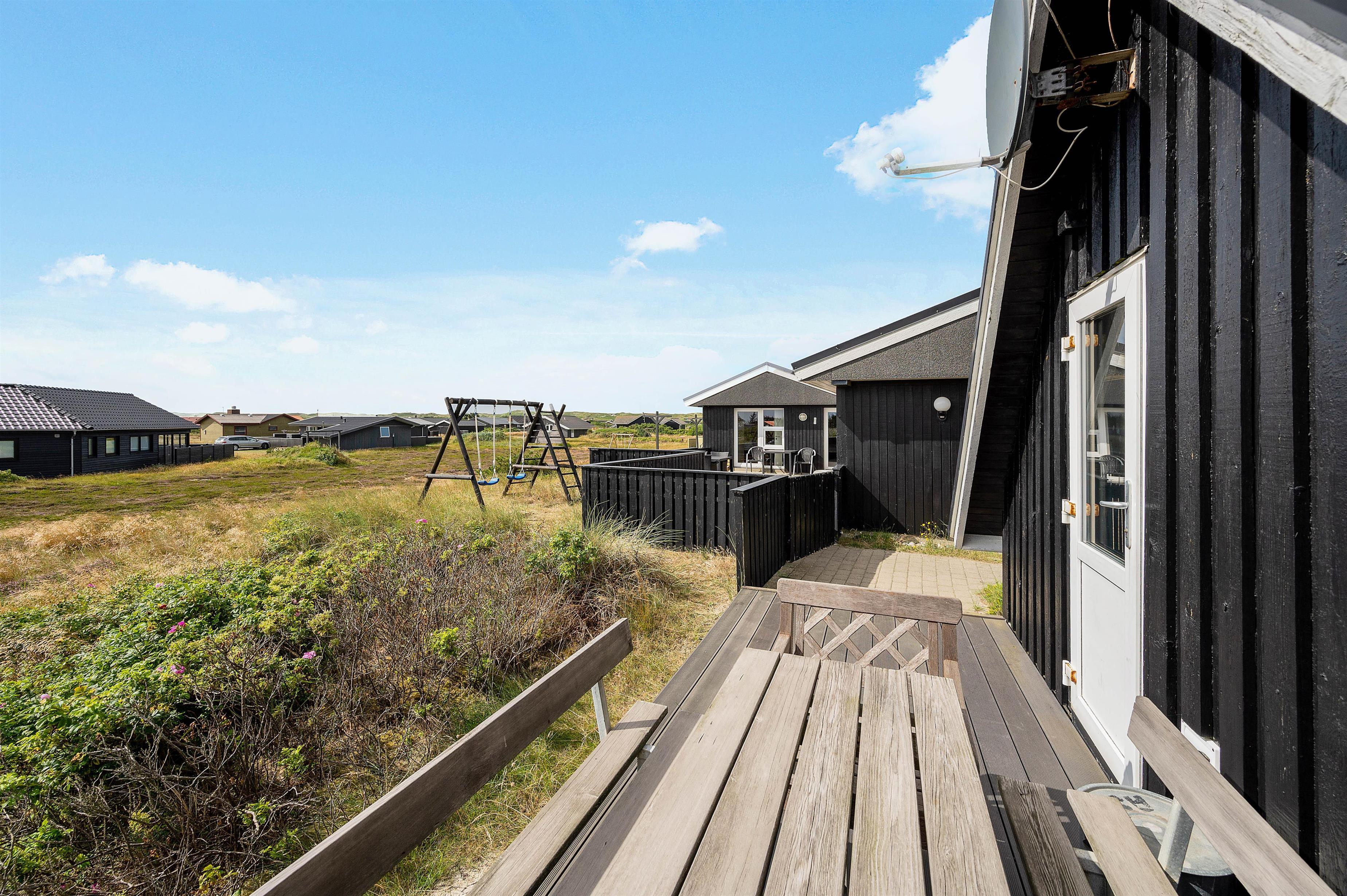 An additional terrace on the western side of the holiday home offers the perfect spot to enjoy a glass of wine while watching the sun set behind the dunes in the tranquility of Bjerregård.