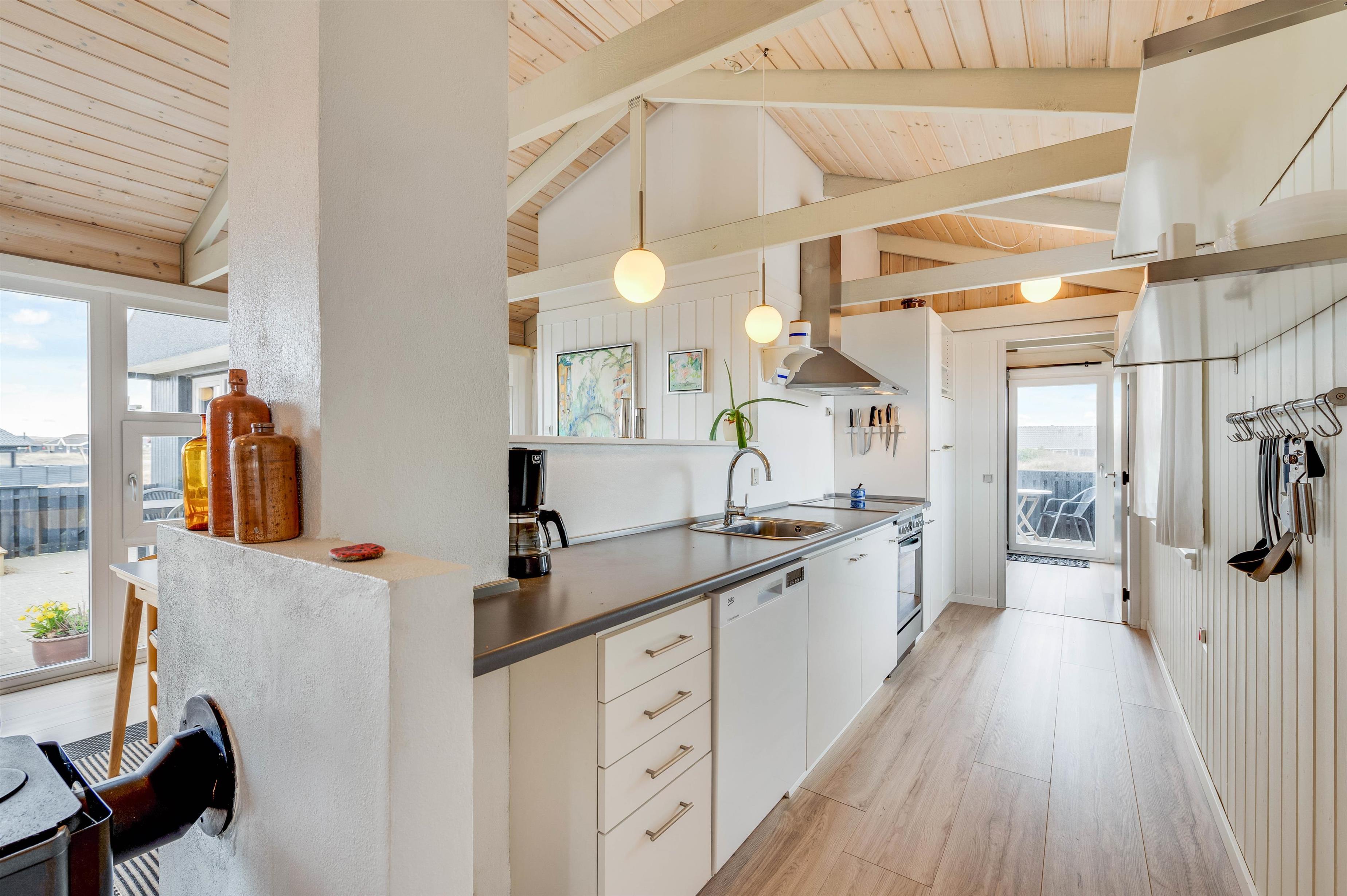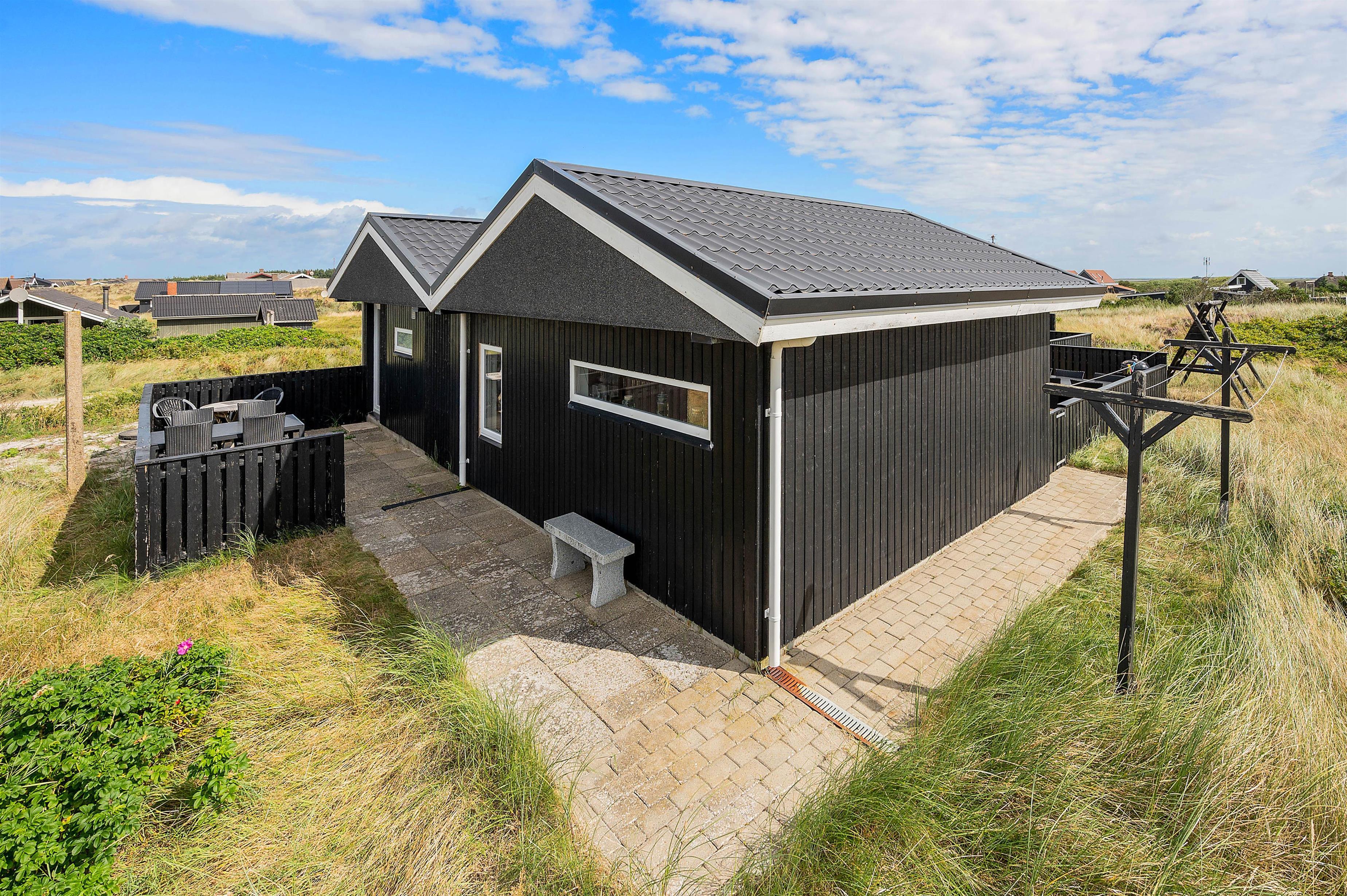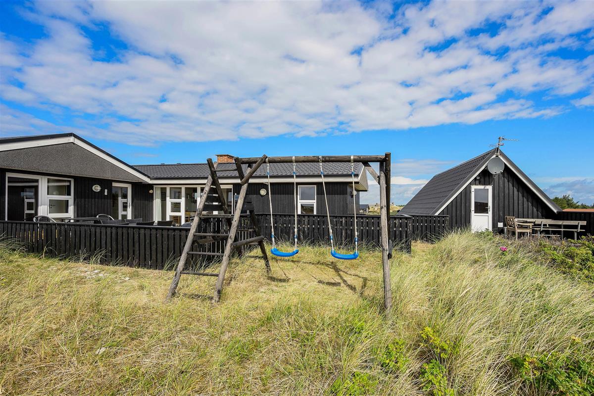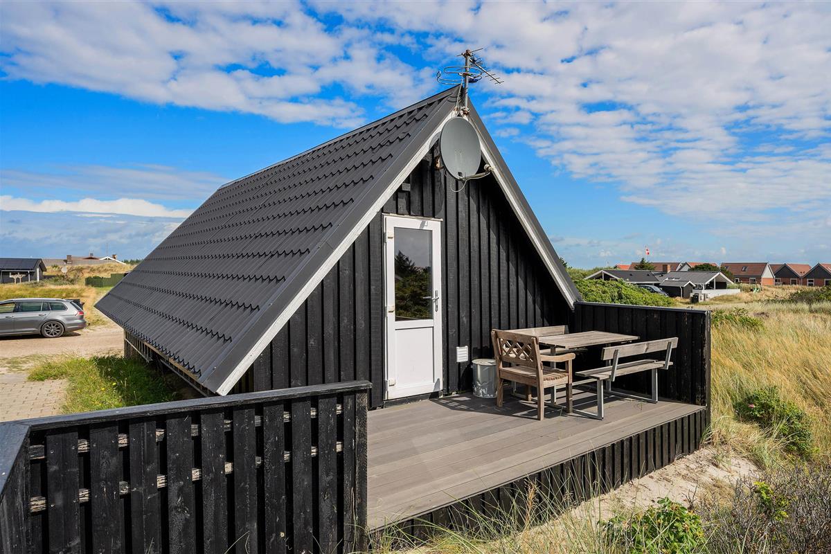 An additional terrace on the western side of the holiday home offers the perfect spot to enjoy a glass of wine while watching the sun set behind the dunes in the tranquility of Bjerregård.