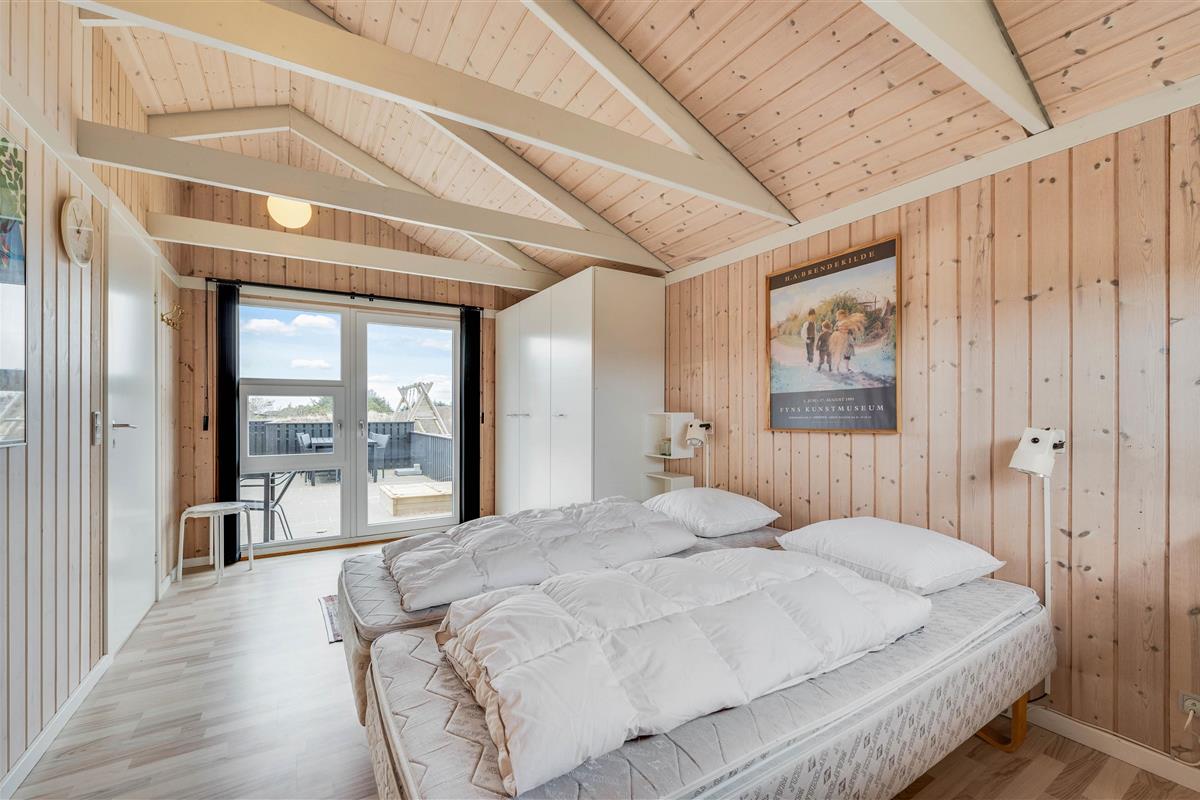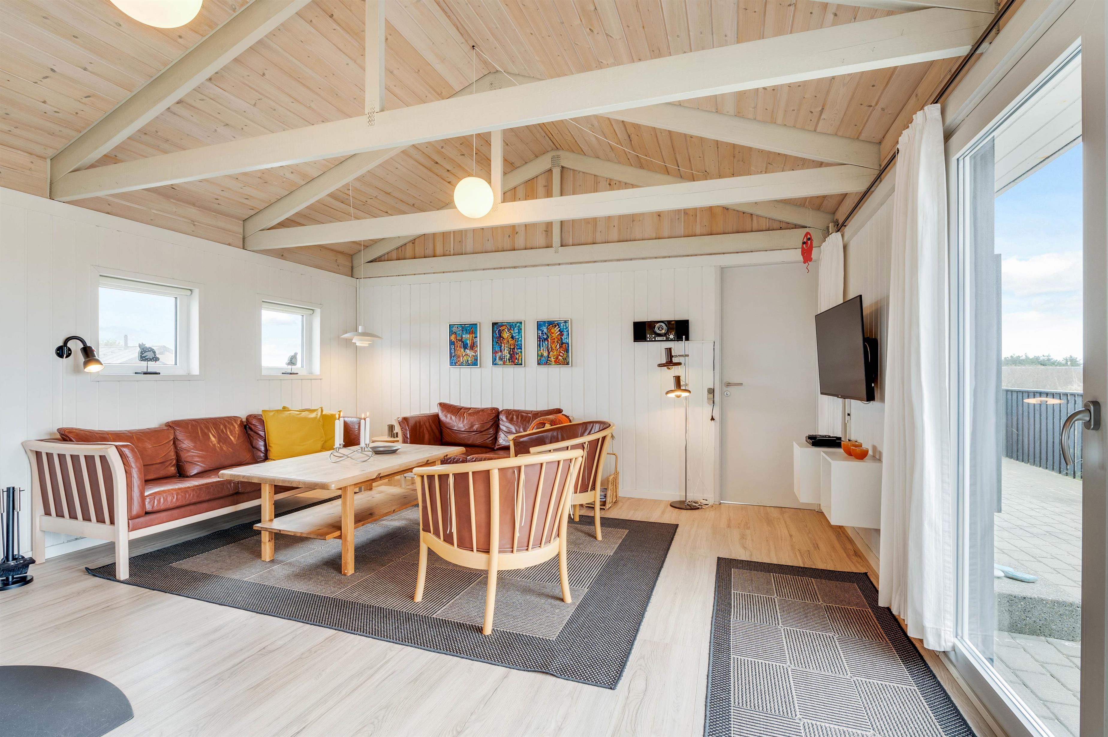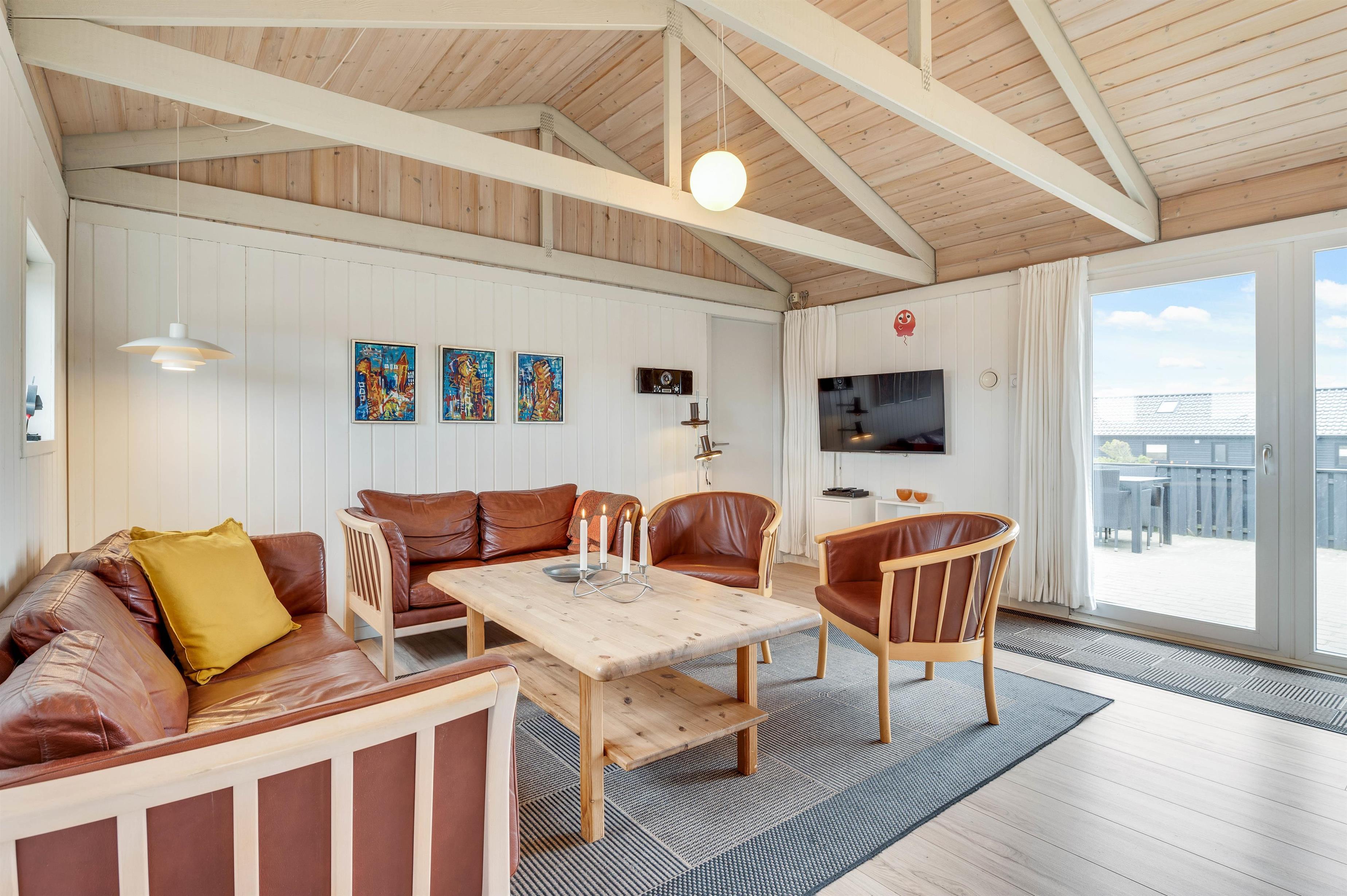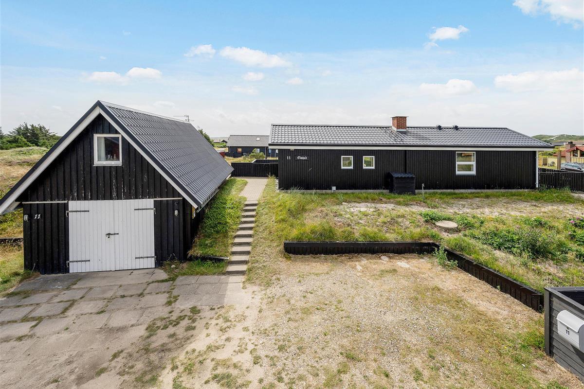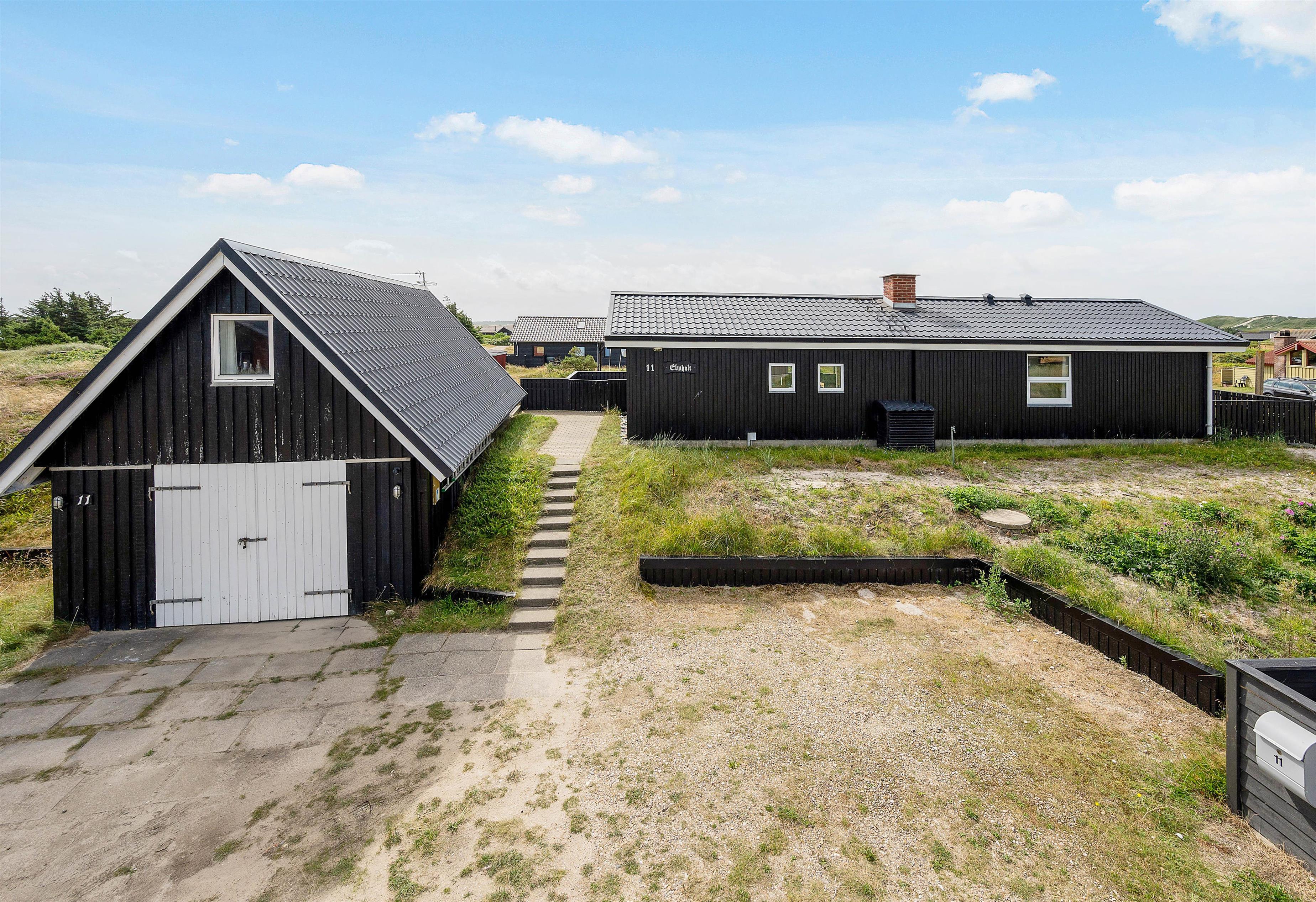 An additional terrace on the western side of the holiday home offers the perfect spot to enjoy a glass of wine while watching the sun set behind the dunes in the tranquility of Bjerregård.